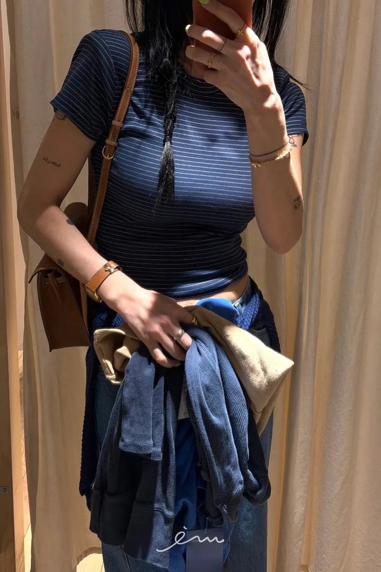 TOP圓領橫條上衣