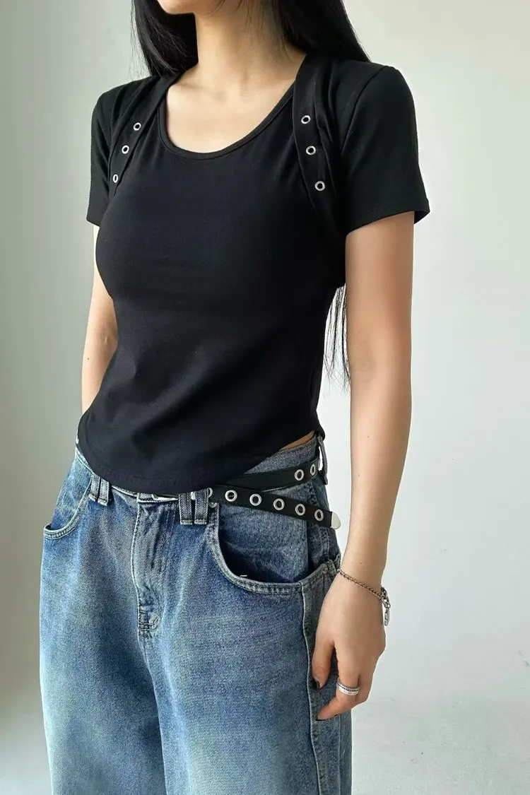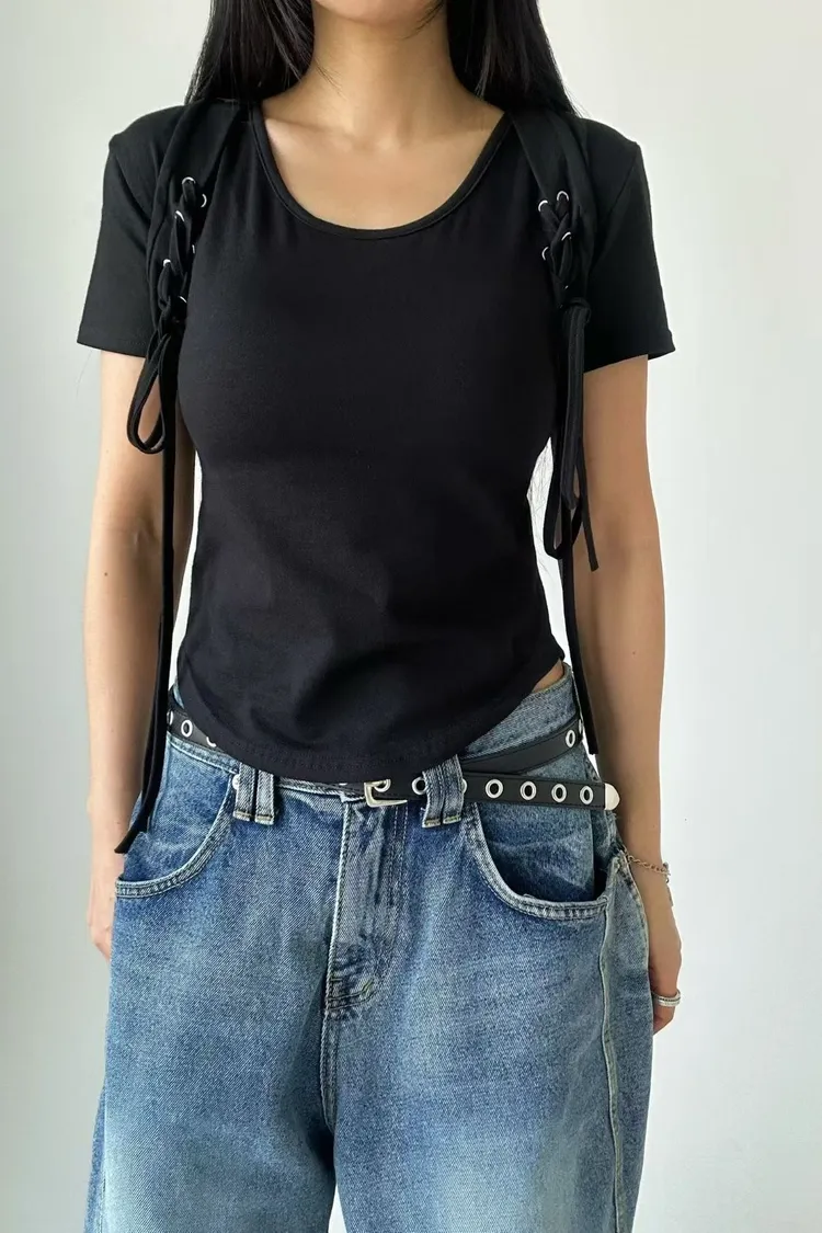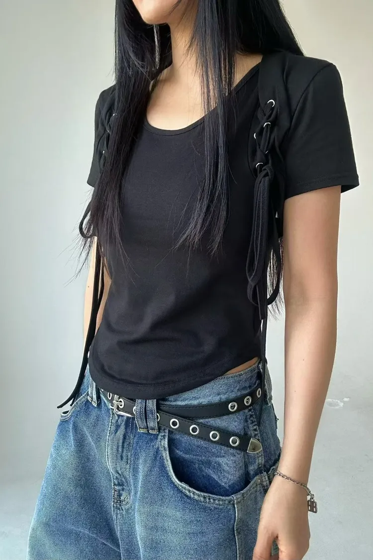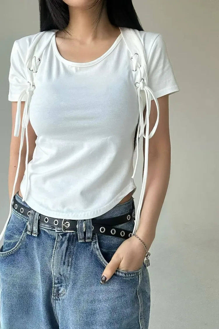 袖可拆交叉綁帶衣