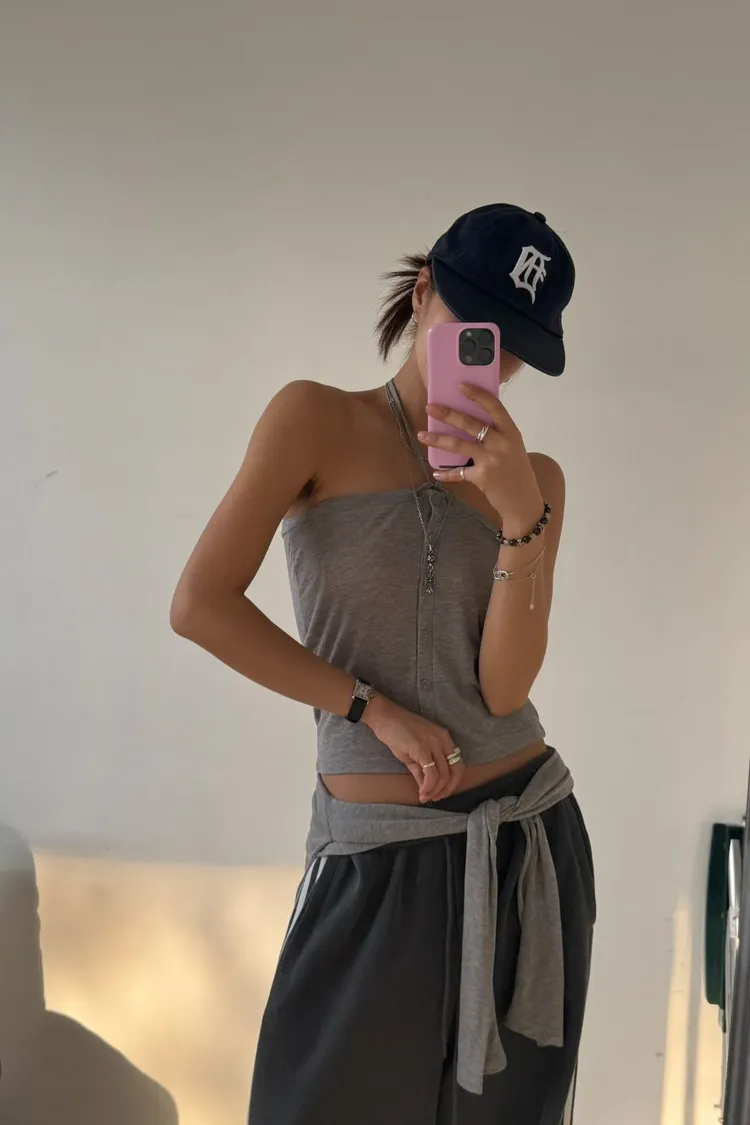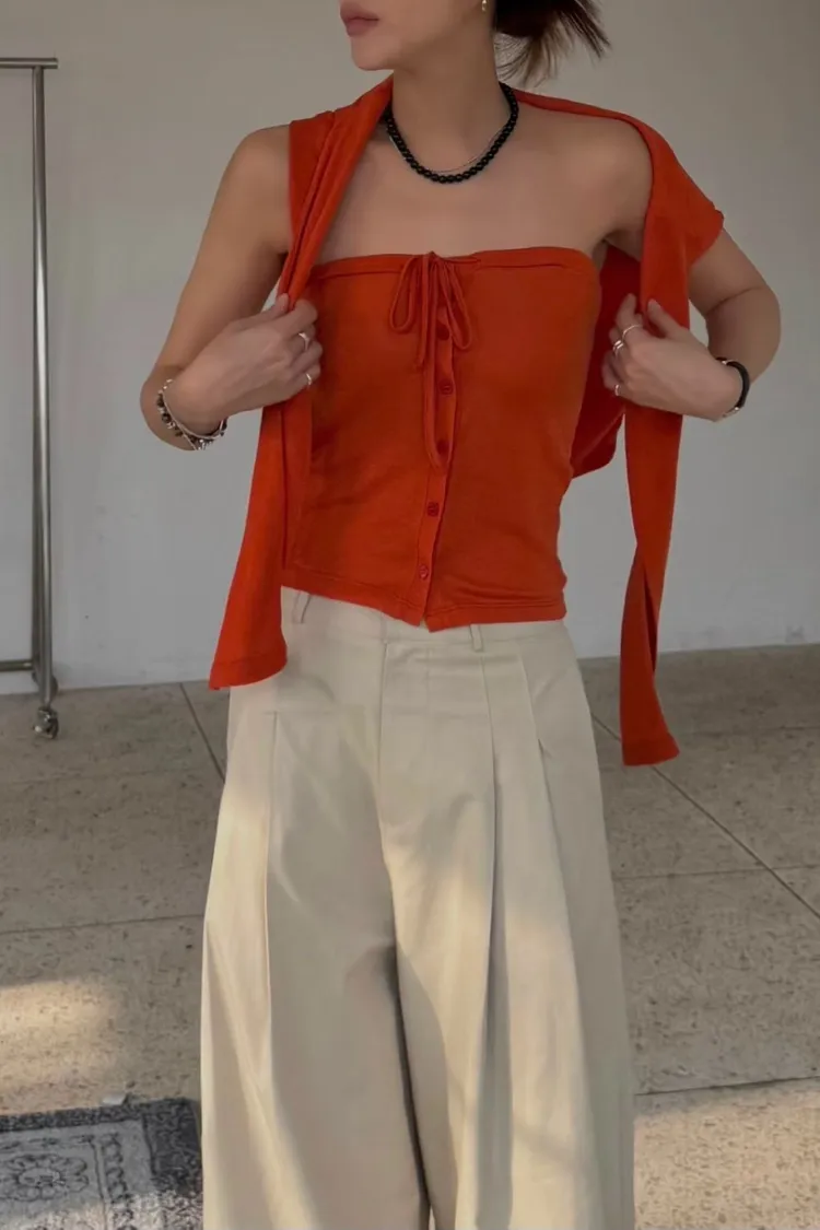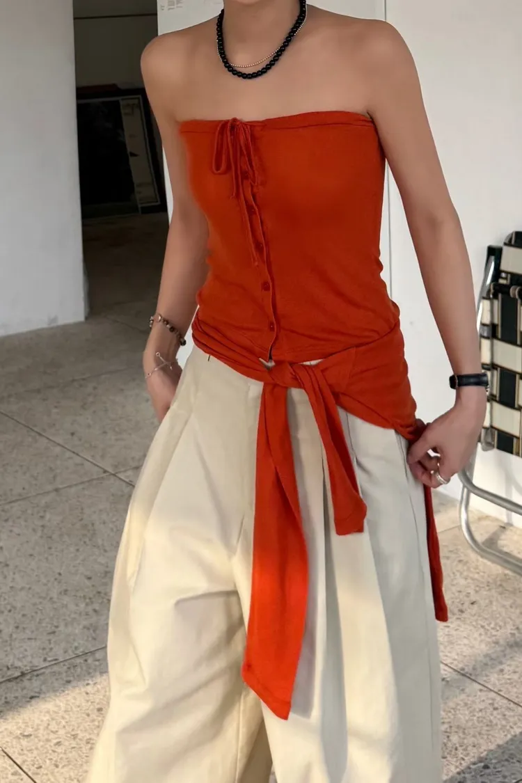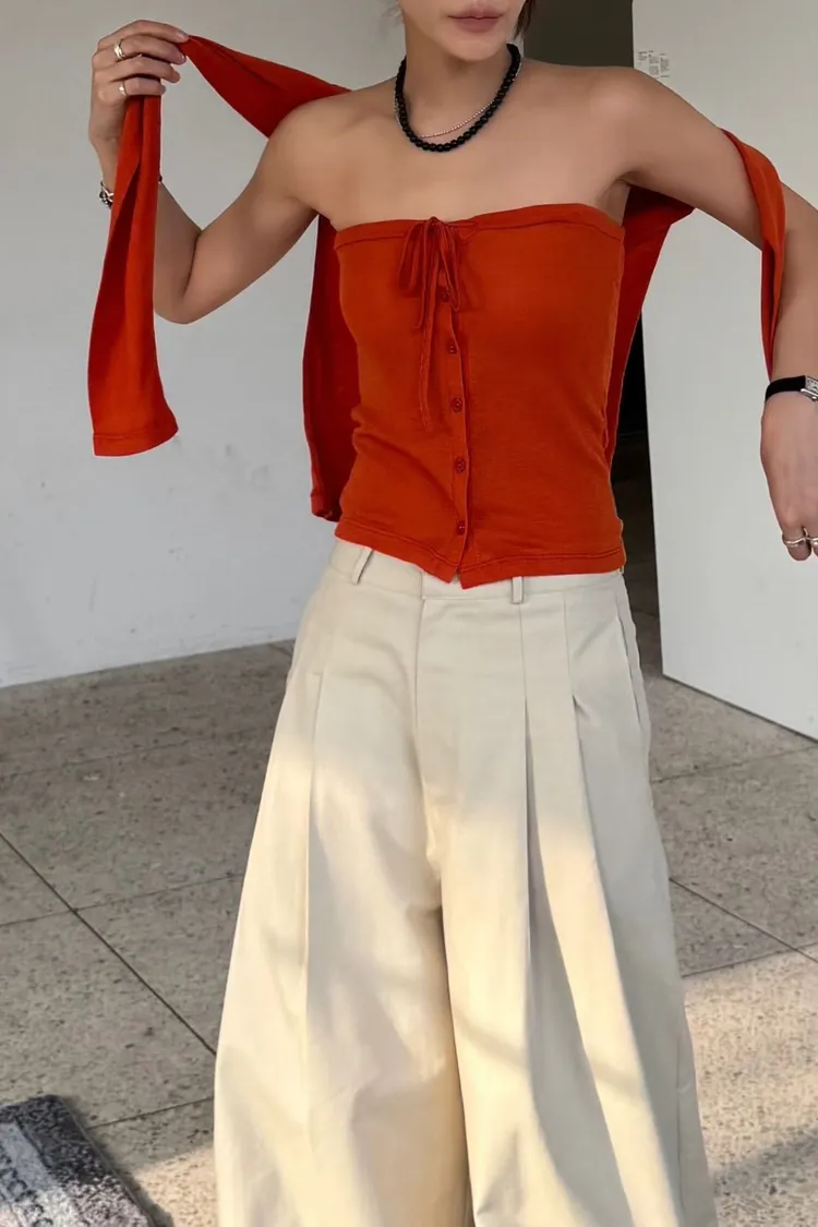 綁帶排釦平口背心+上衣