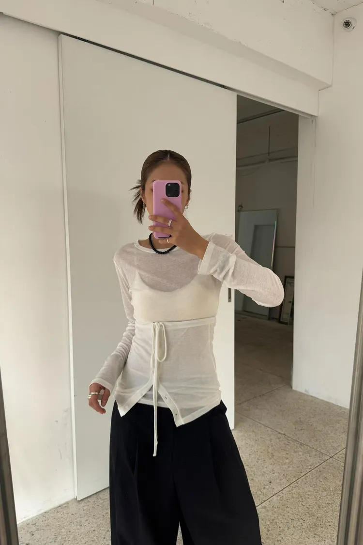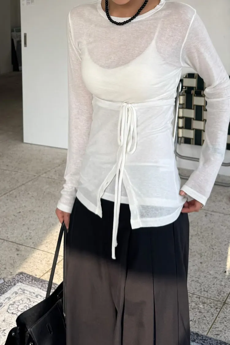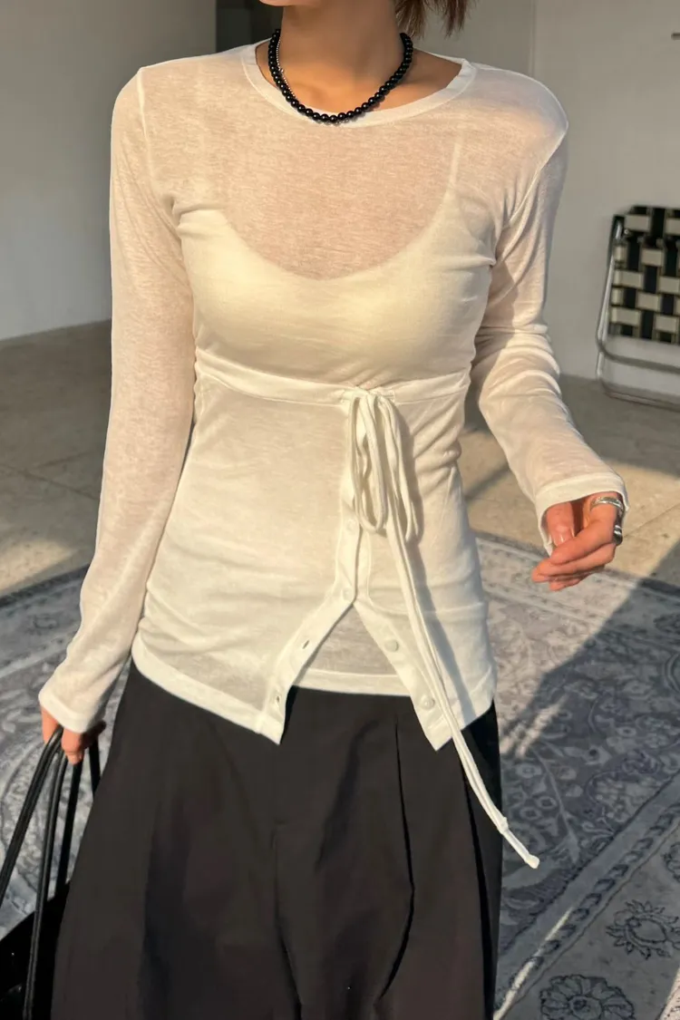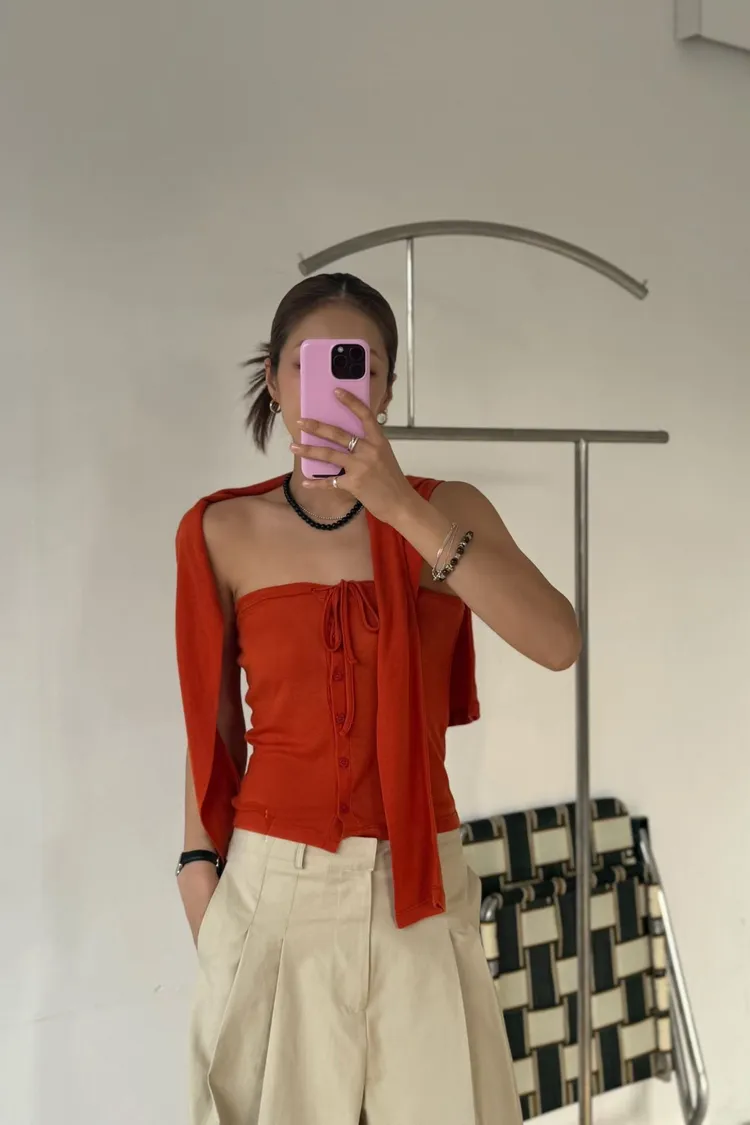 綁帶排釦平口背心+上衣
