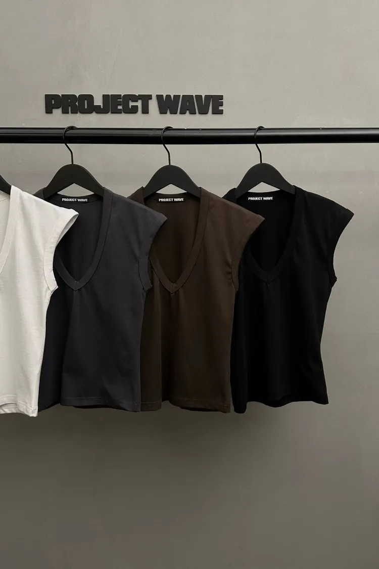 歐美V領飛袖感背心