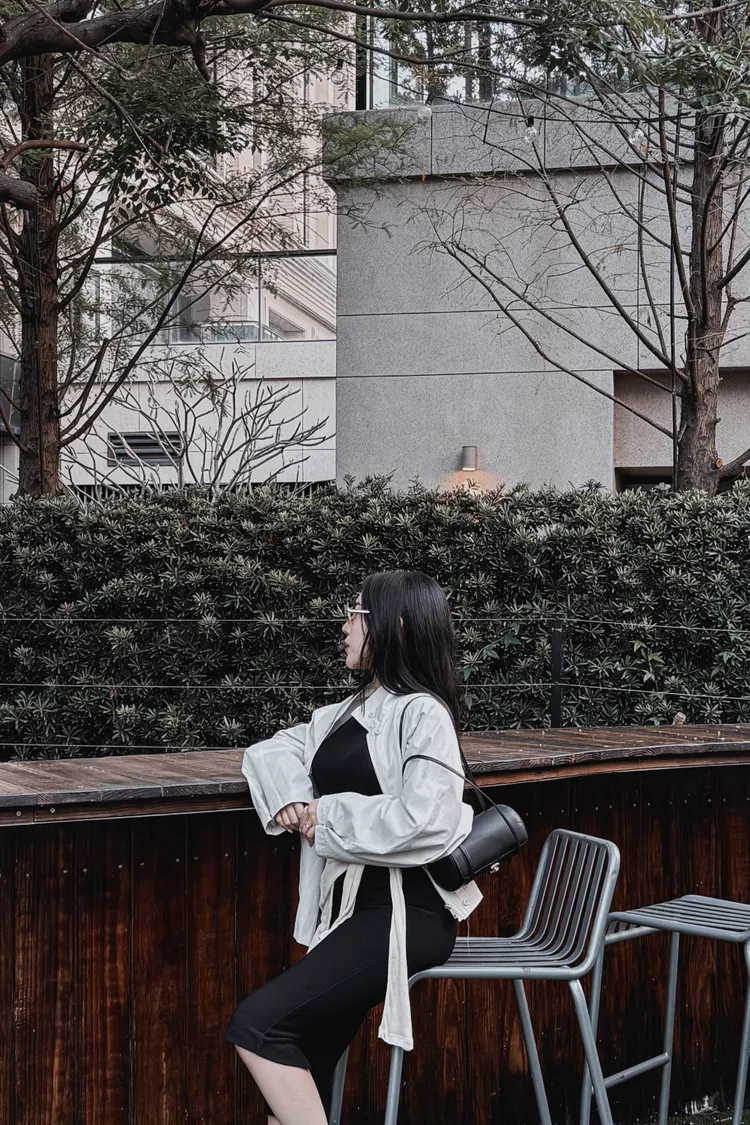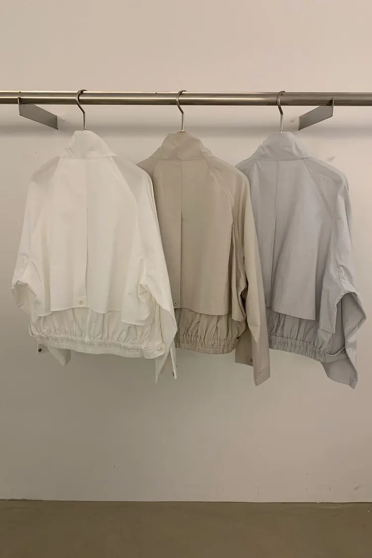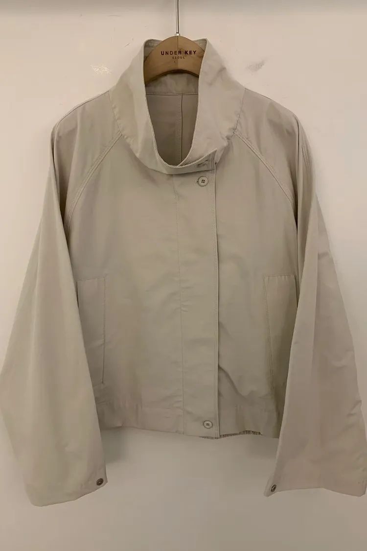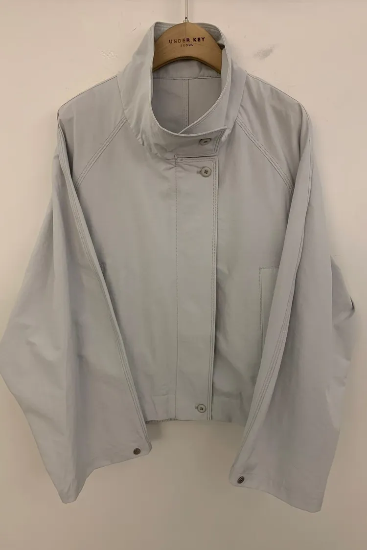 下後縮雙層感鈕釦高領外套