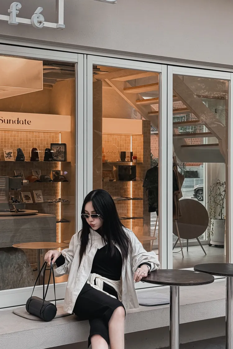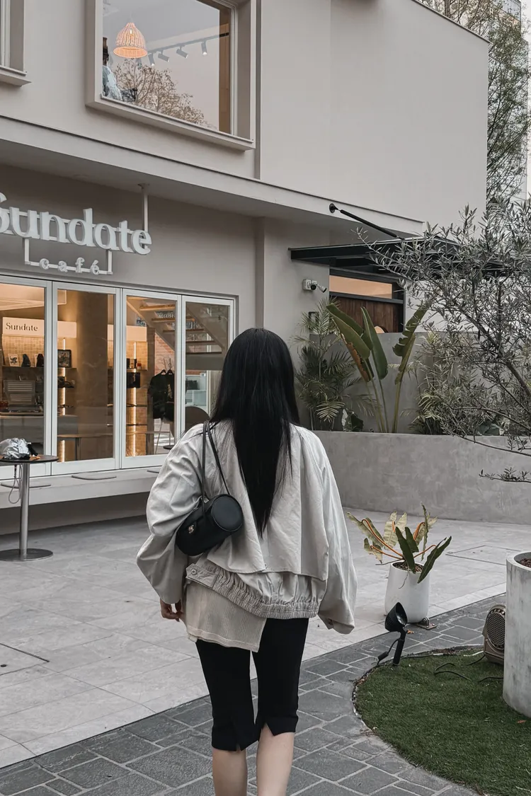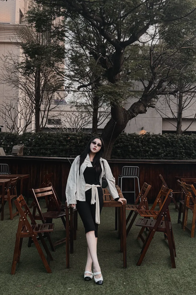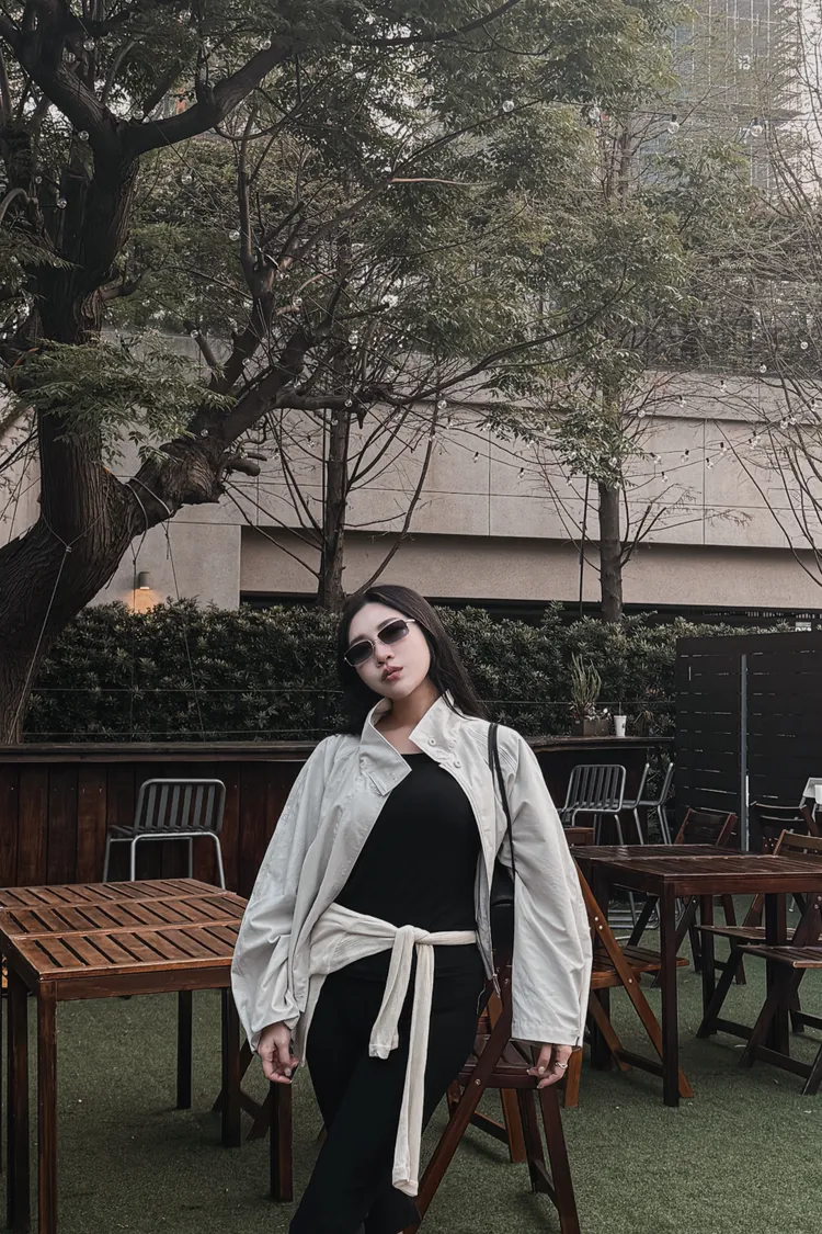 下後縮雙層感鈕釦高領外套
