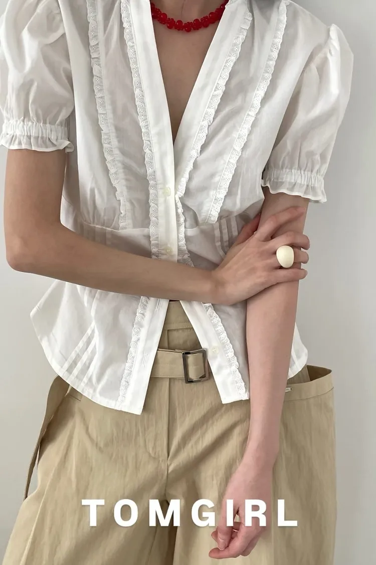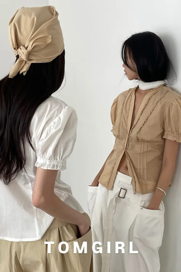 Tomgirl小荷葉澎袖排釦衣