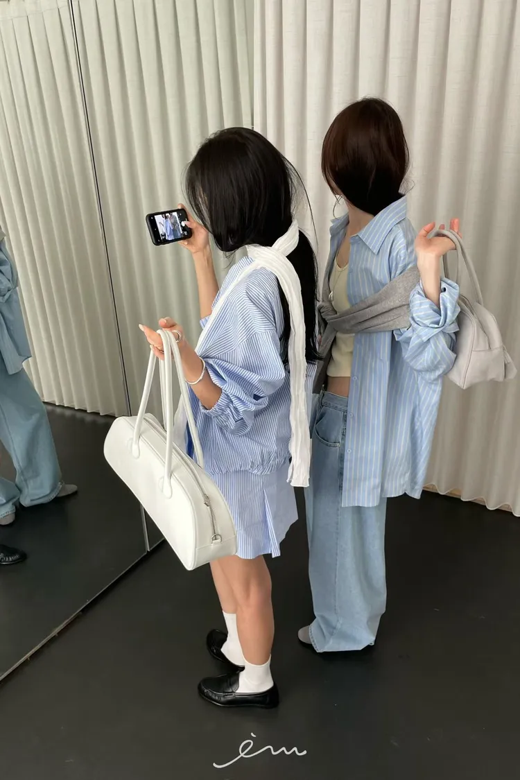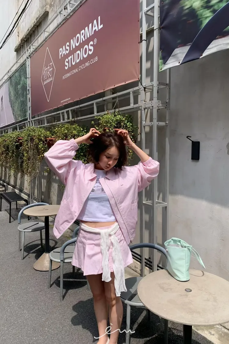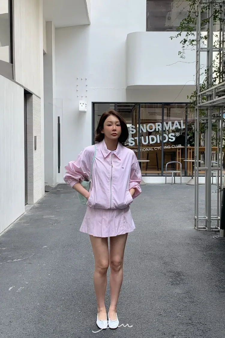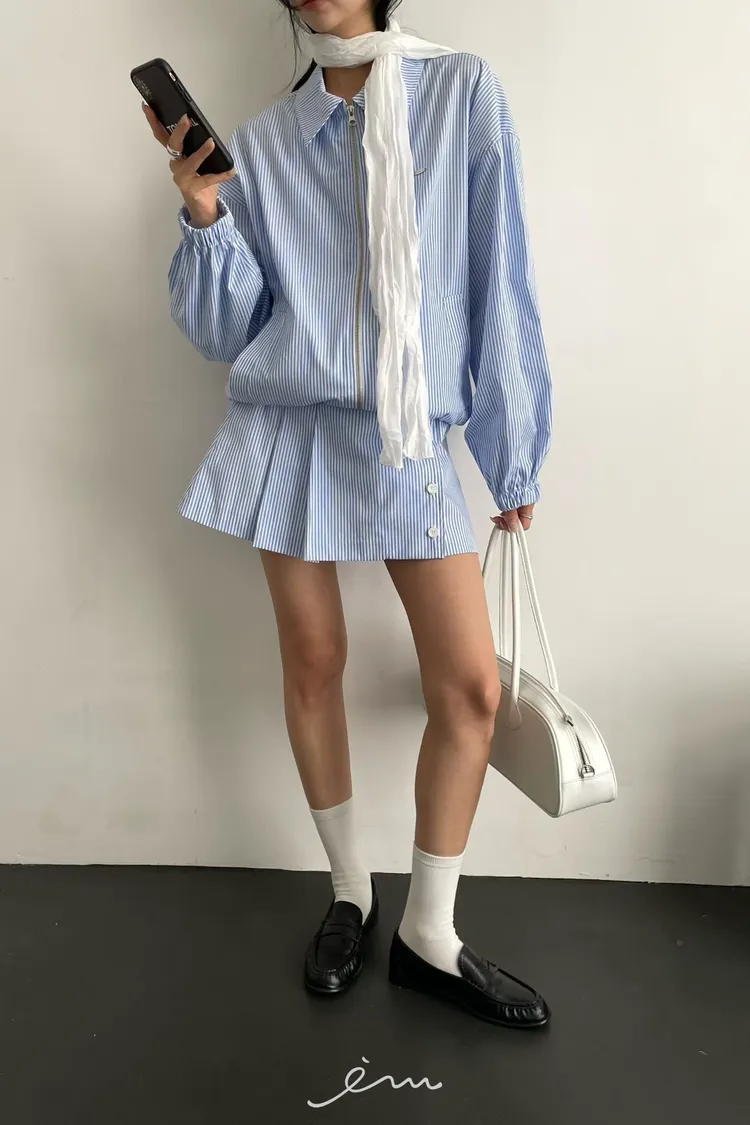 Tomgirl鐵標翻領直條拉鍊外套