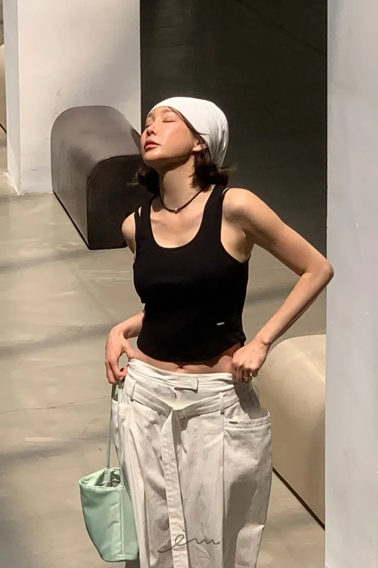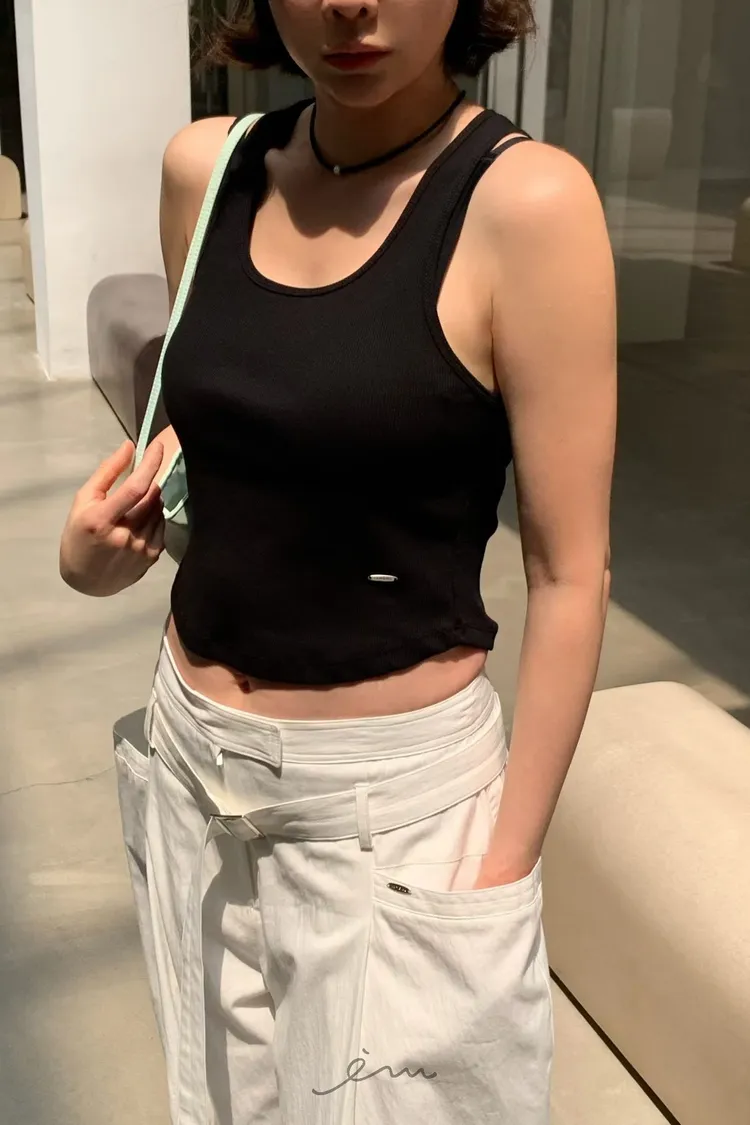 Tomgirl鐵標下圓弧寬肩背心