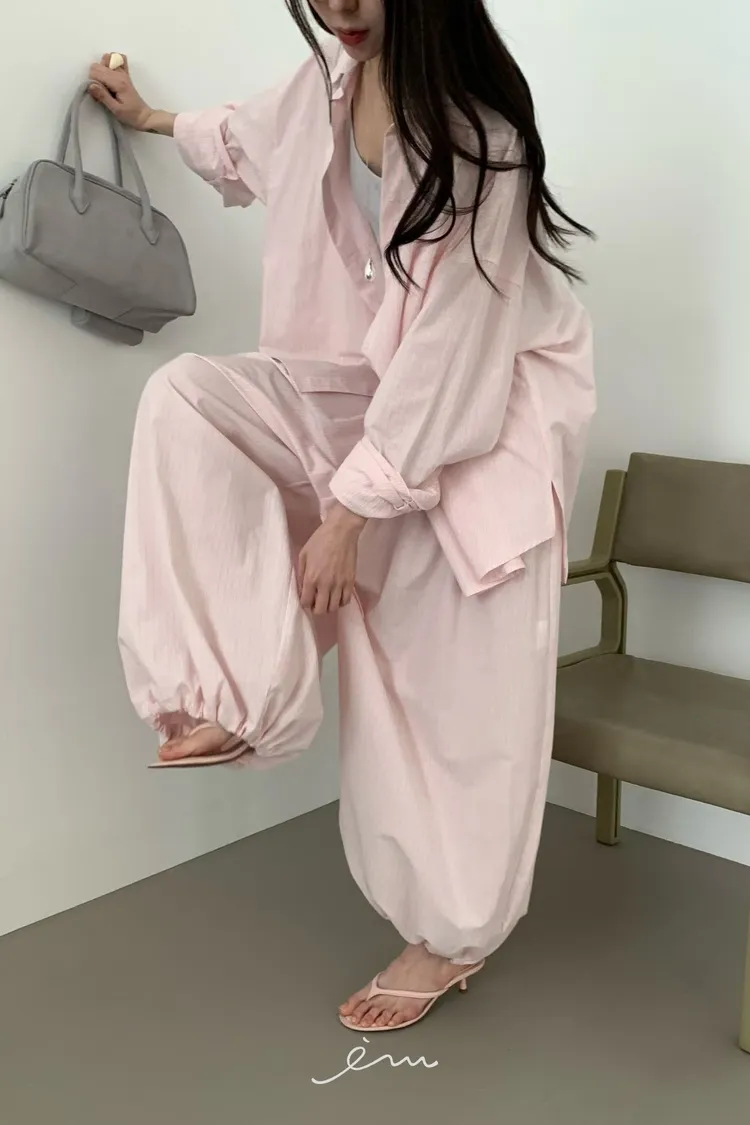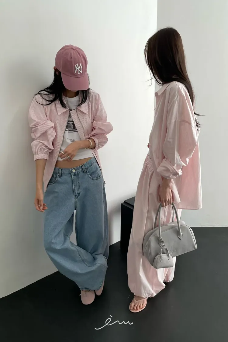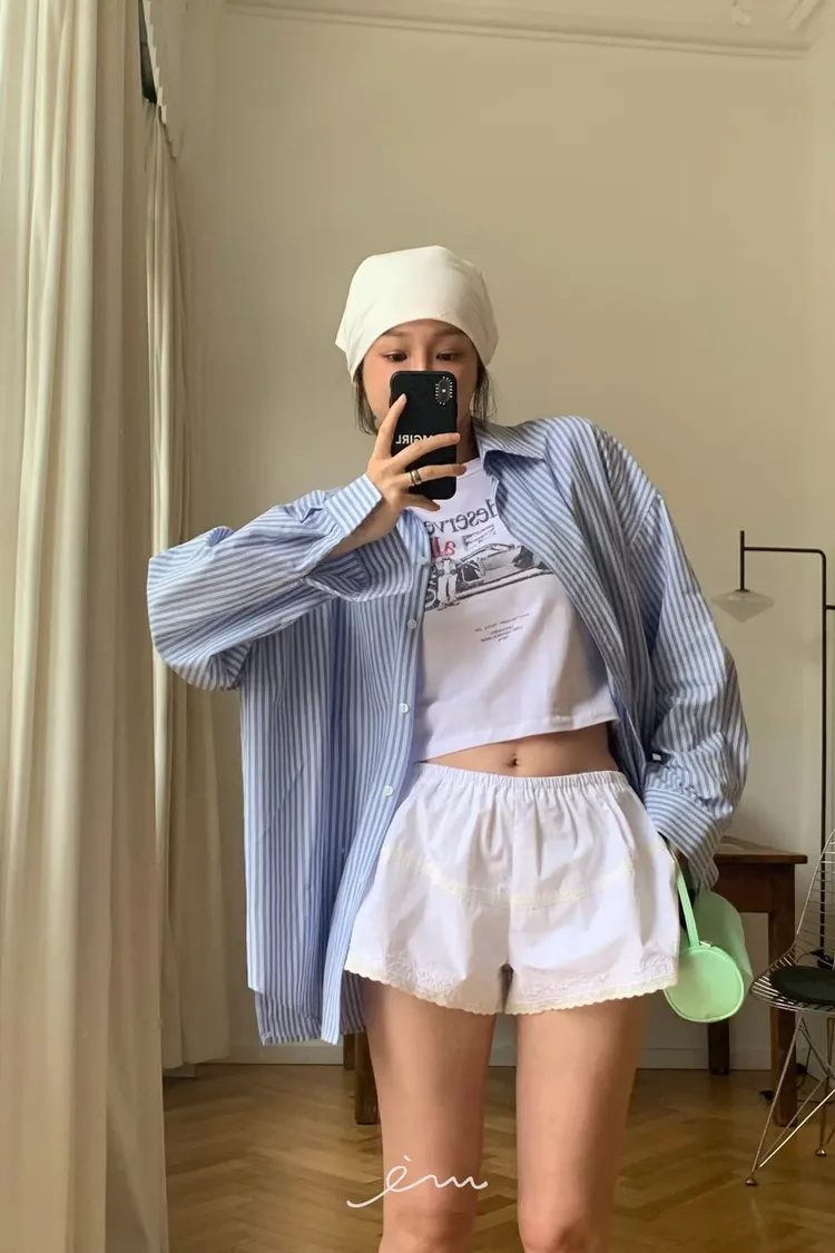 Tomgirl小圓標下剪裁直條襯衫