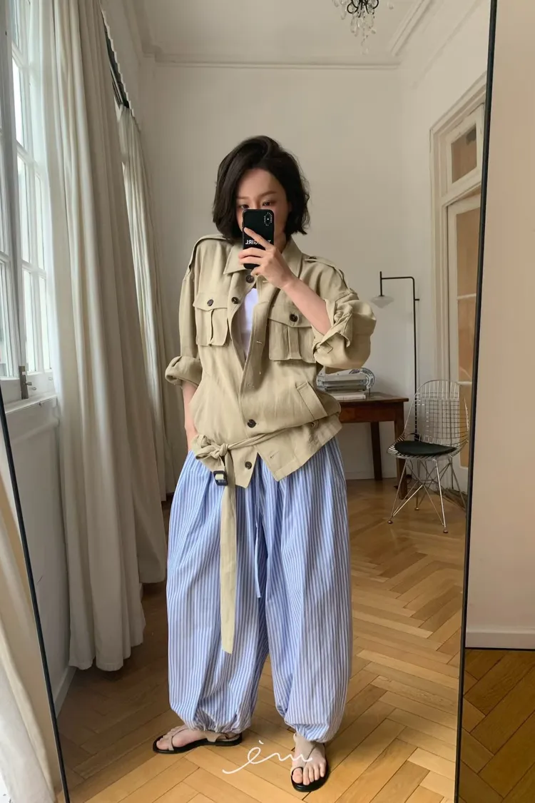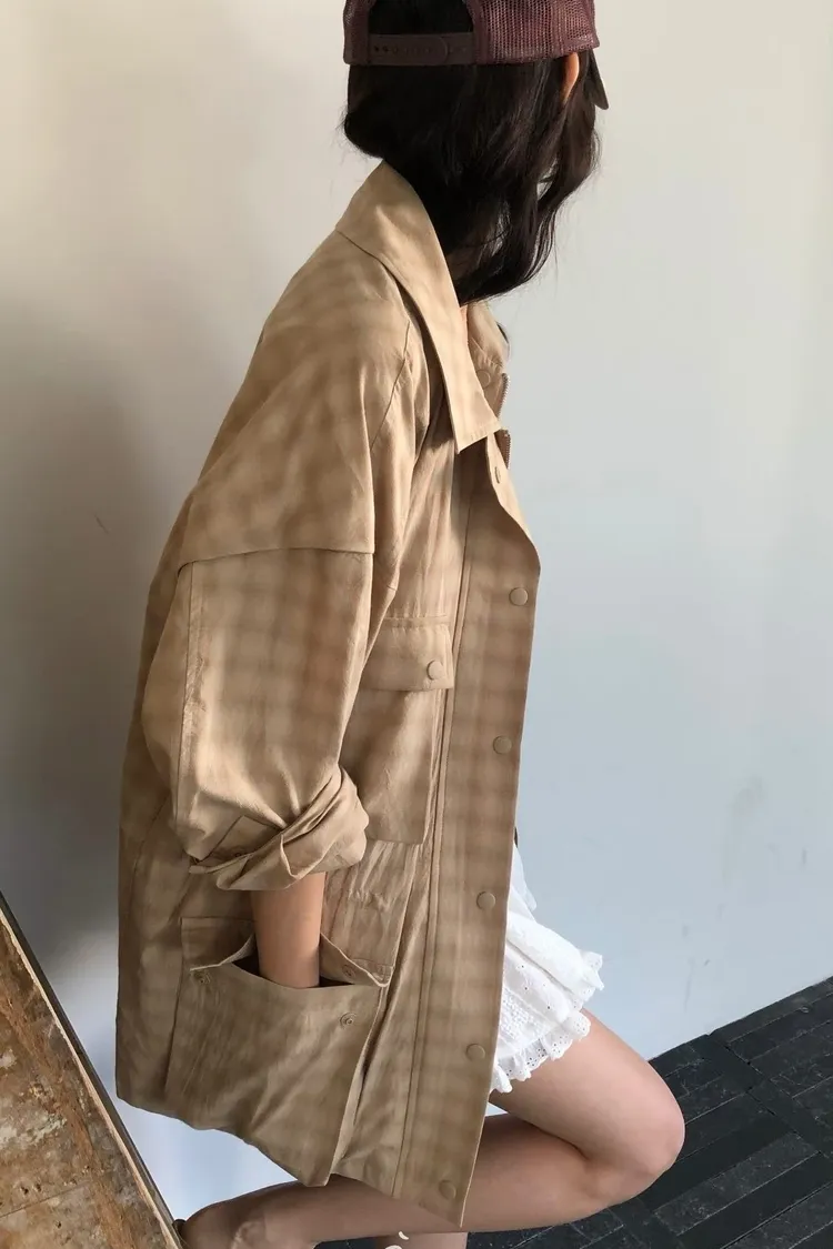 Tomgirl四口袋翻領格紋壓釦外套