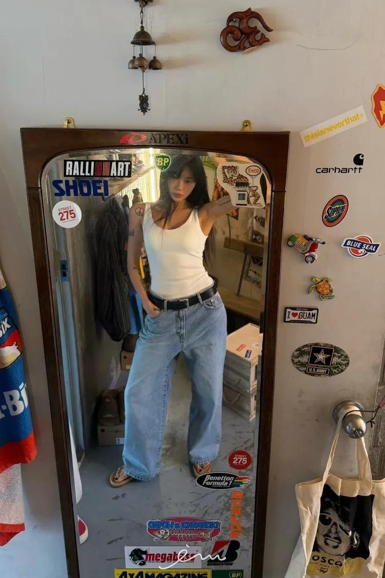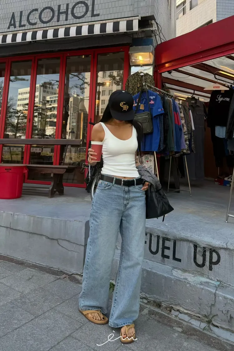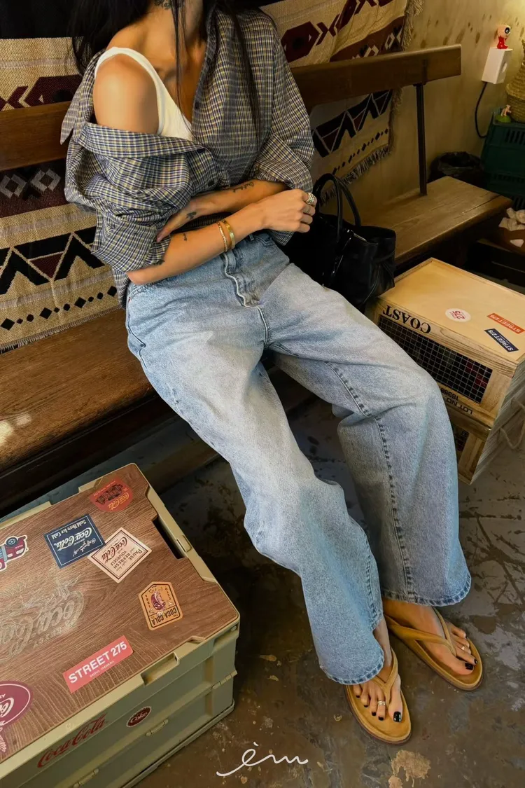ABB刷色牛仔寬褲