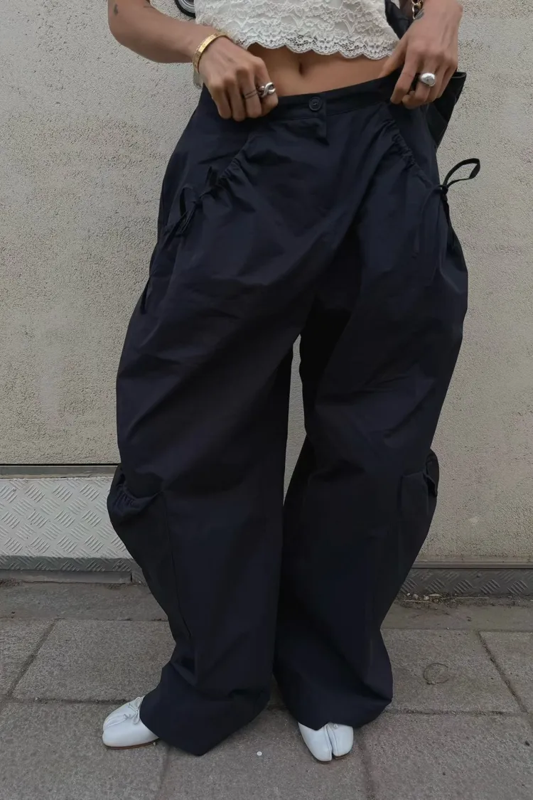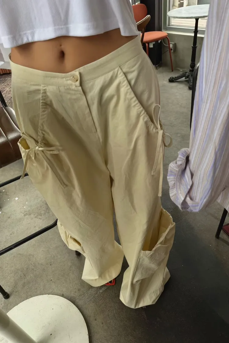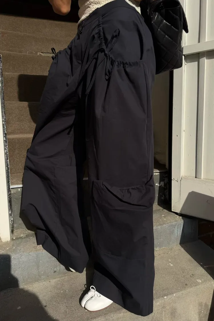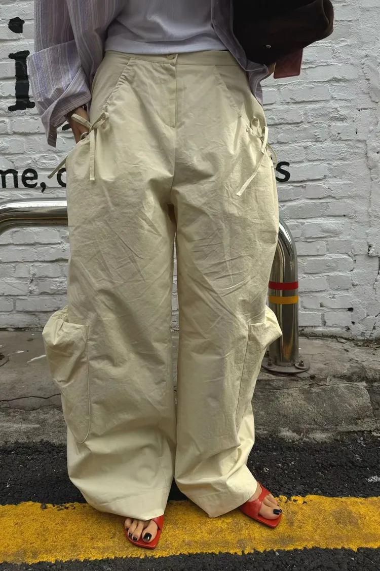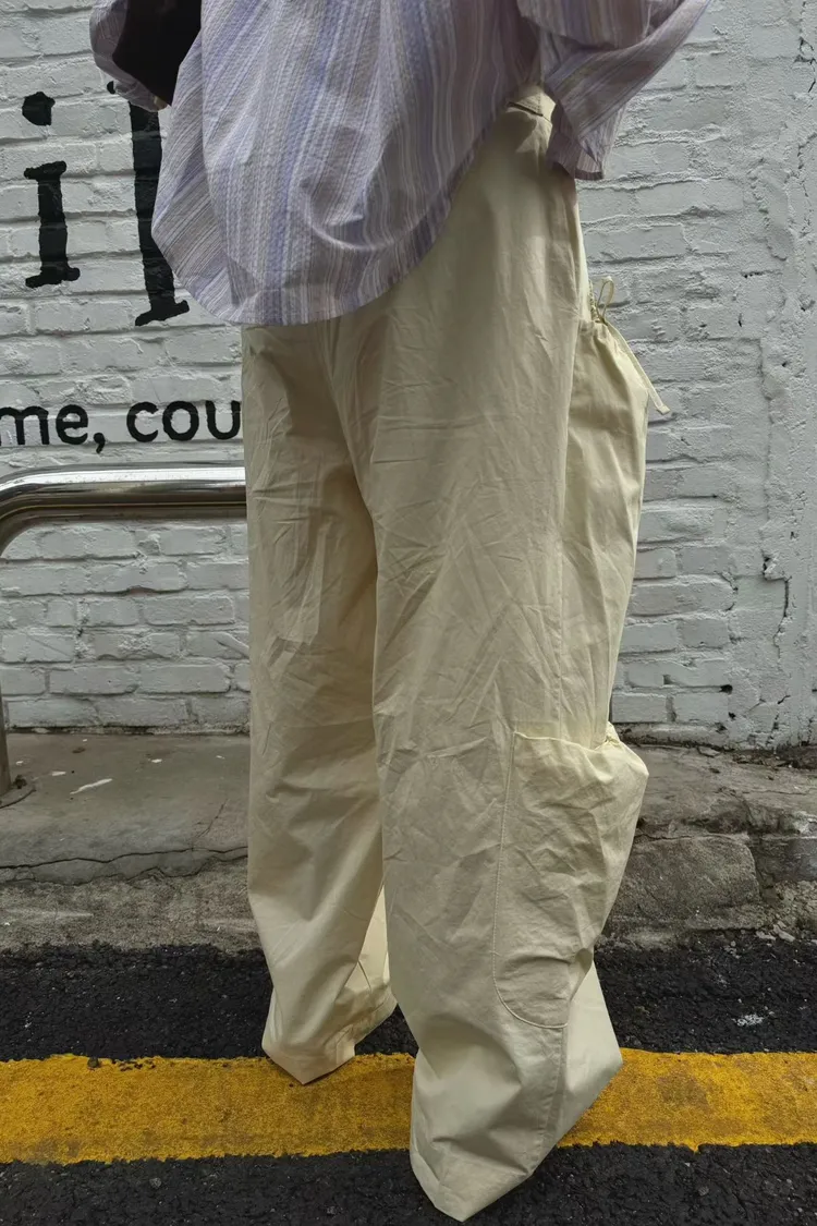 ABB口袋可綁腰調節寬褲