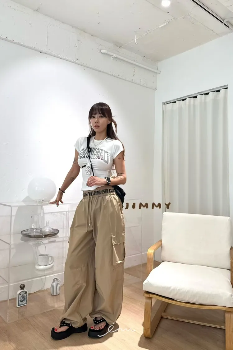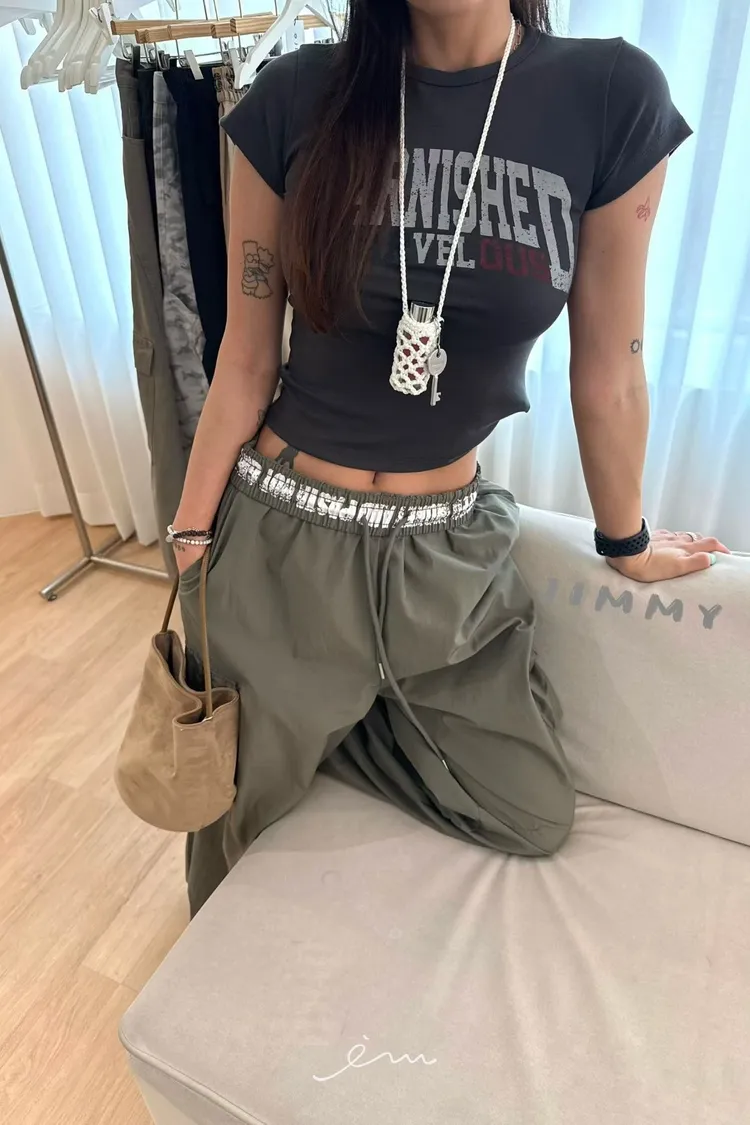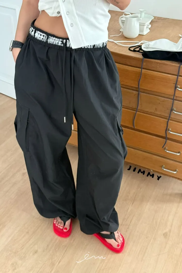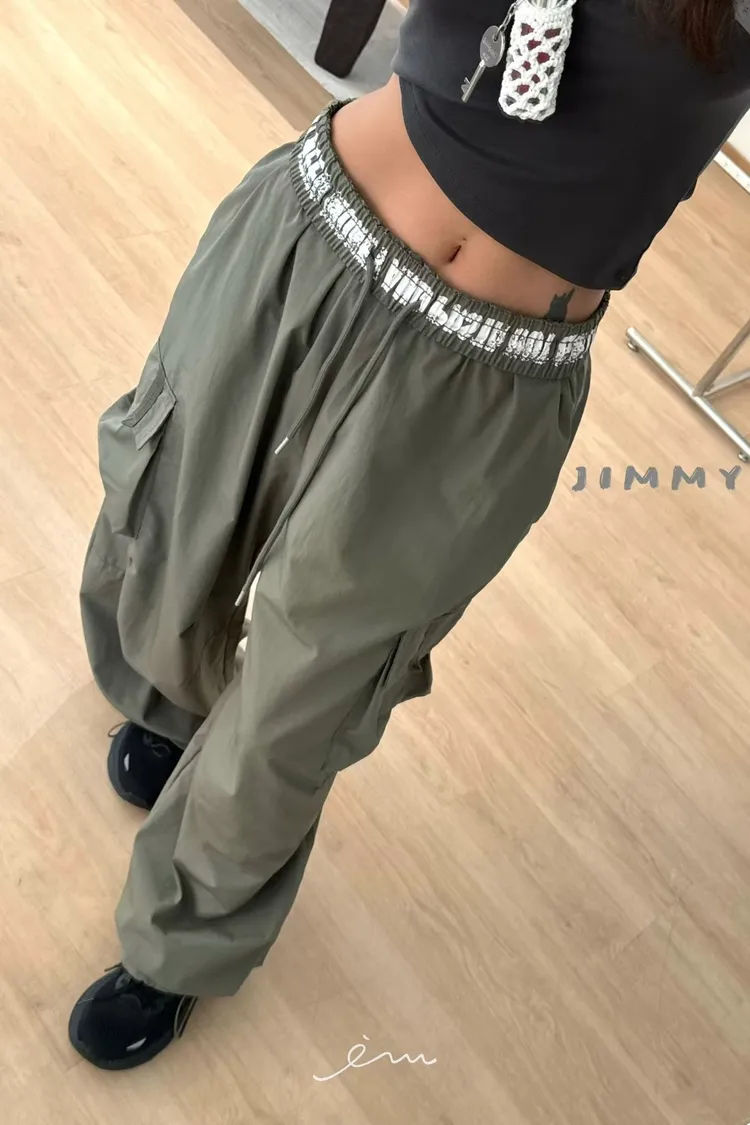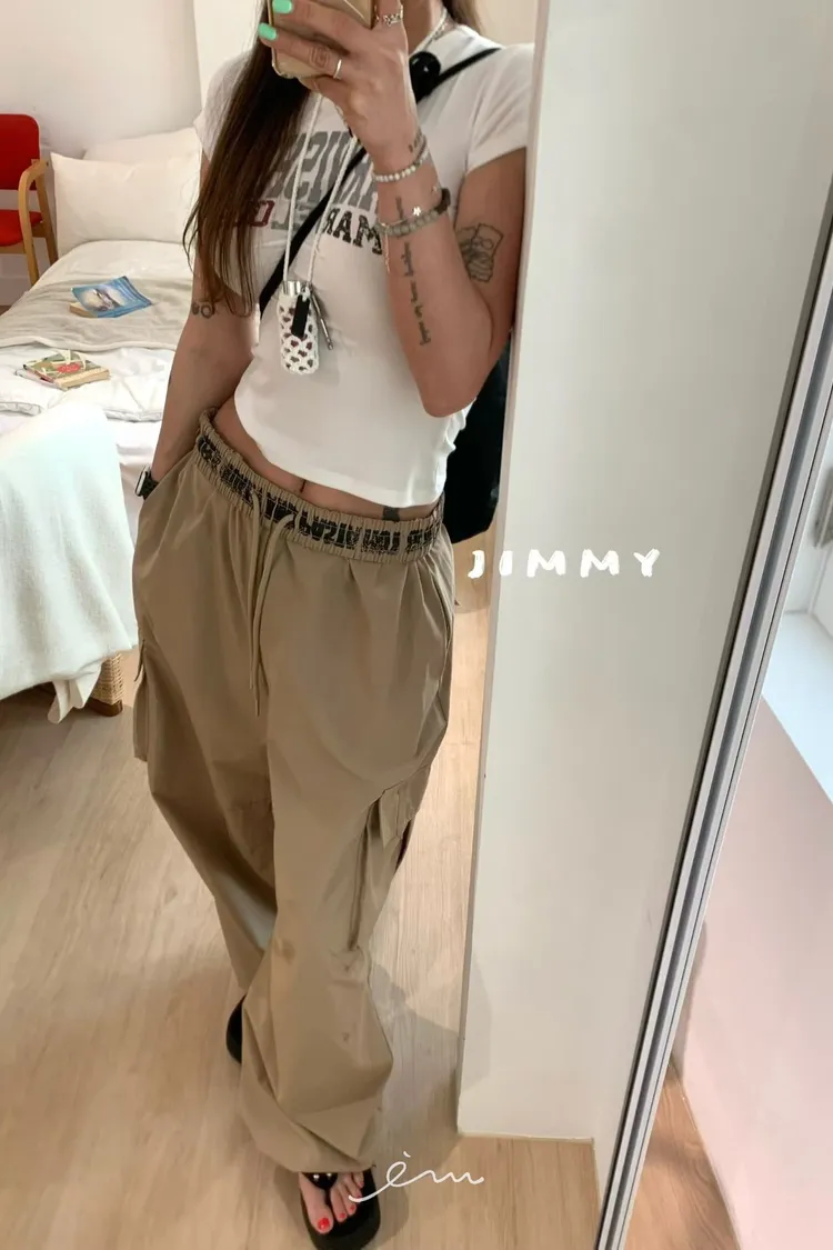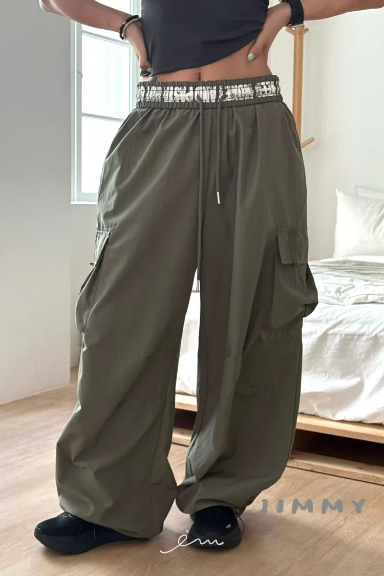 Jimmy反摺褲頭英字抽繩工裝褲