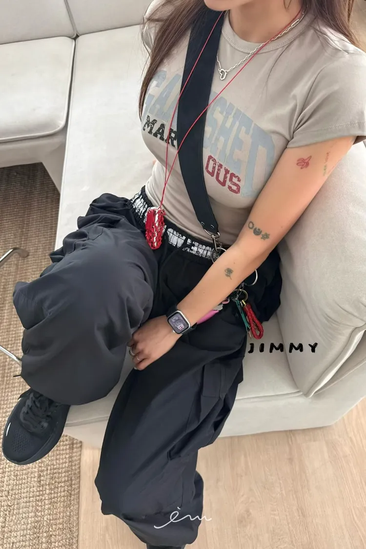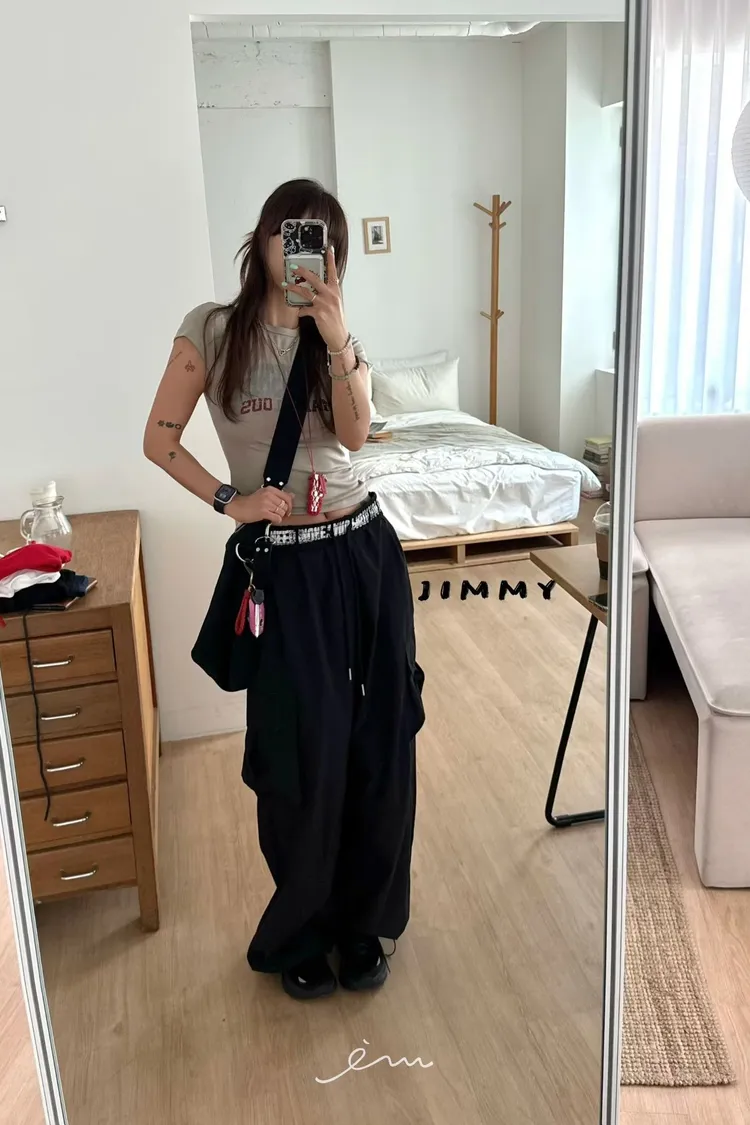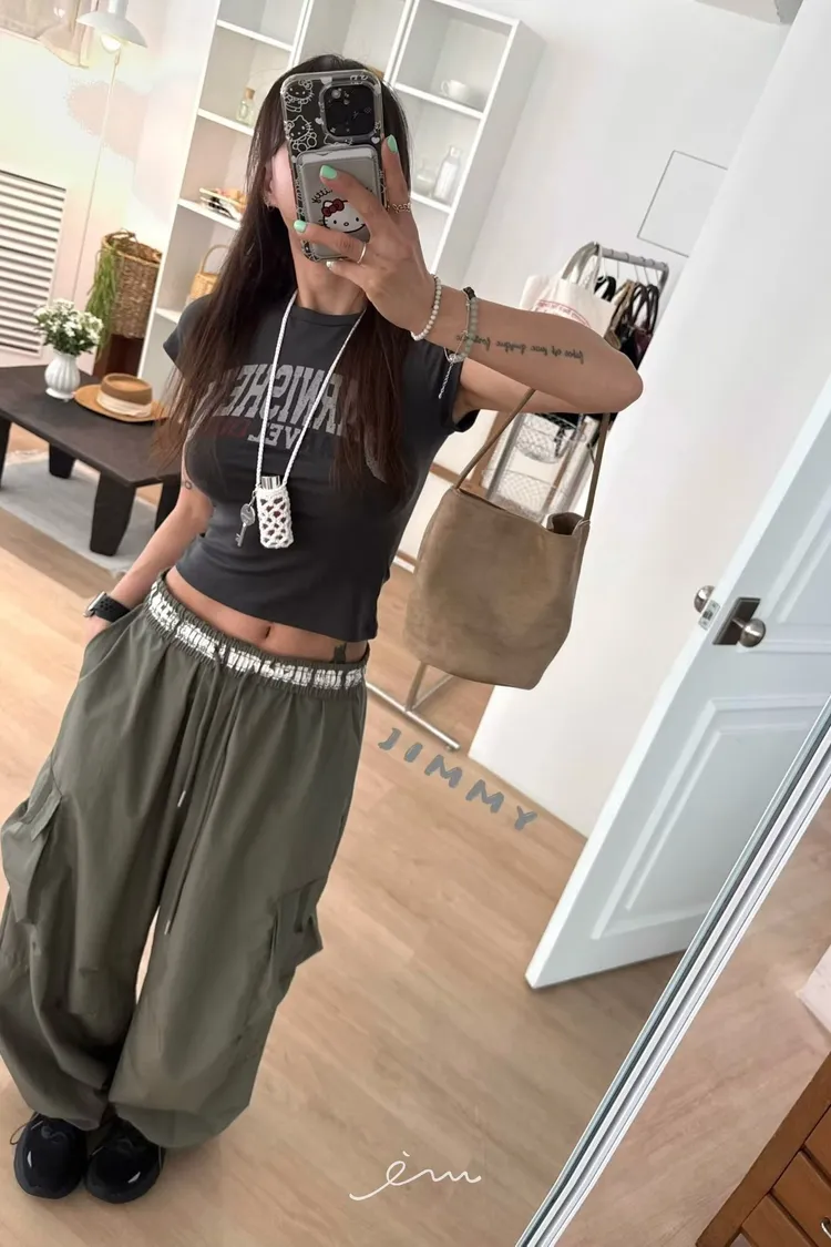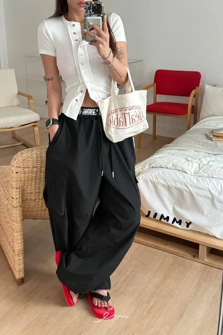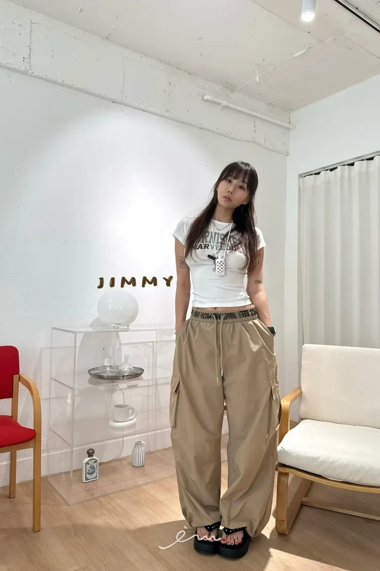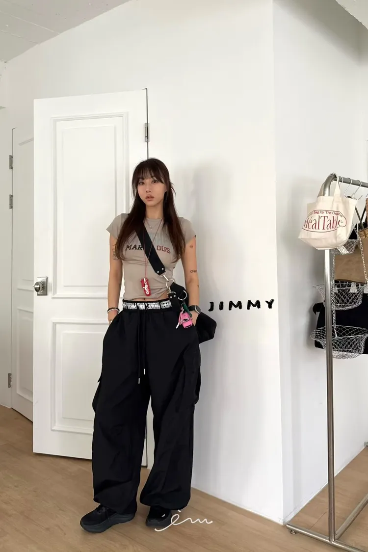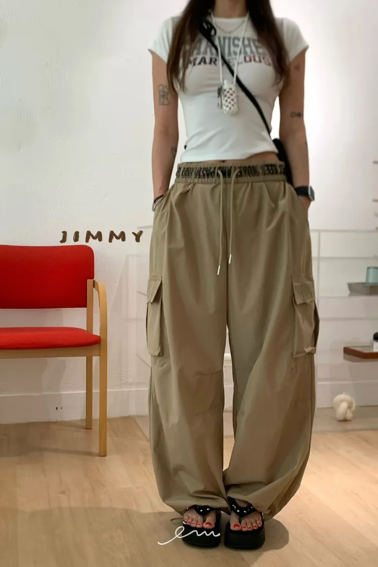 Jimmy反摺褲頭英字抽繩工裝褲