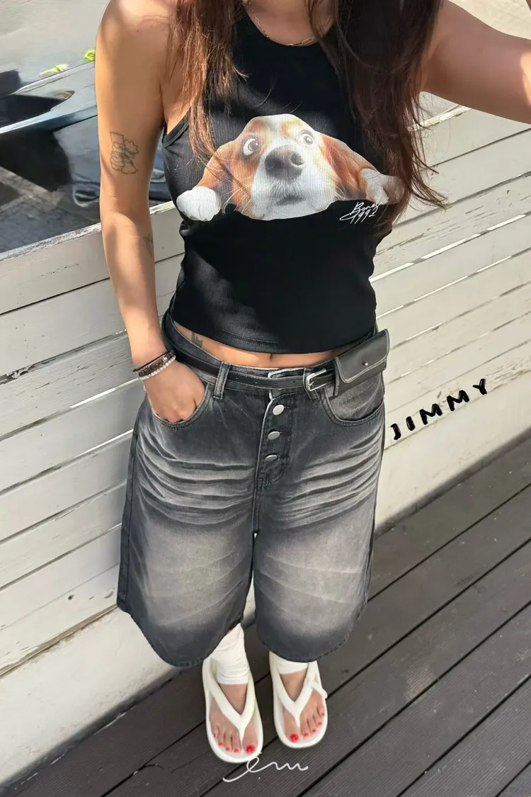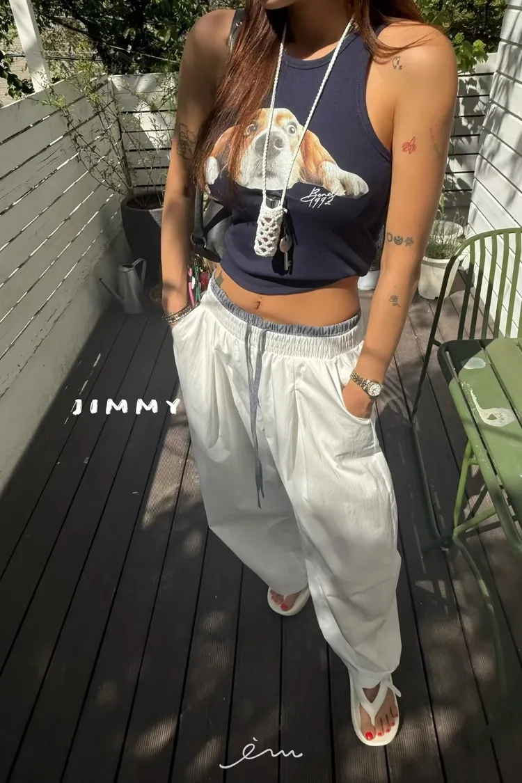 Jimmy趴下狗狗英字削肩罩杯背心(罩杯不能拆)