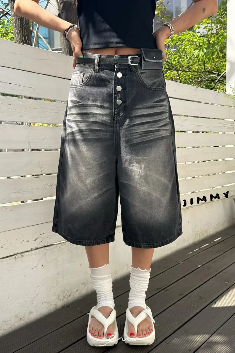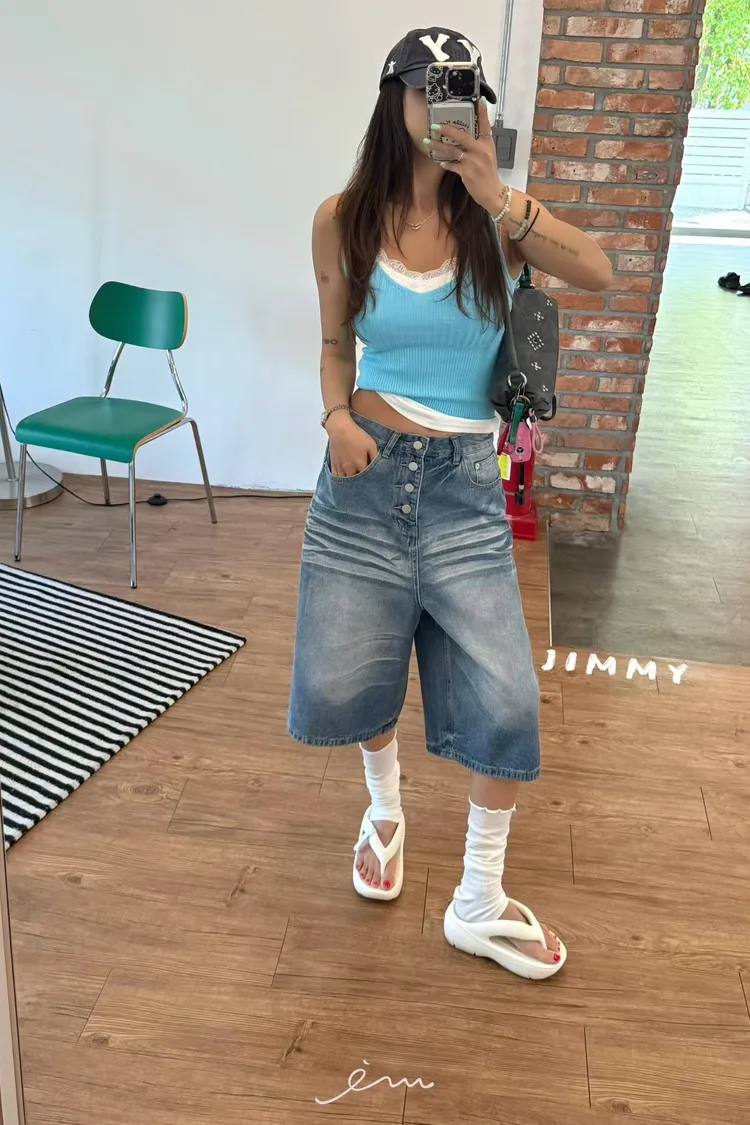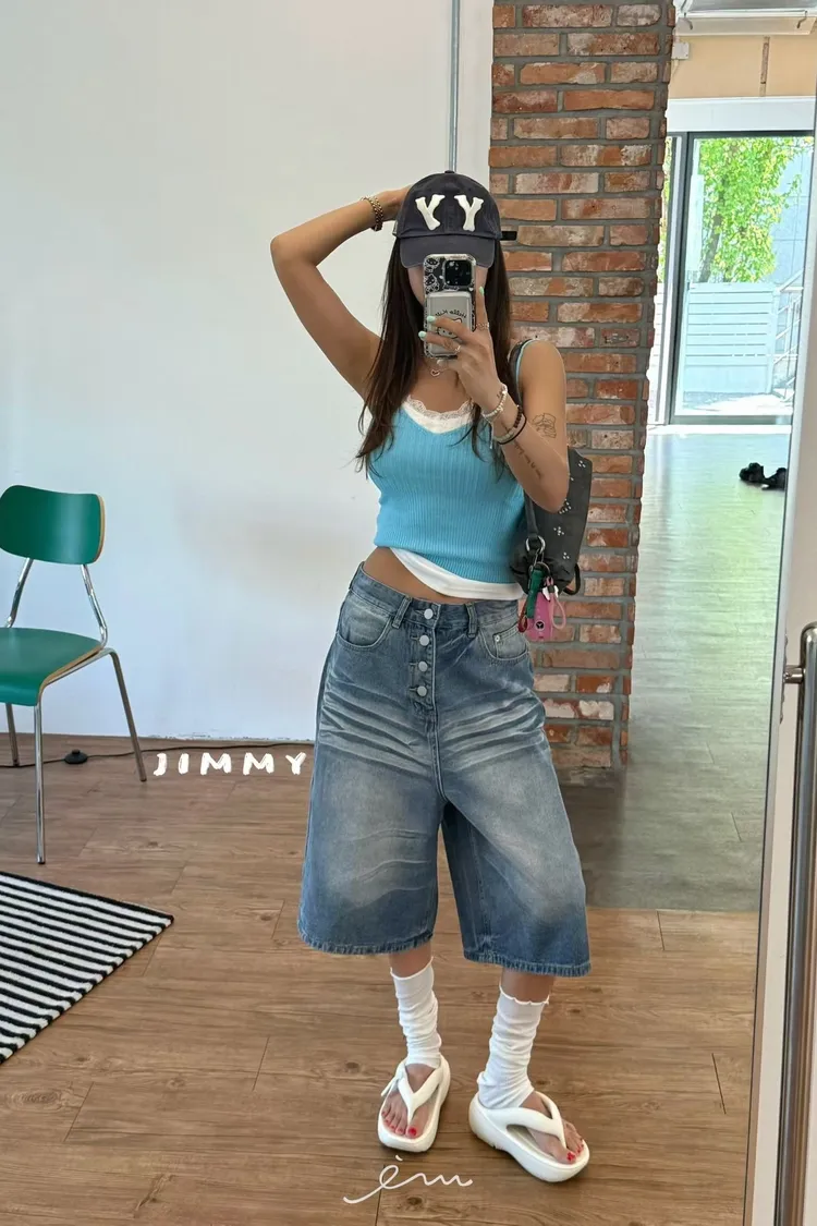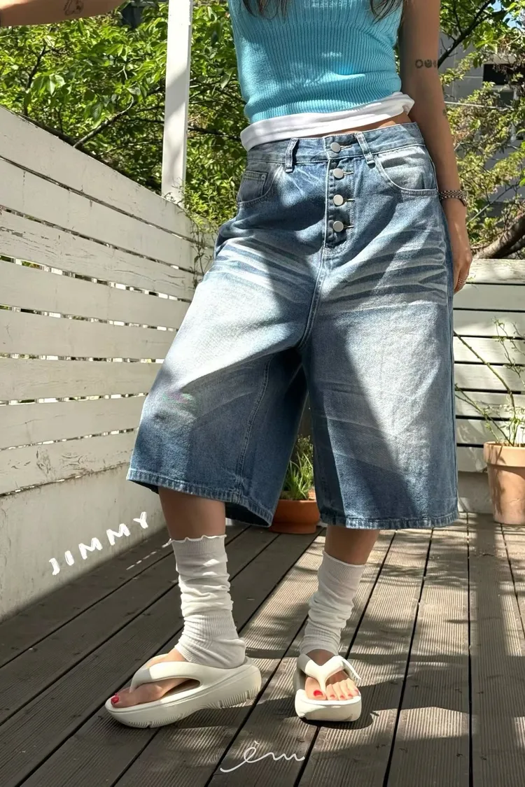 Jimmy排釦七分牛仔褲