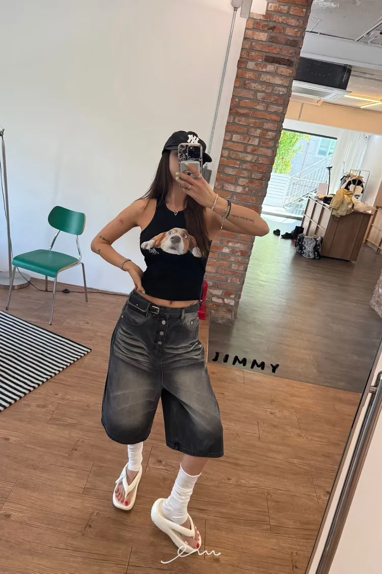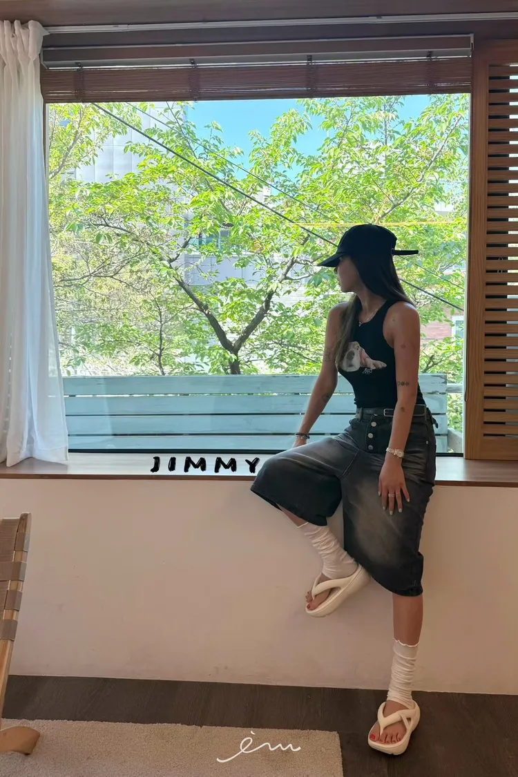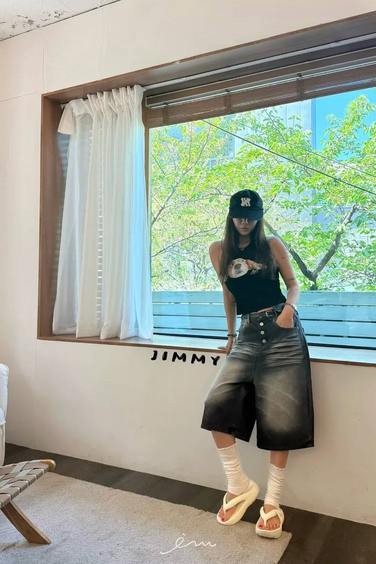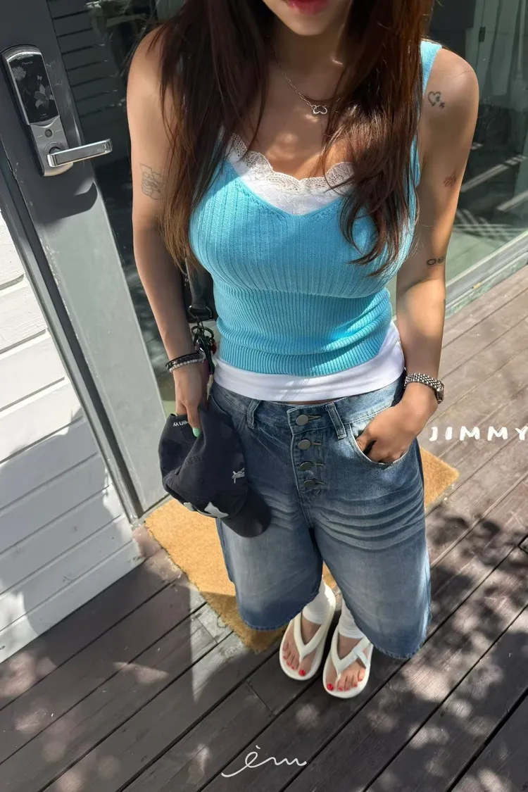 Jimmy排釦七分牛仔褲