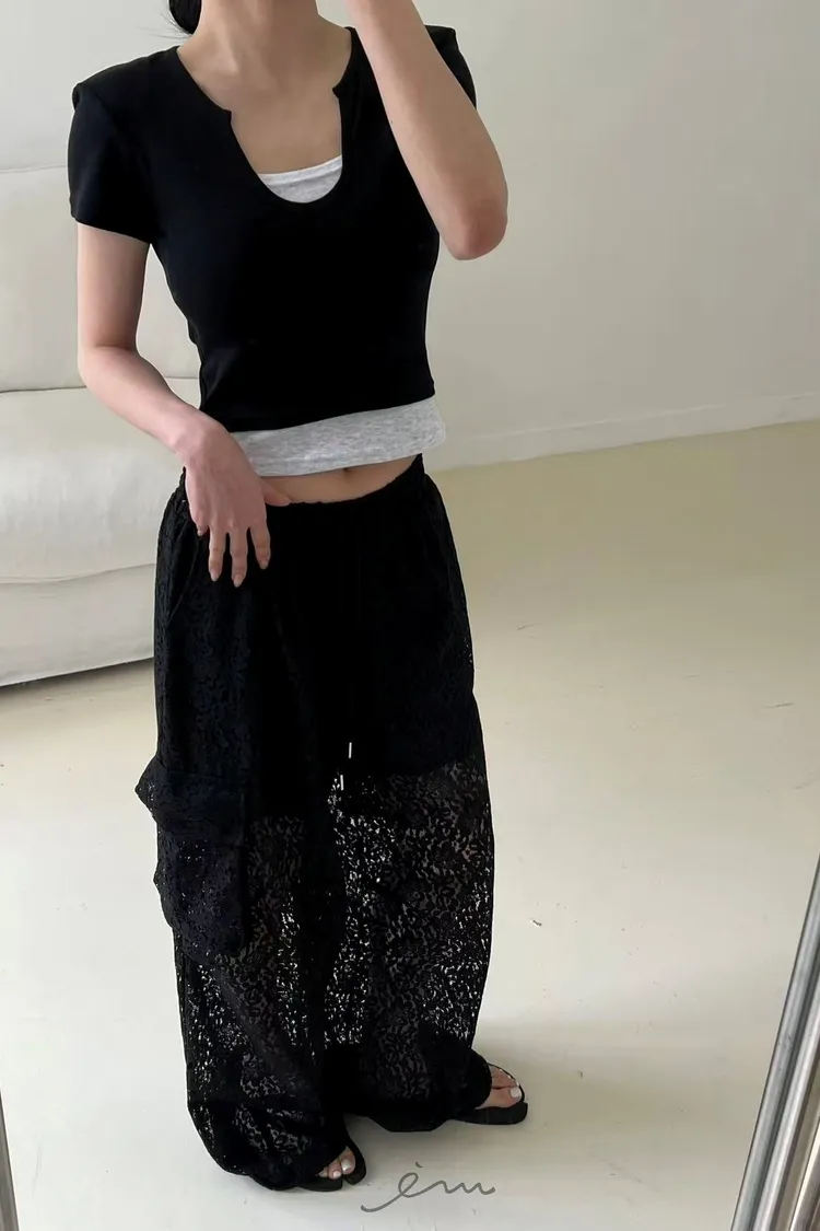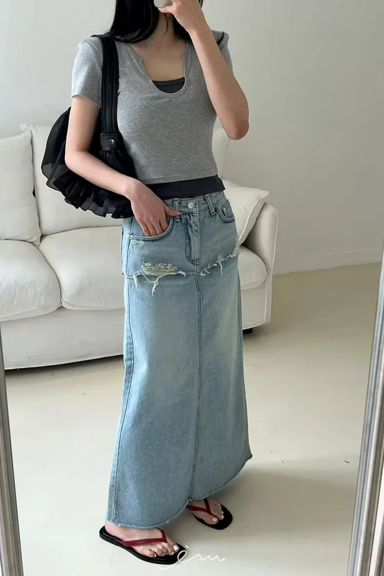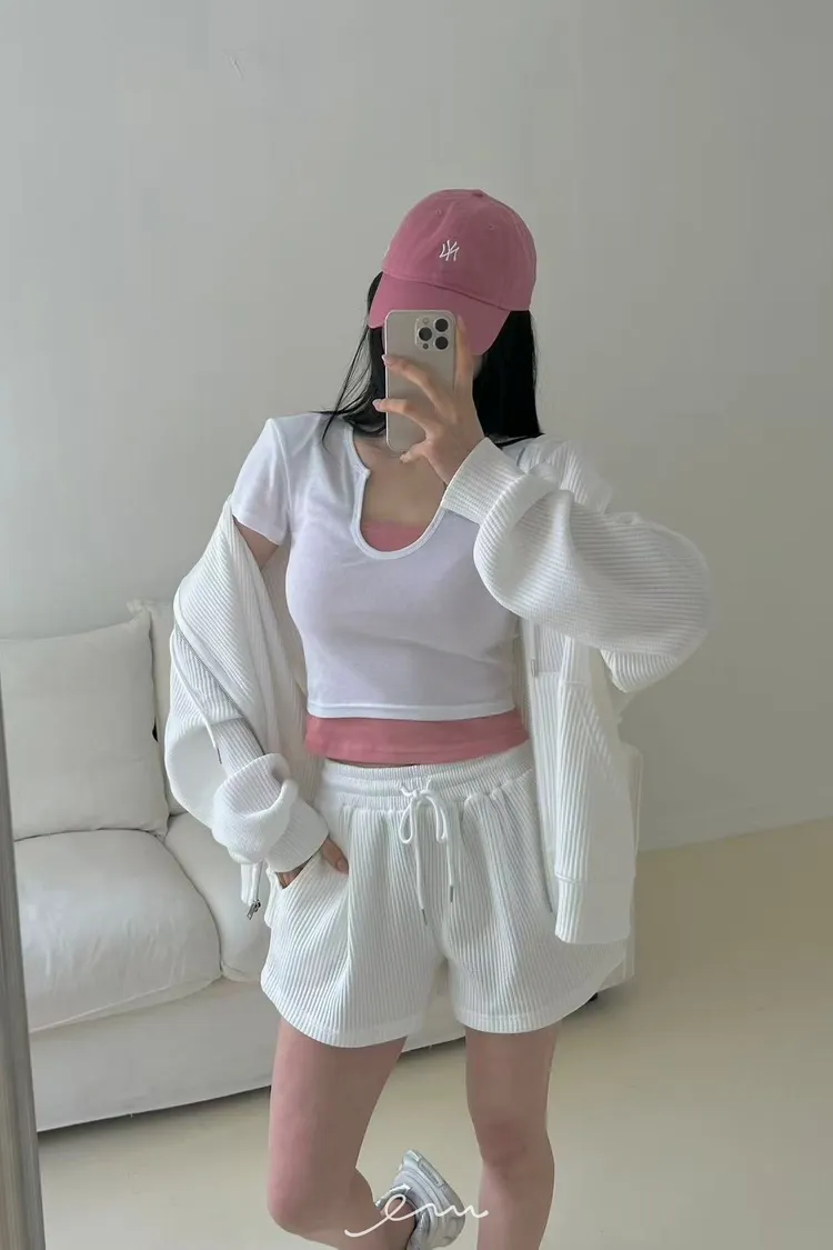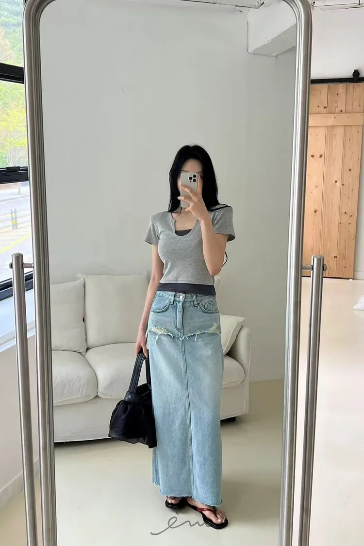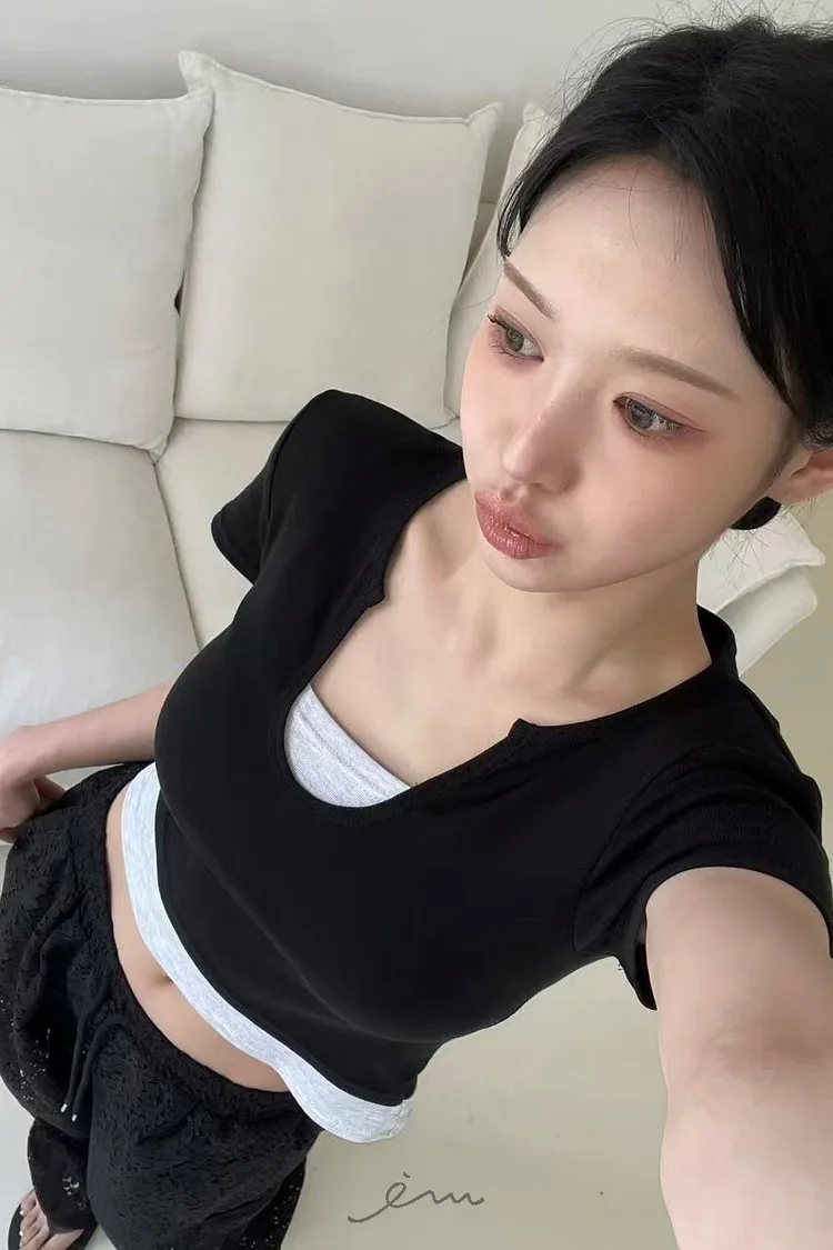 BAI小V字撞色假兩件T