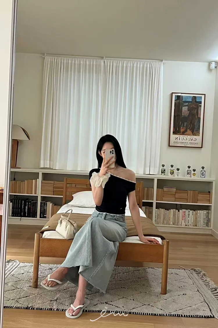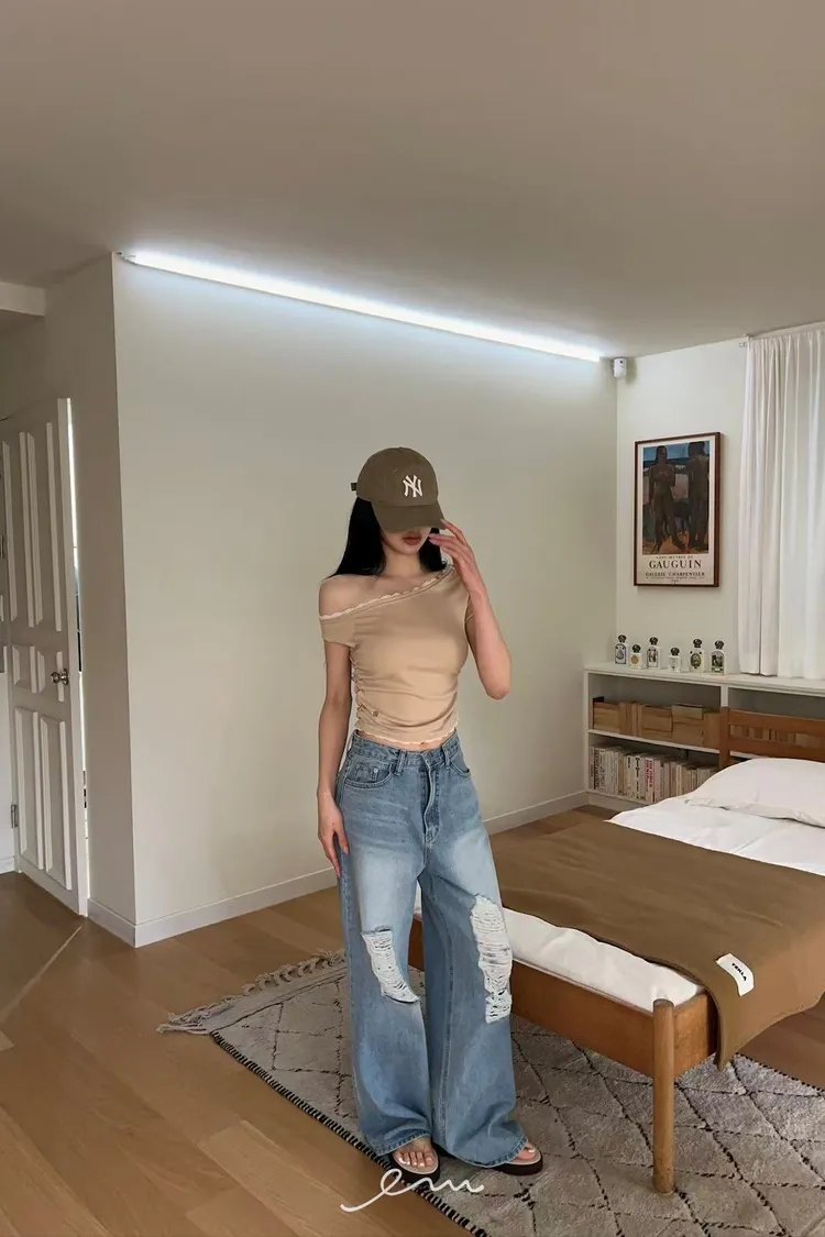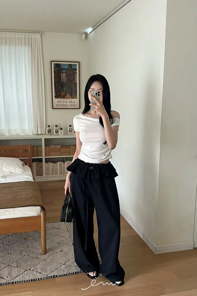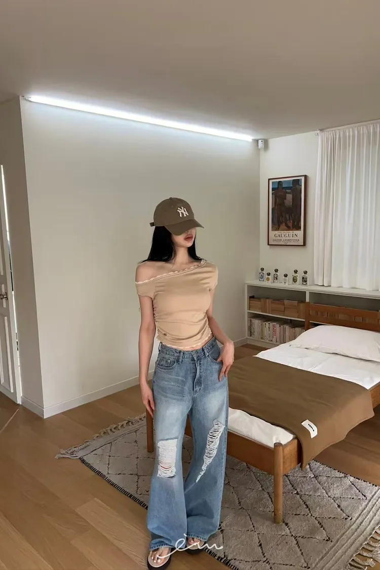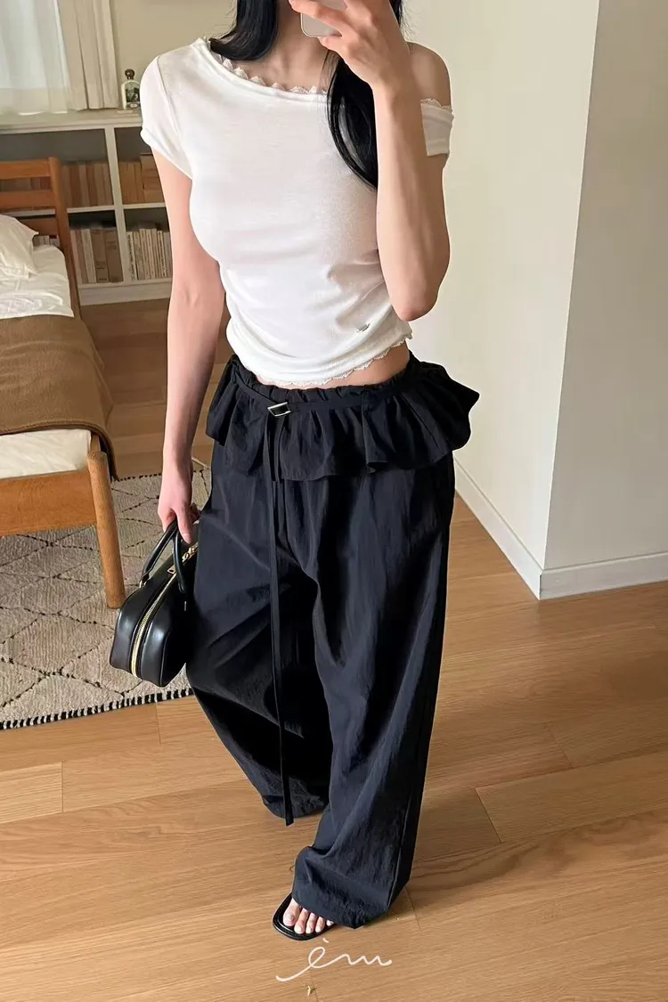 BAI拼蕾絲斜肩側抓皺鐵標衣(前50名優惠價)
