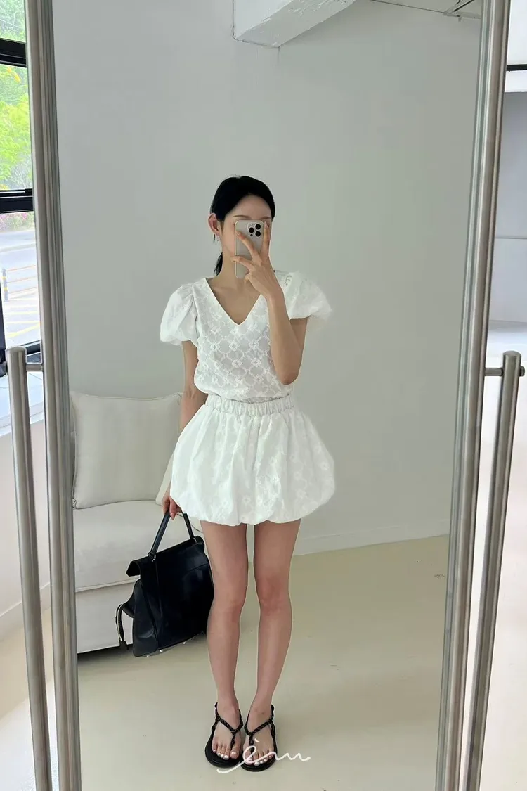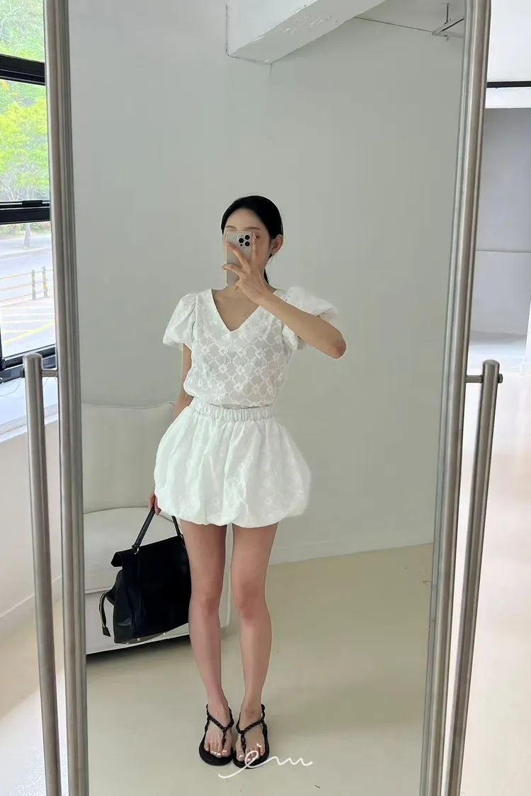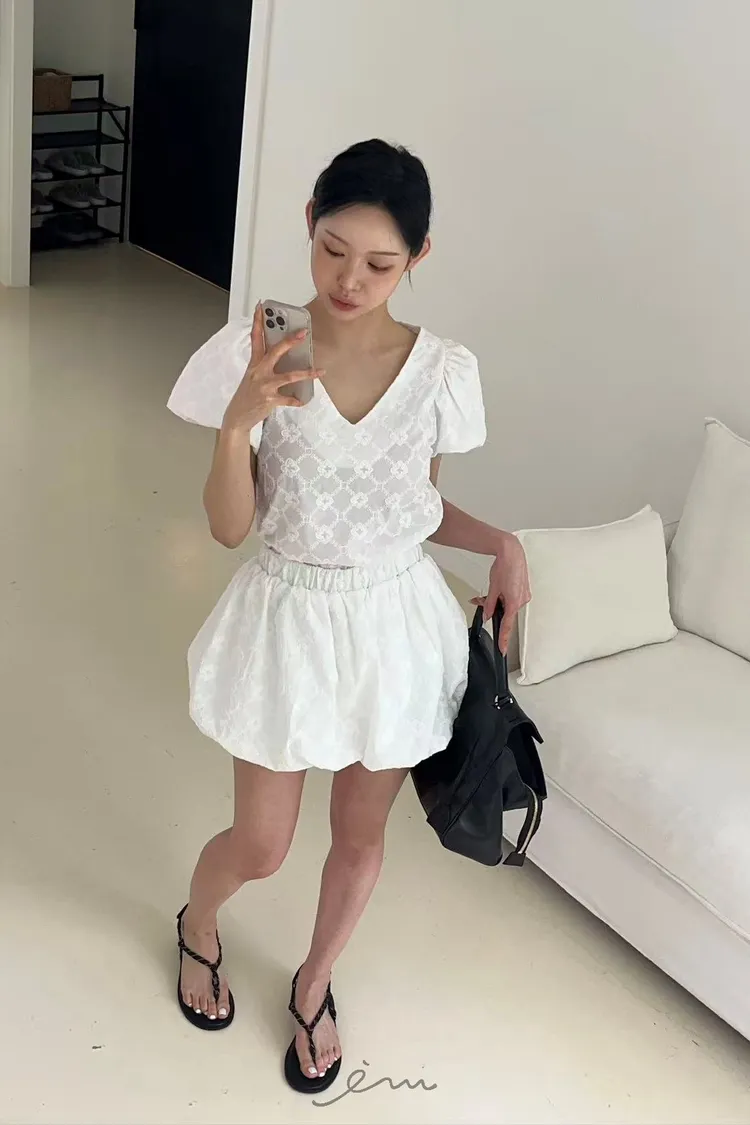 BAI側拉鍊雕花南瓜褲裙