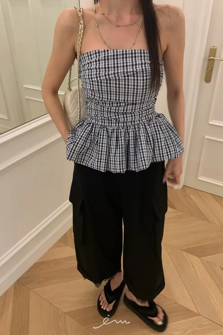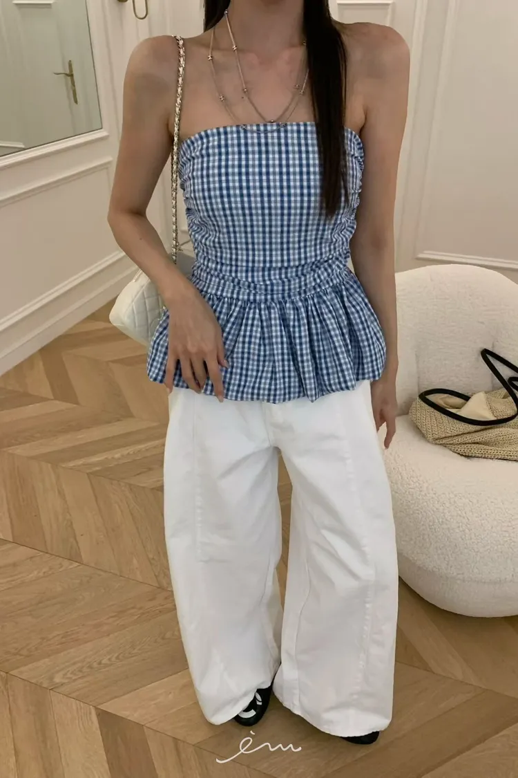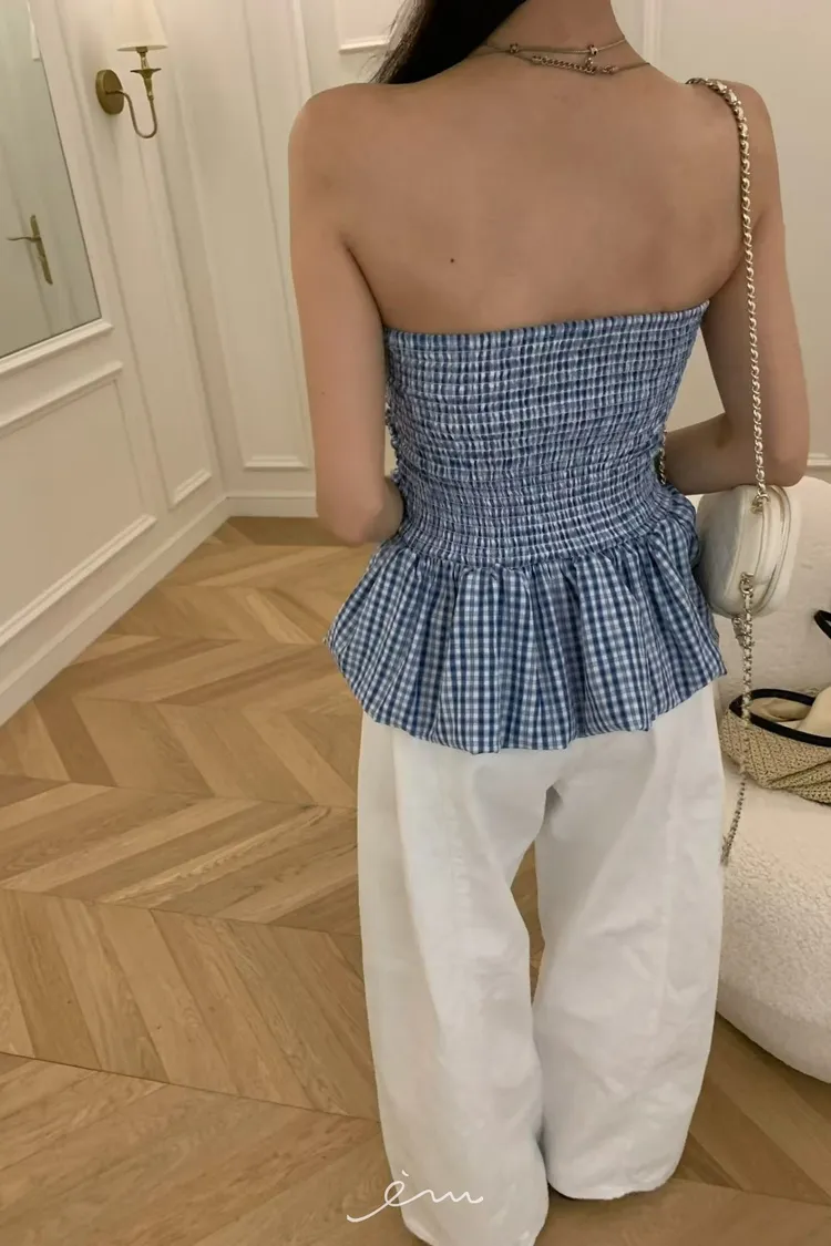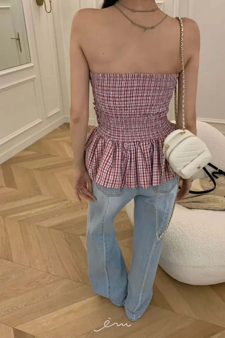 VK下裙擺細條紋平口背心