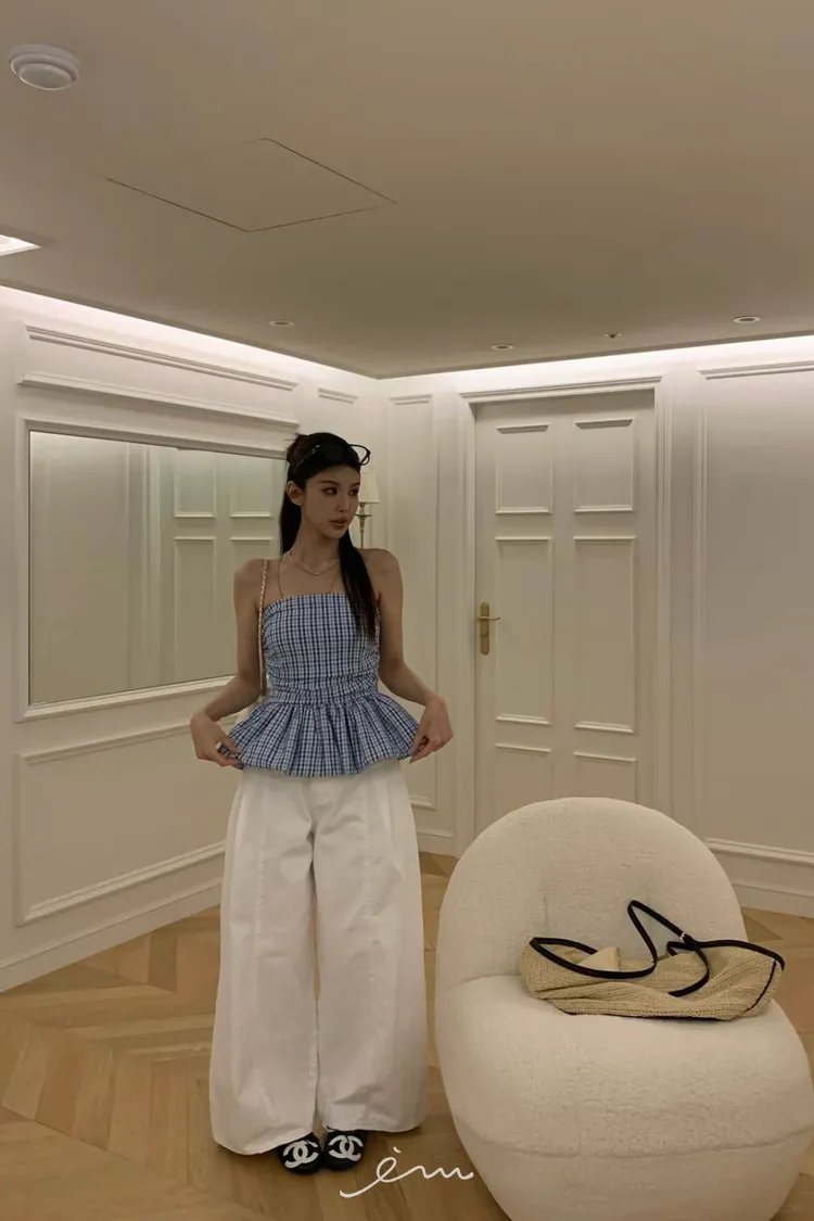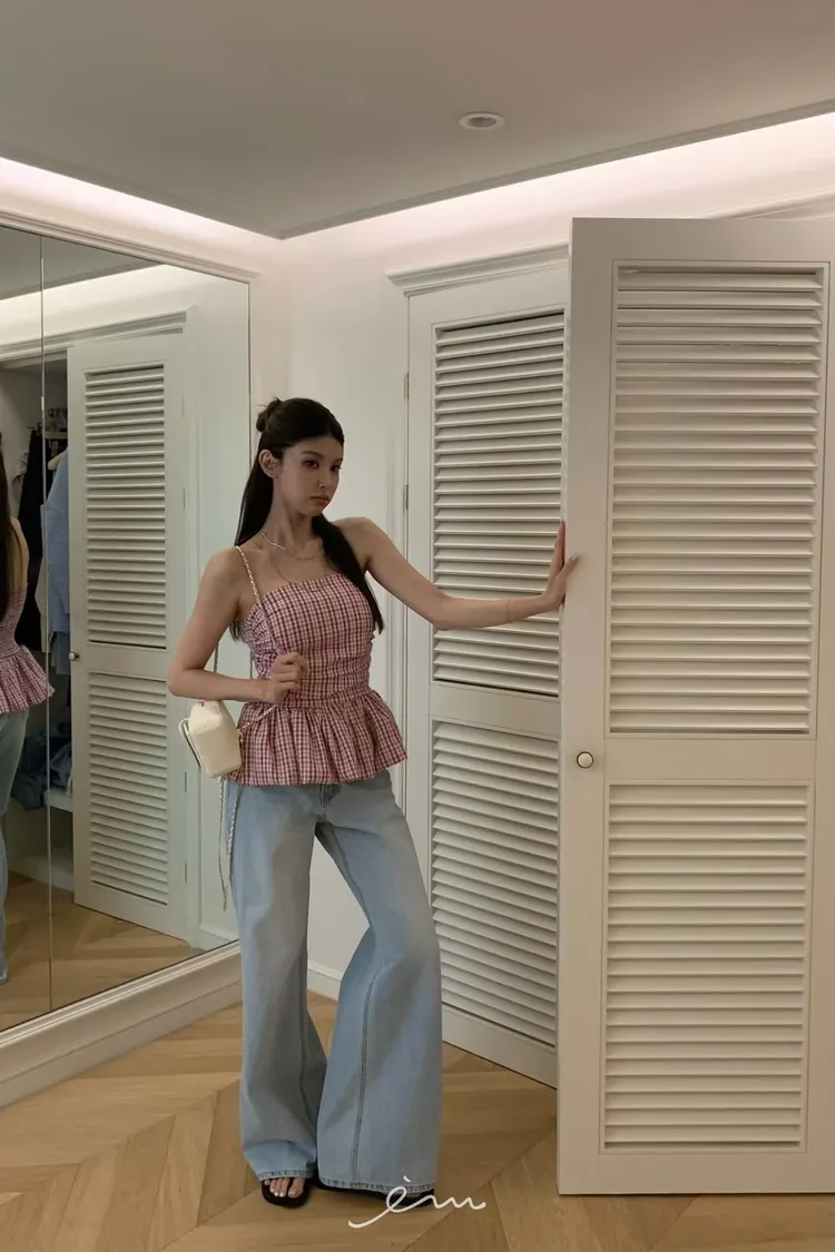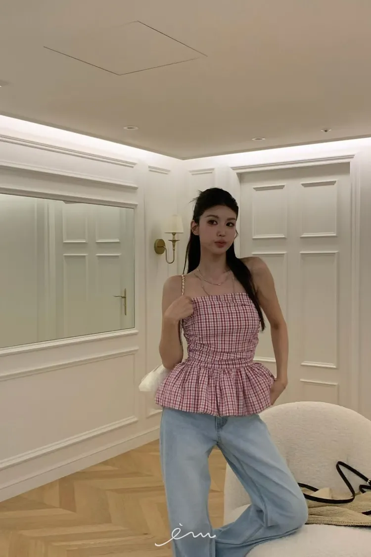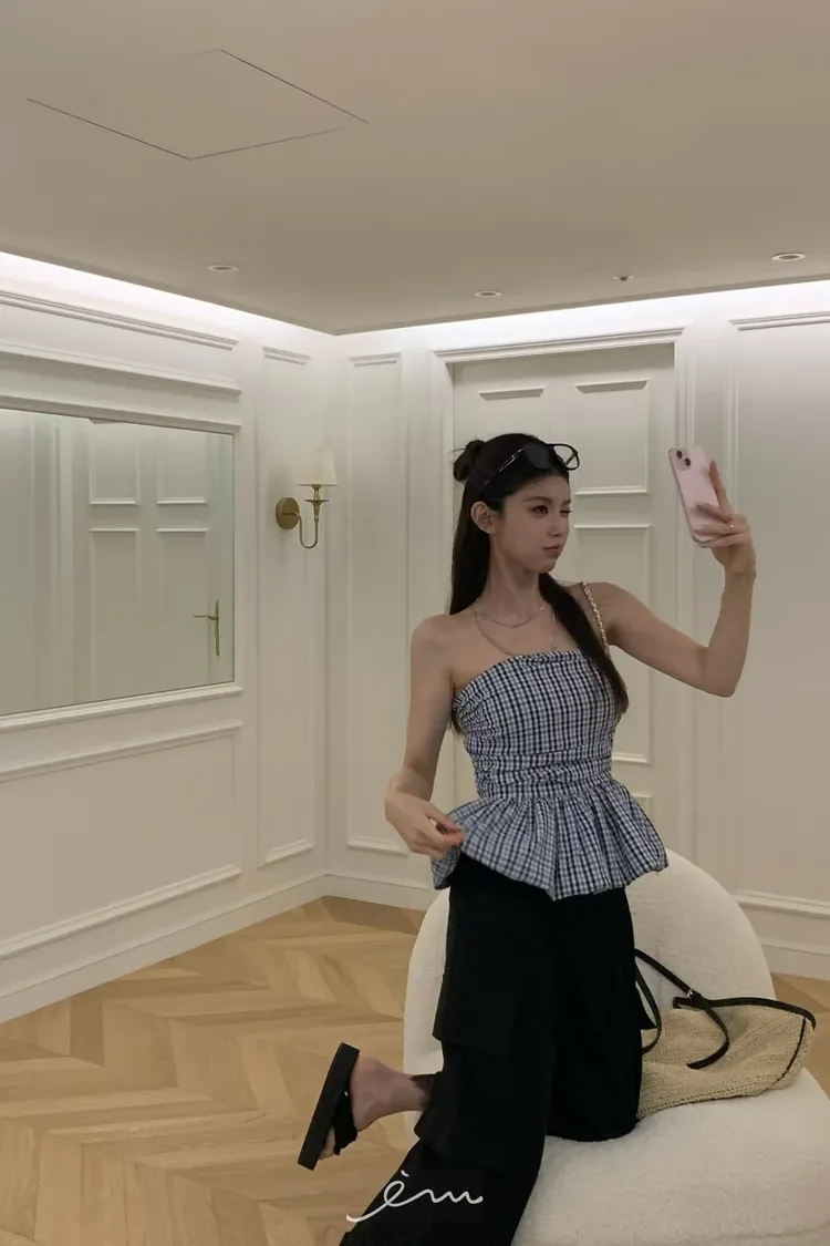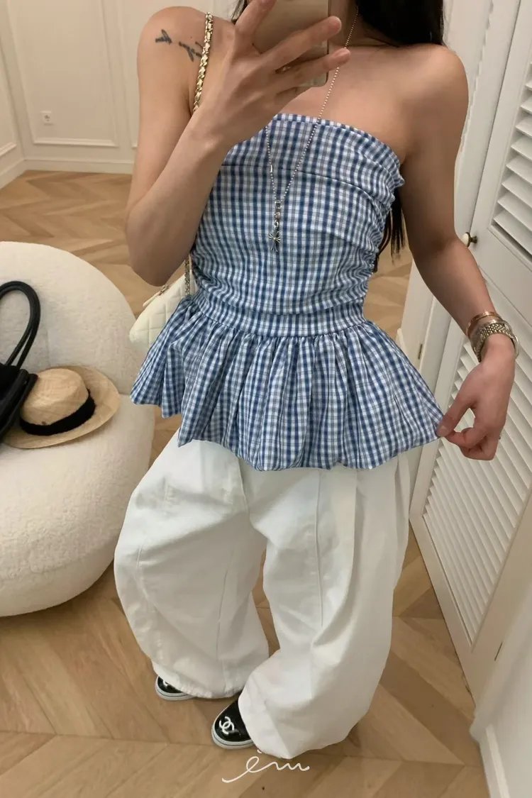 VK下裙擺細條紋平口背心