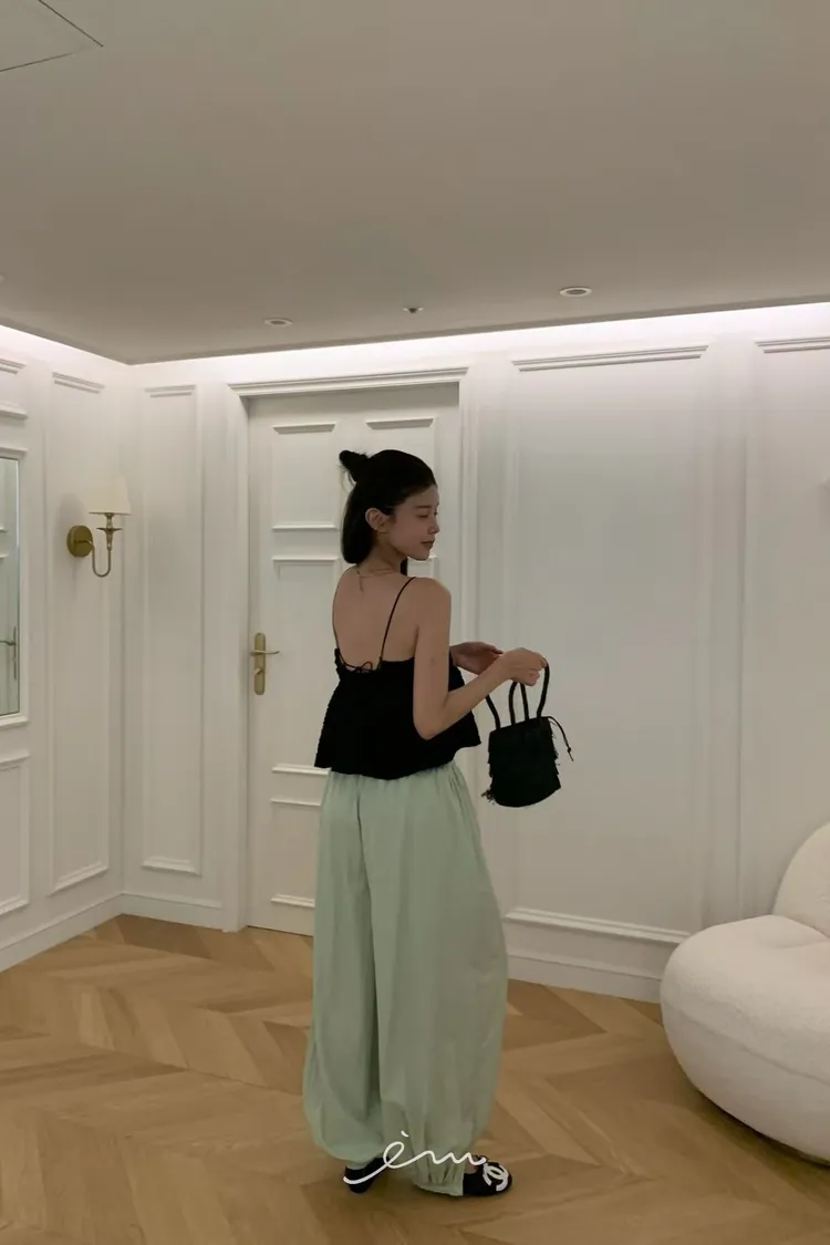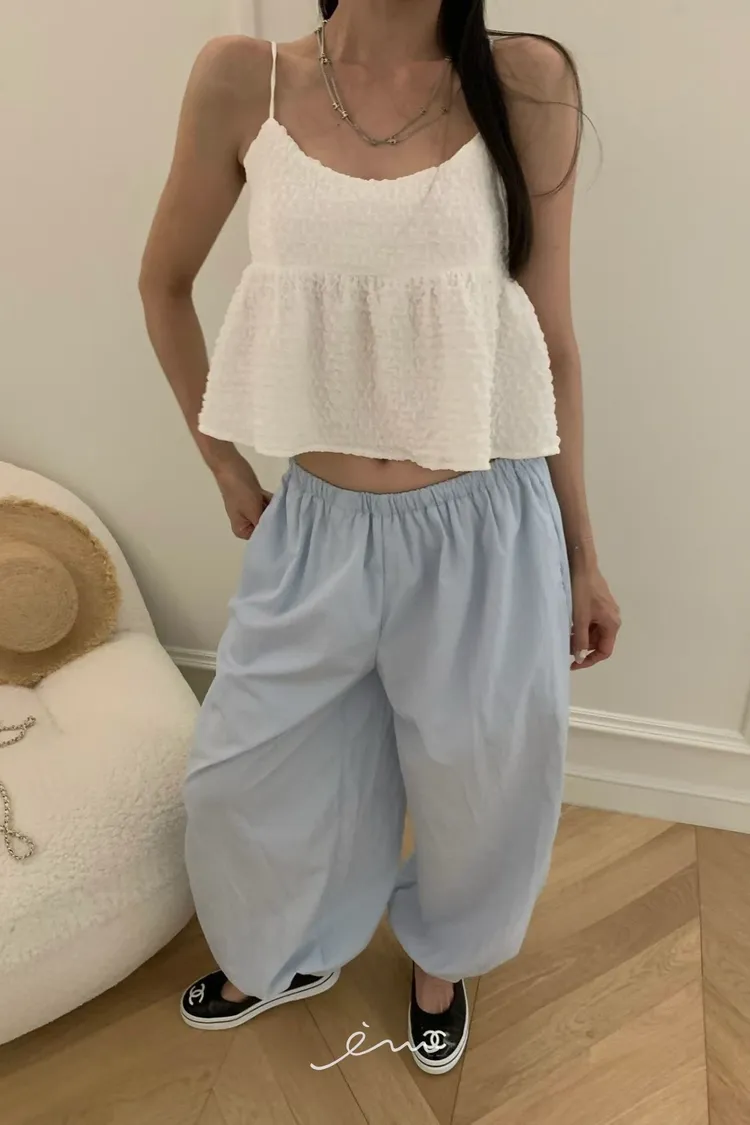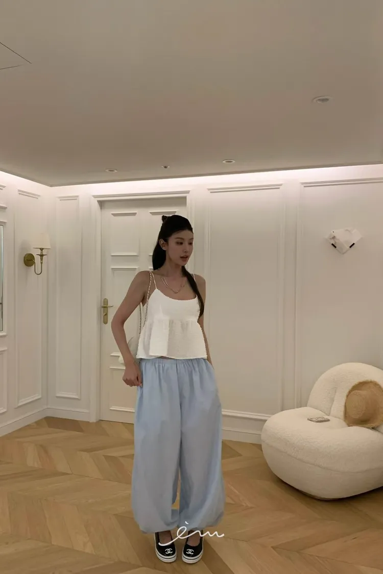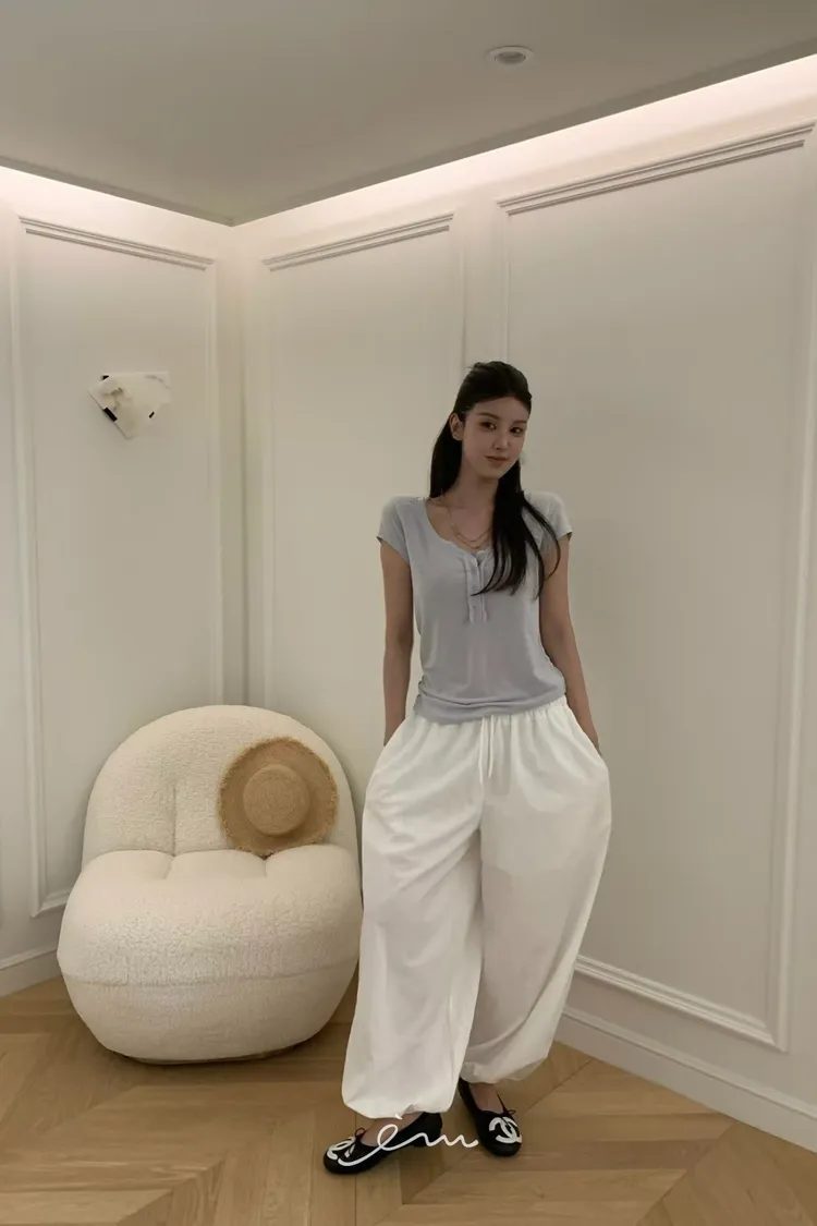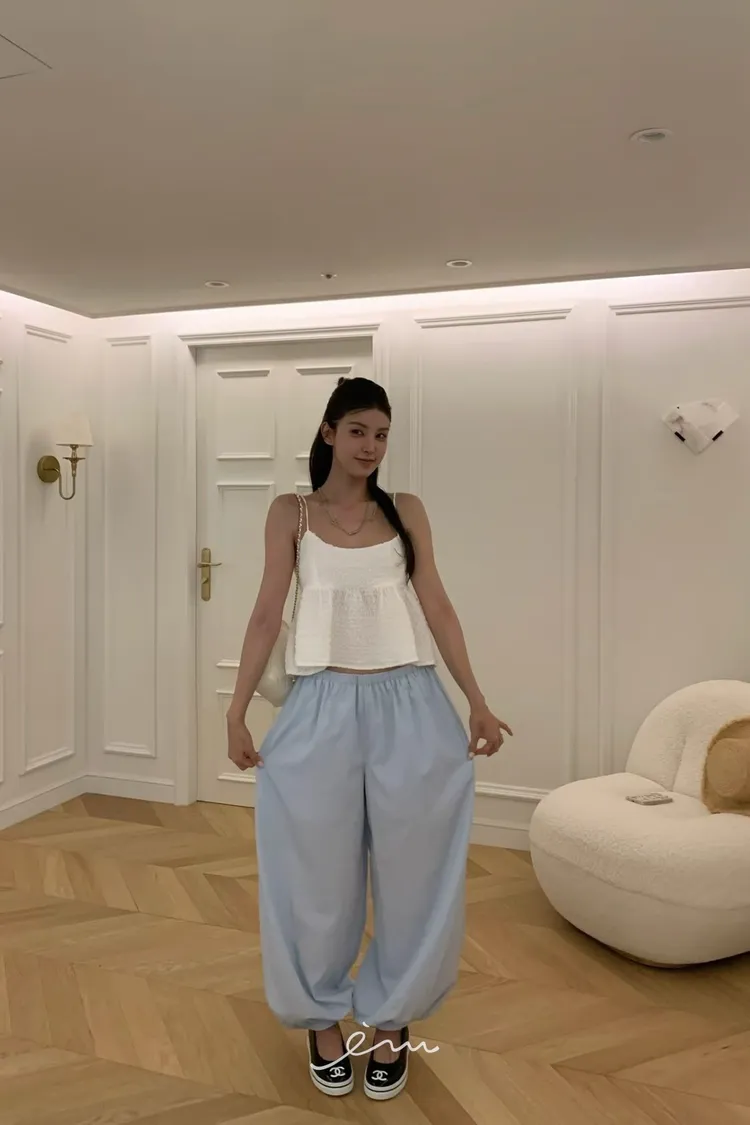 VK下鈕釦縮腳內抽繩長褲