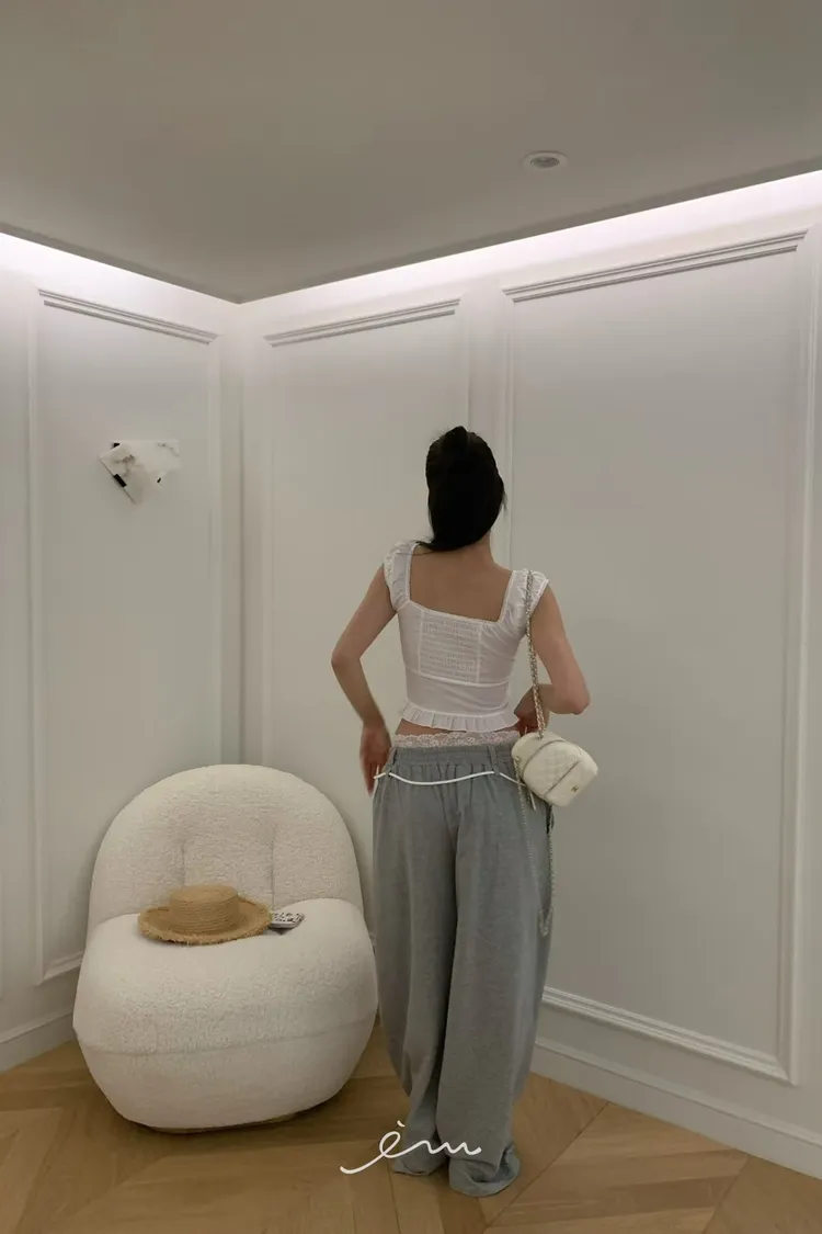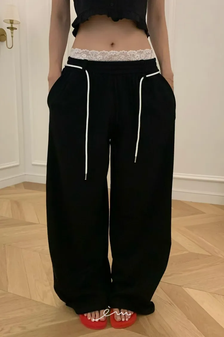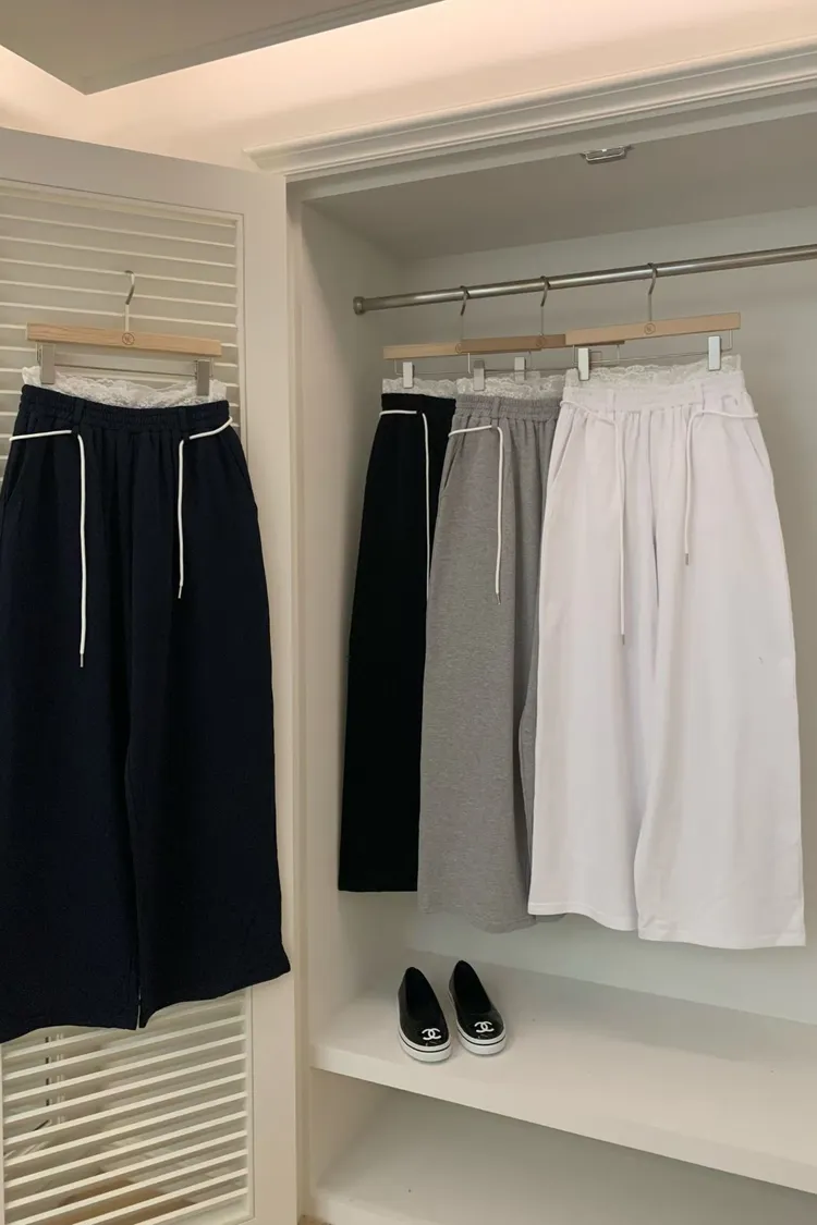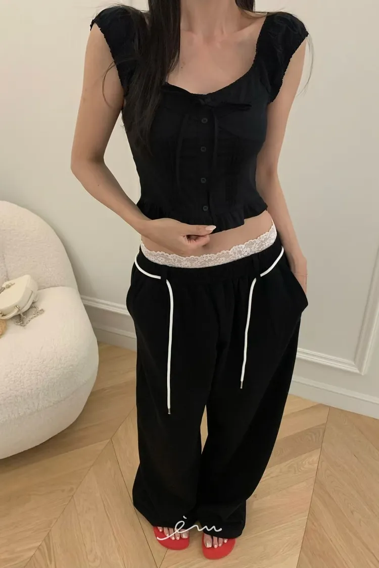 VK繩子+花邊蕾絲褲頭長褲