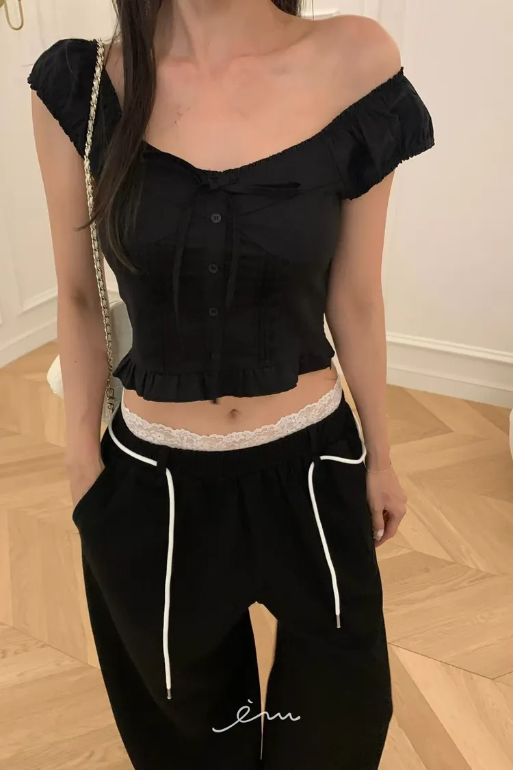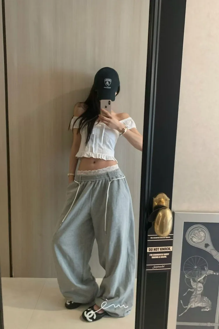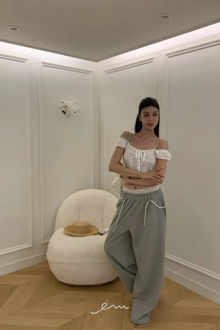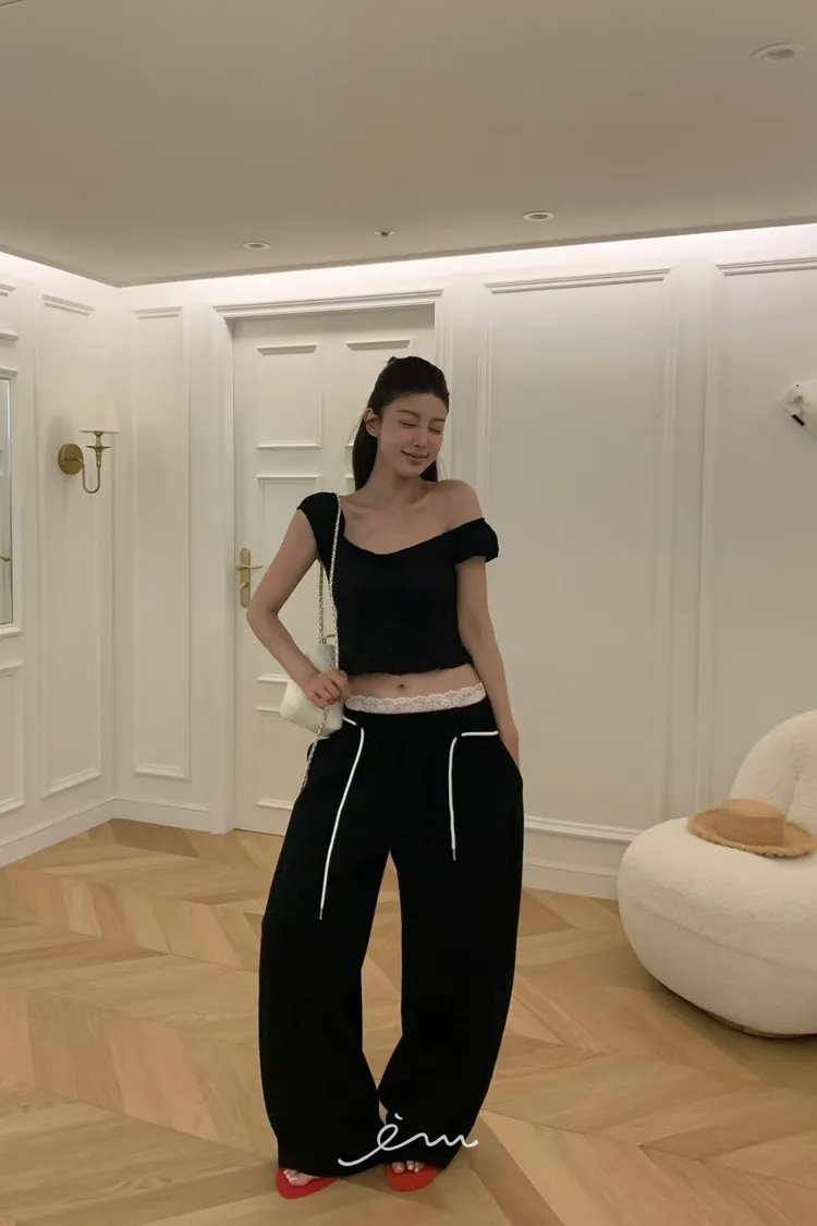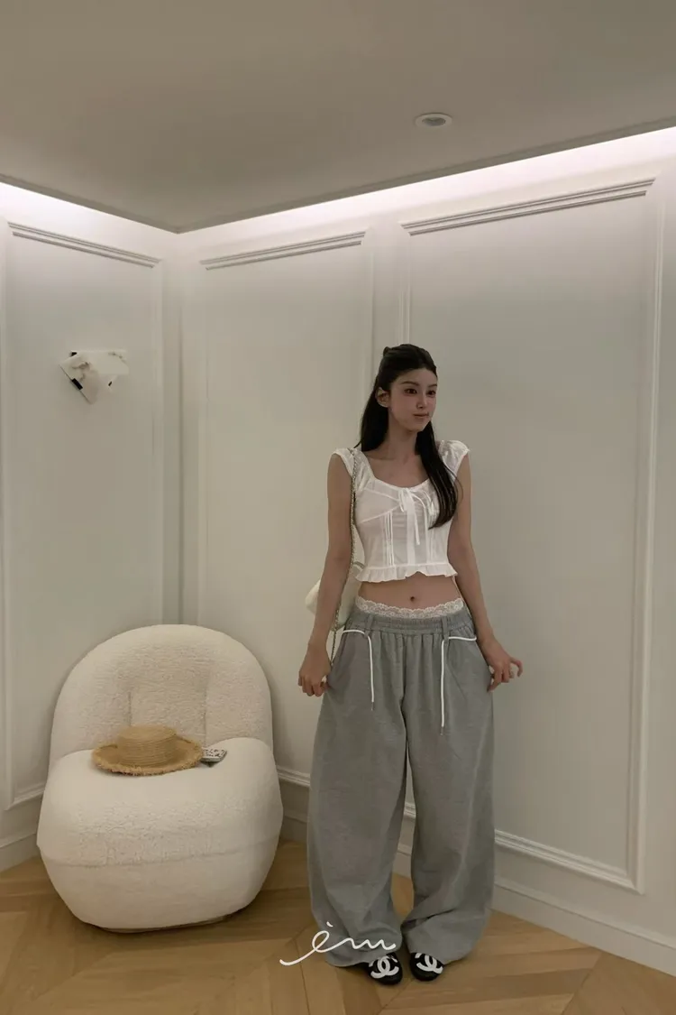 VK繩子+花邊蕾絲褲頭長褲