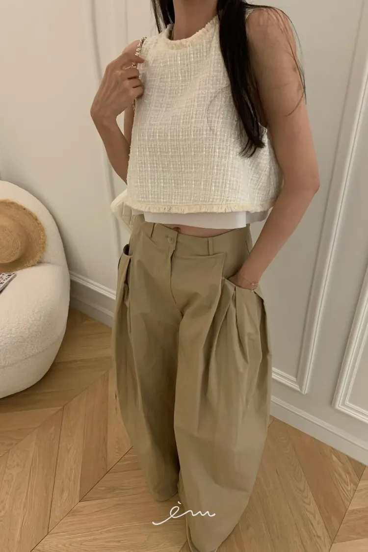VK壓摺口袋鈕釦長褲
