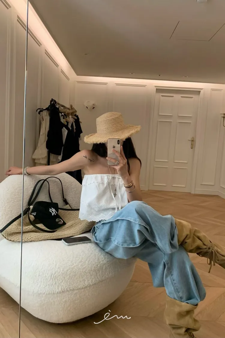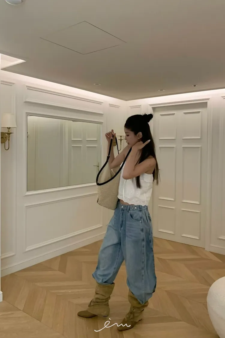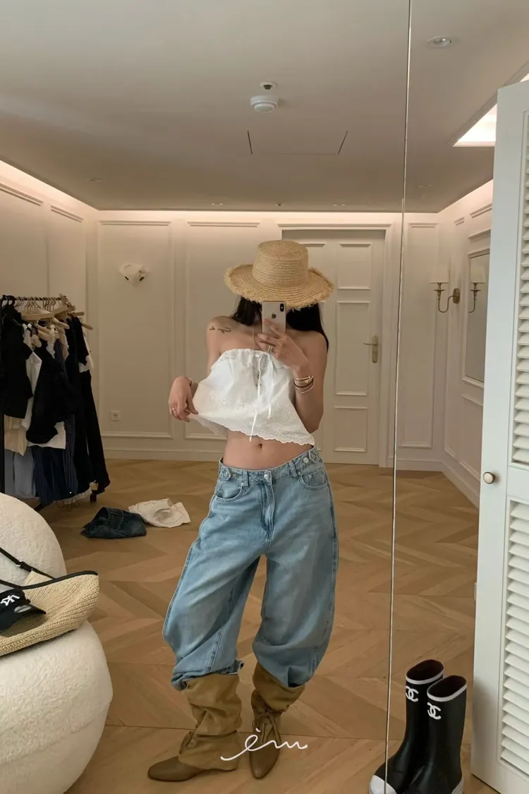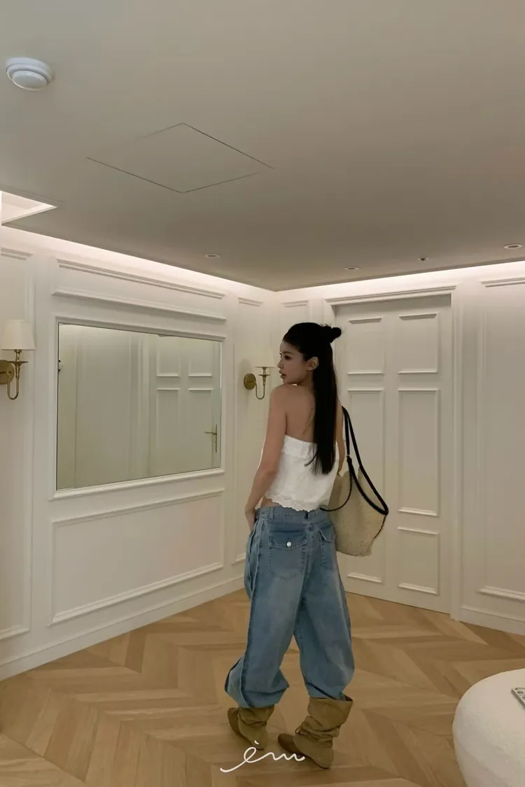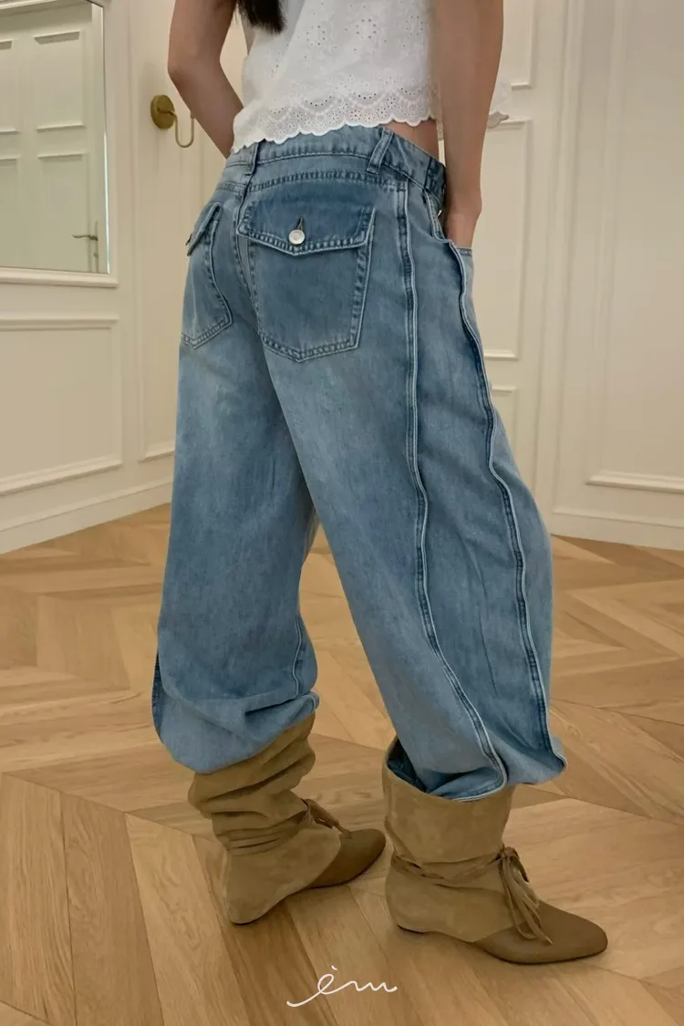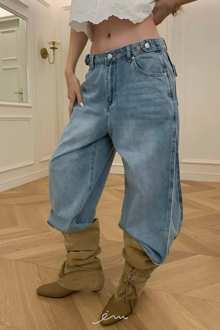VK調節褲頭下壓釦牛仔褲