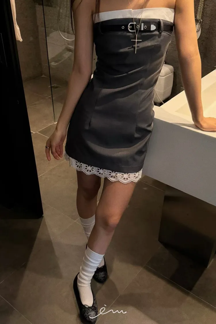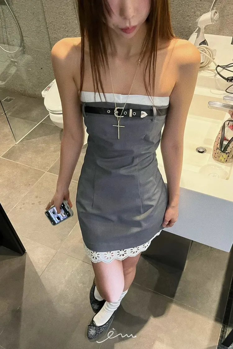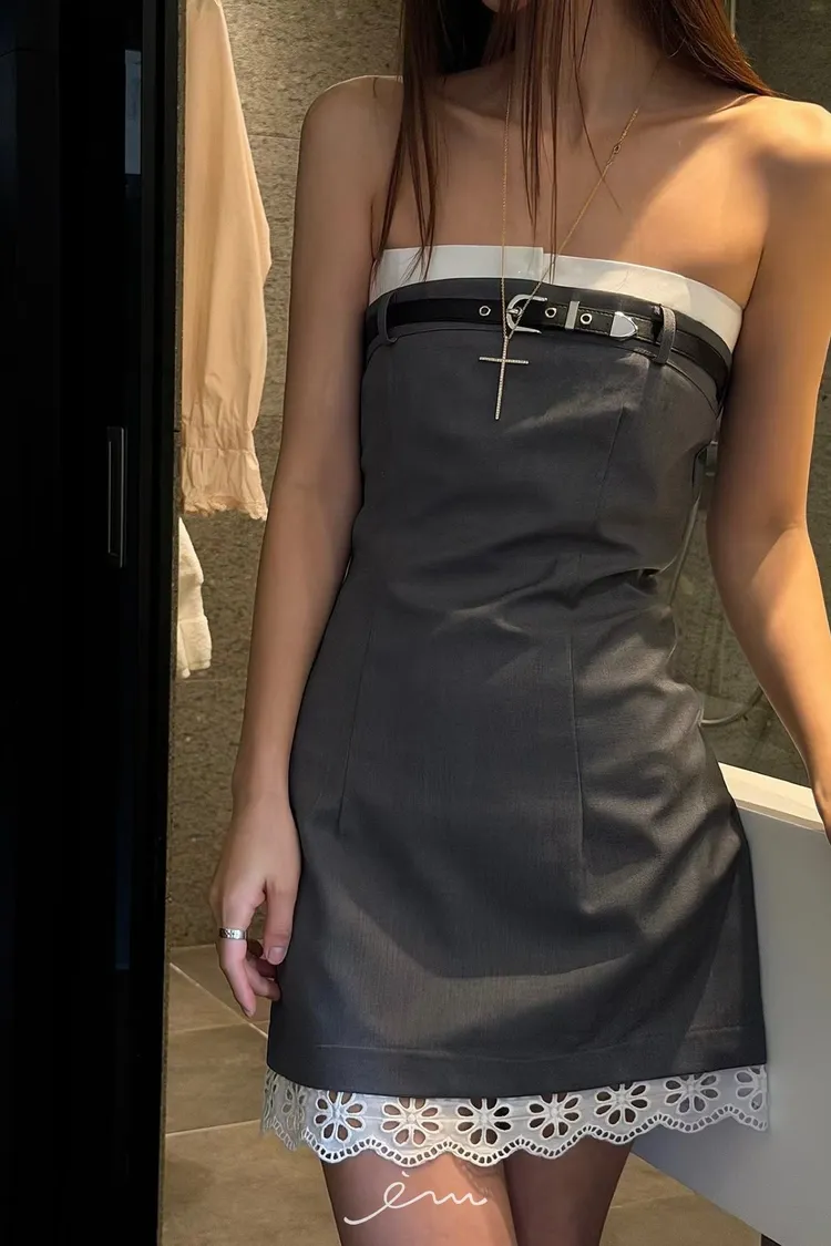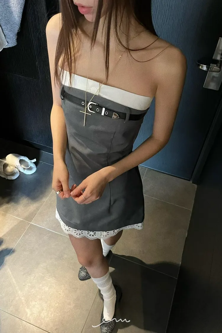 PU皮帶造型下布蕾平口短洋