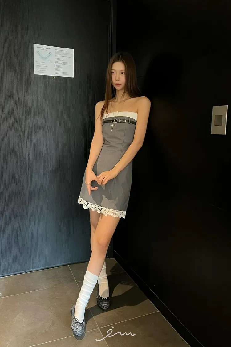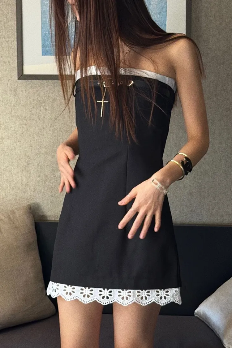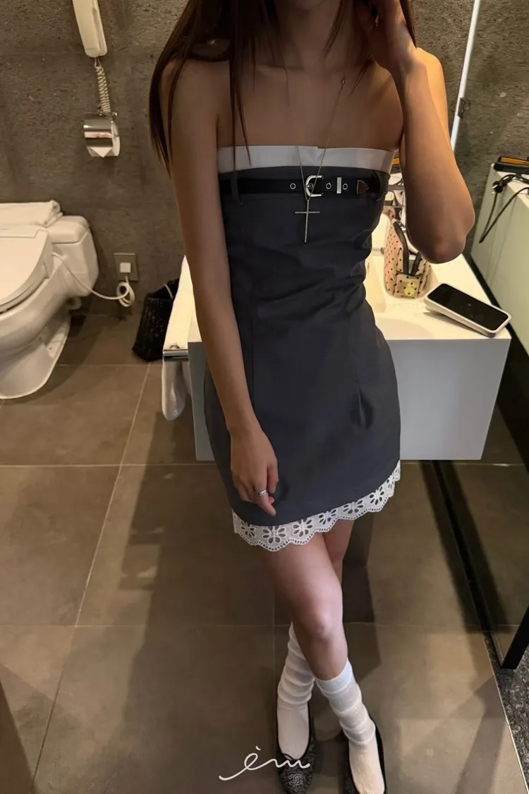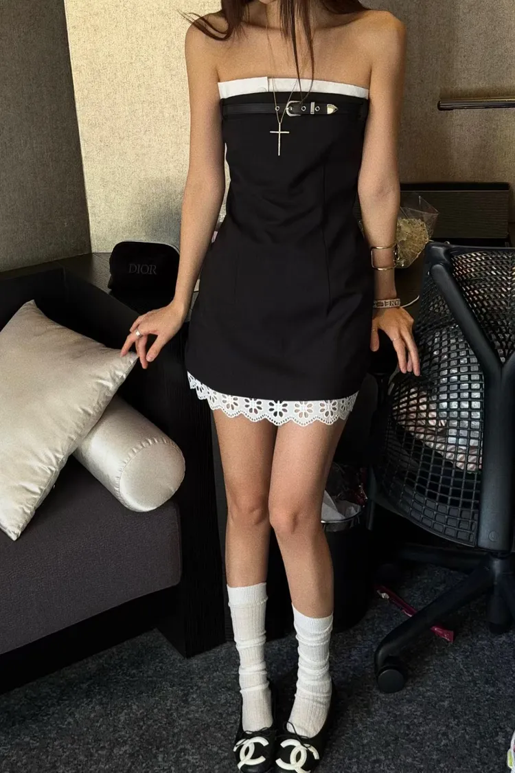 PU皮帶造型下布蕾平口短洋