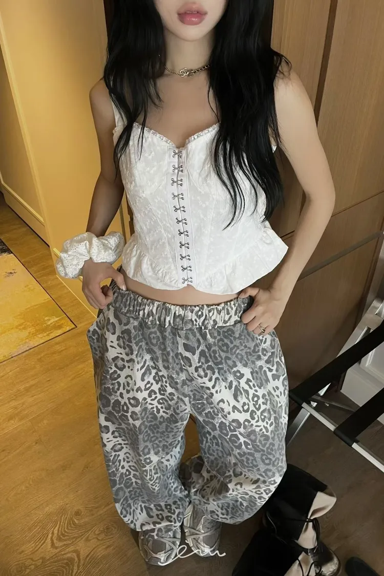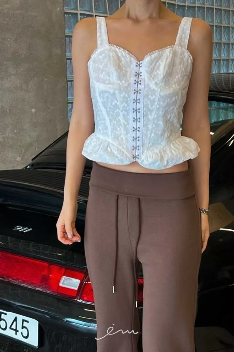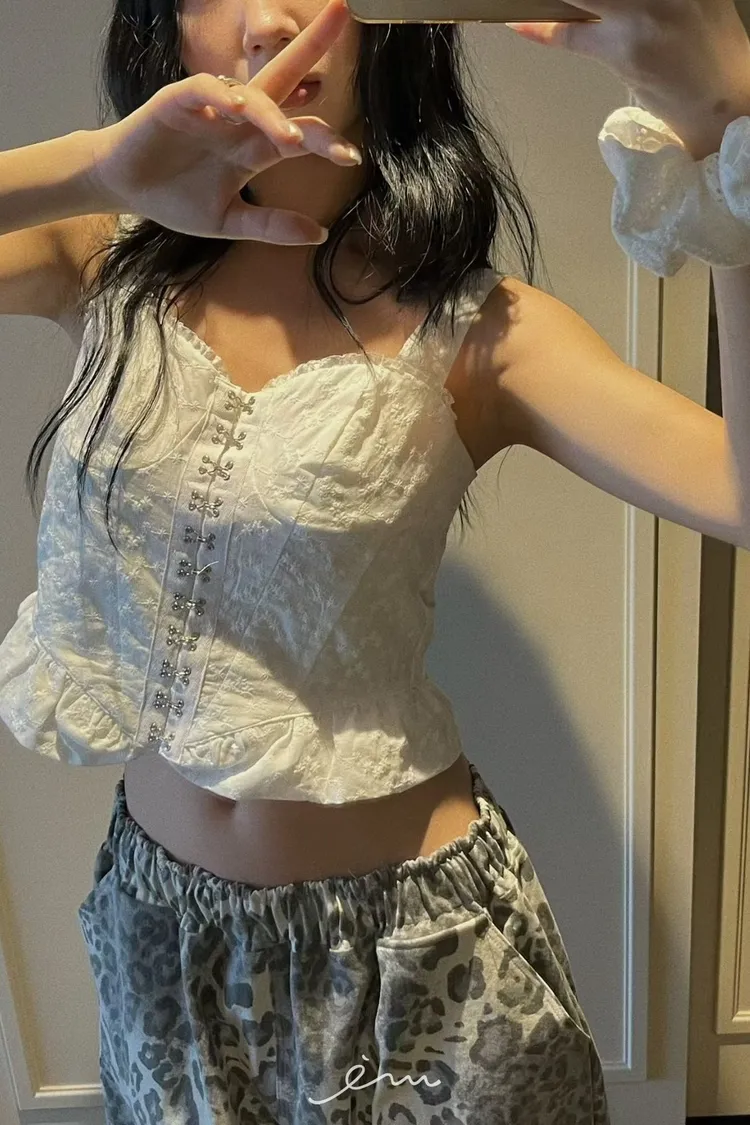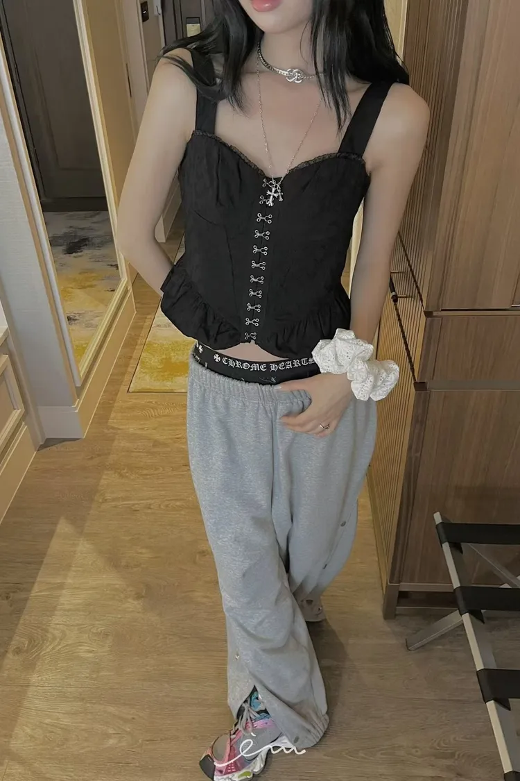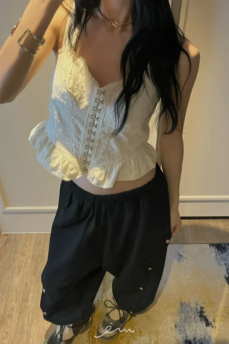 PU鈎釦寬肩帶布蕾背心