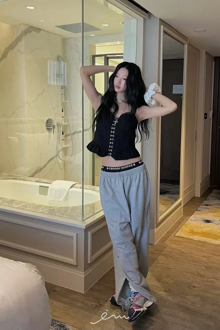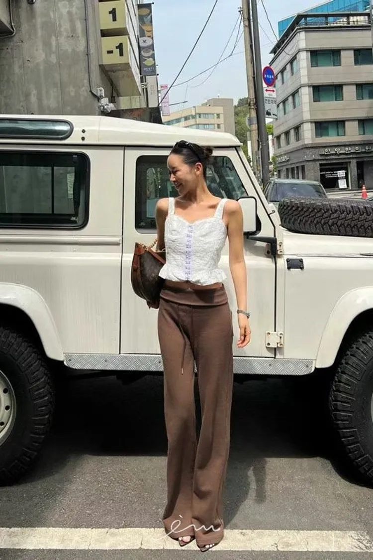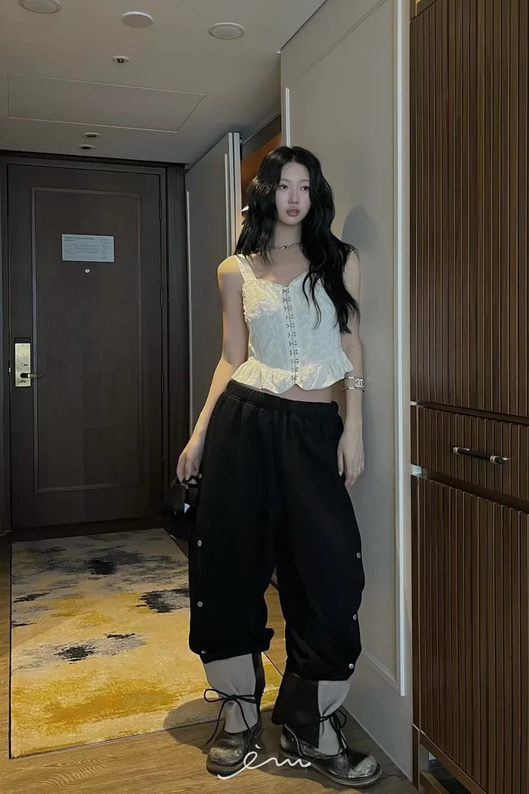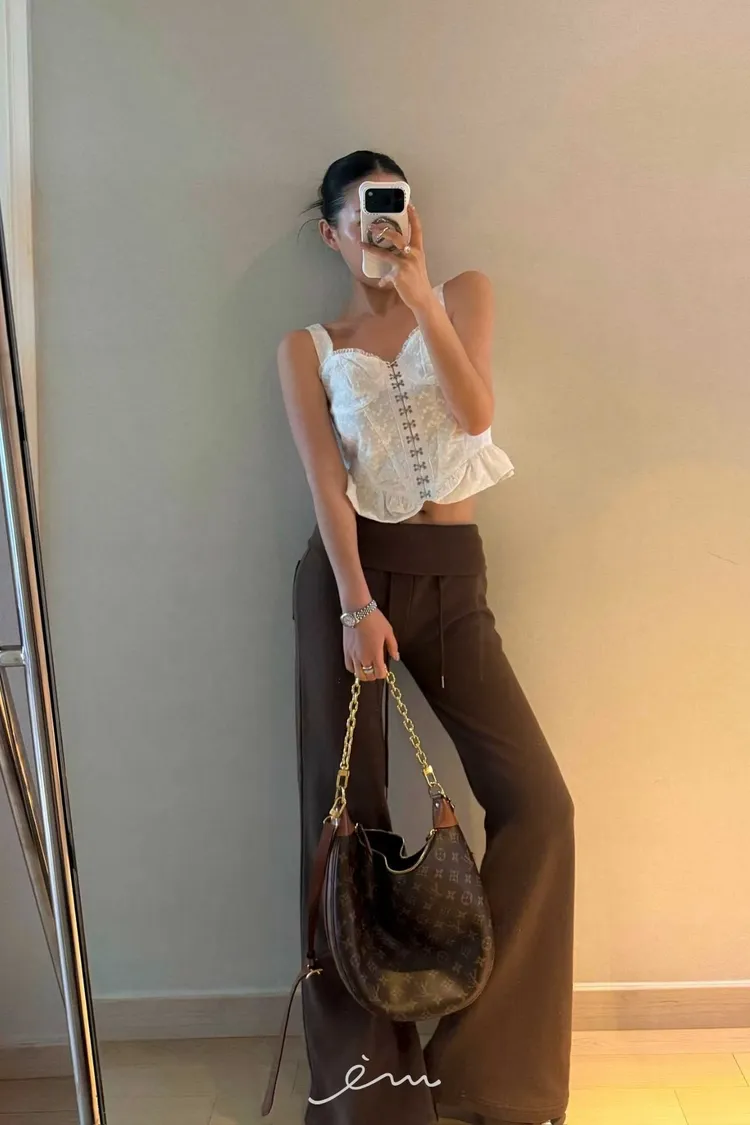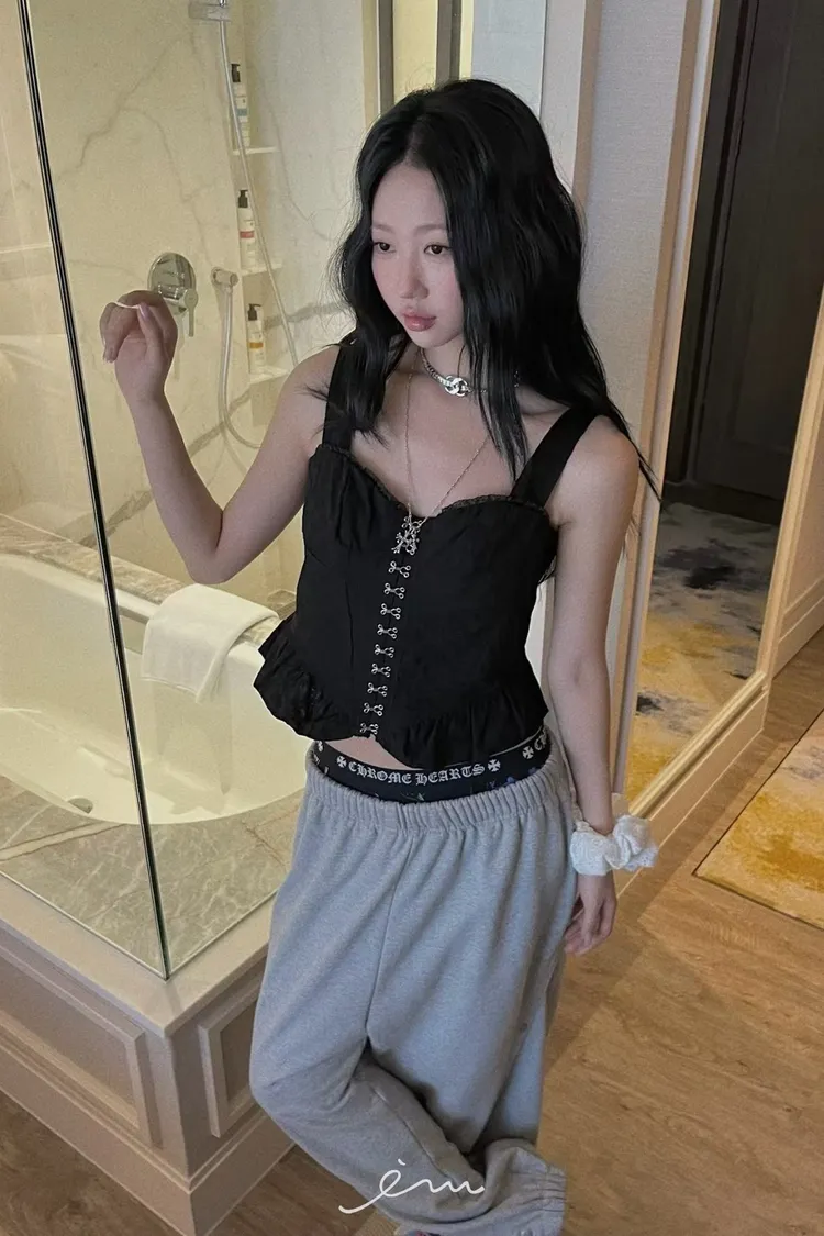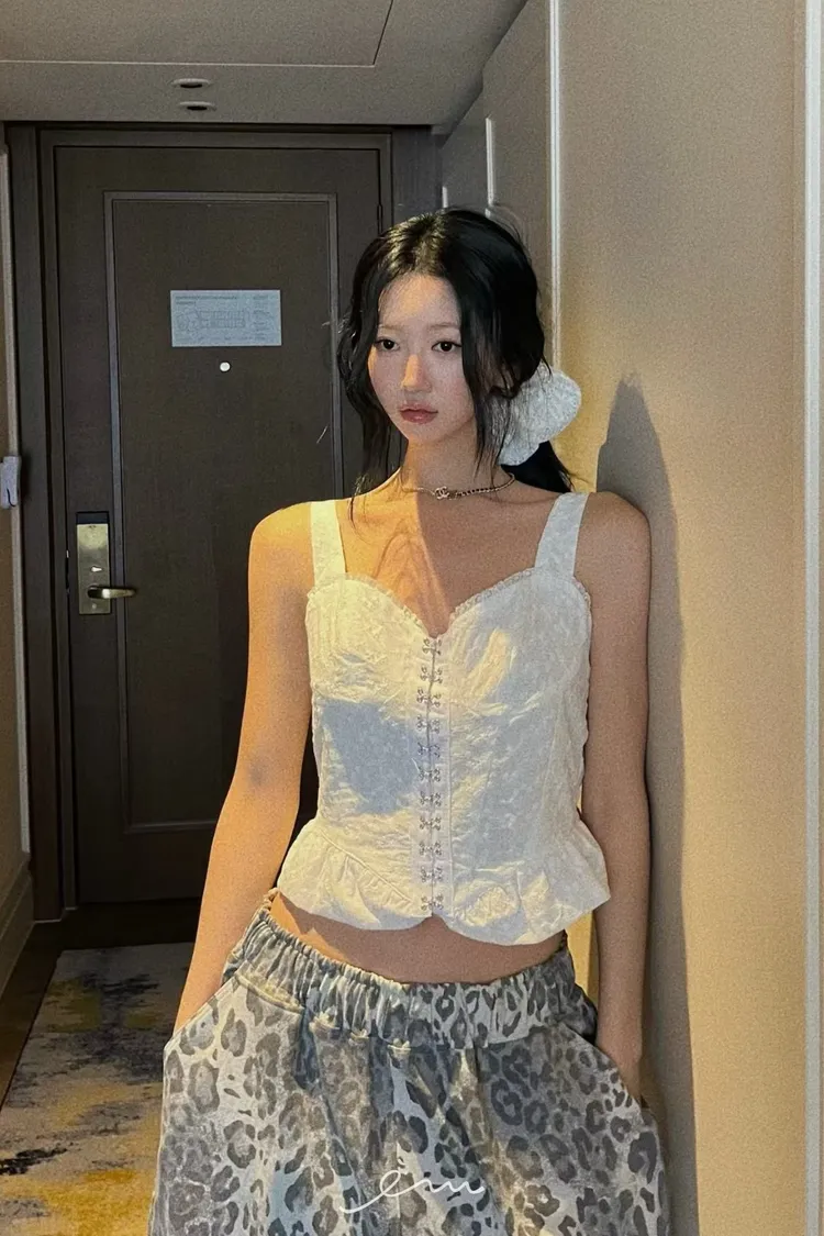 PU鈎釦寬肩帶布蕾背心
