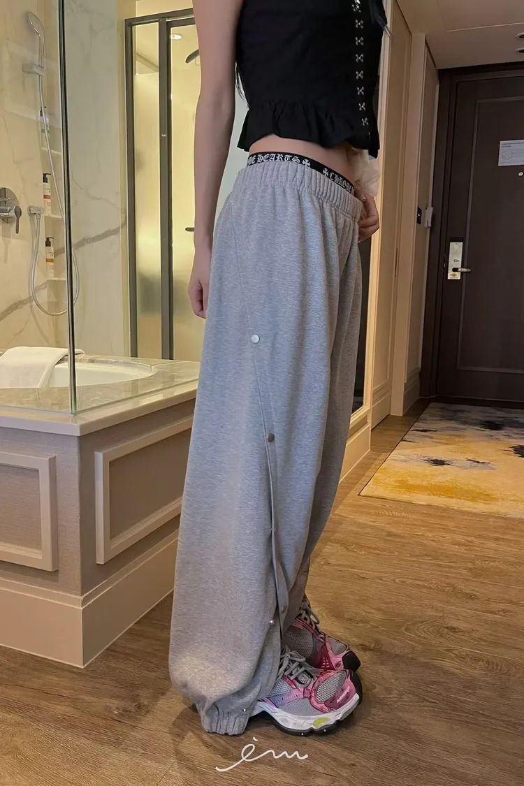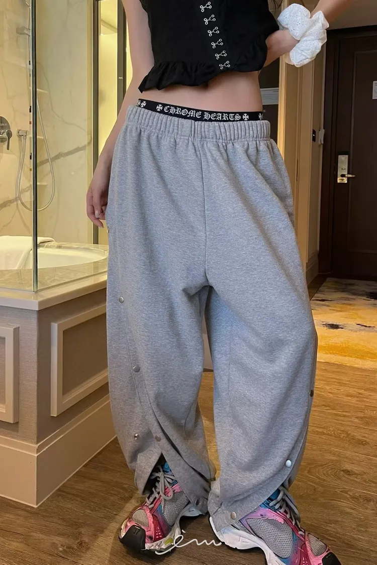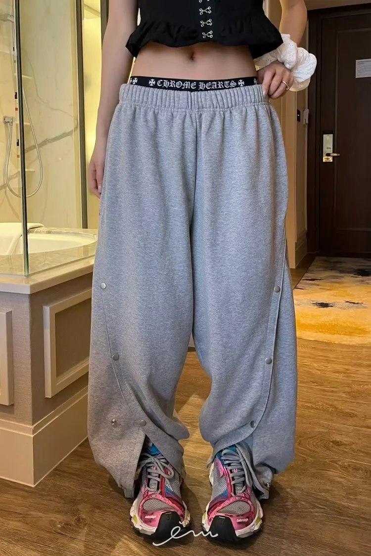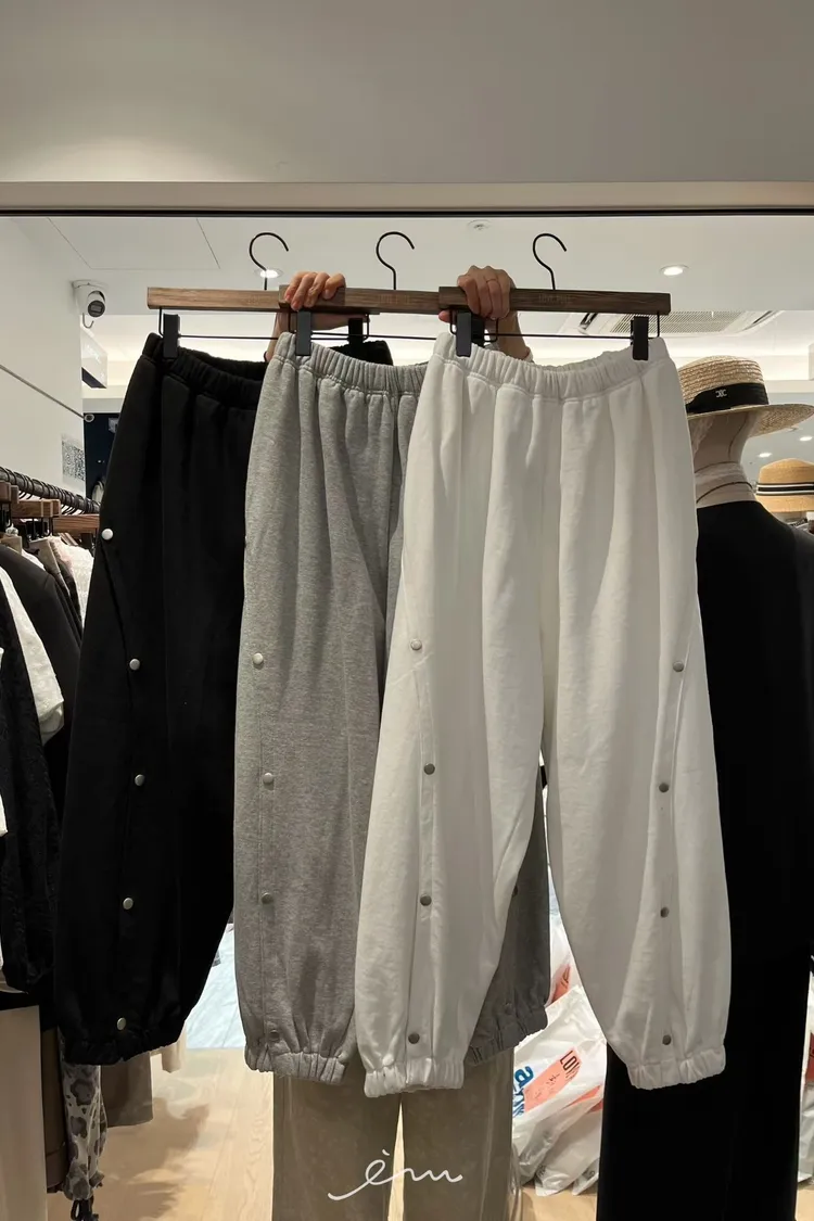 PU壓釦造型鬆緊長褲