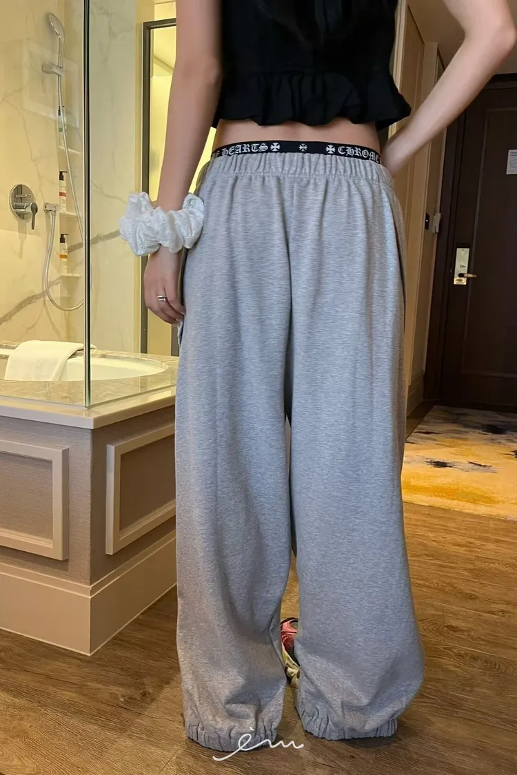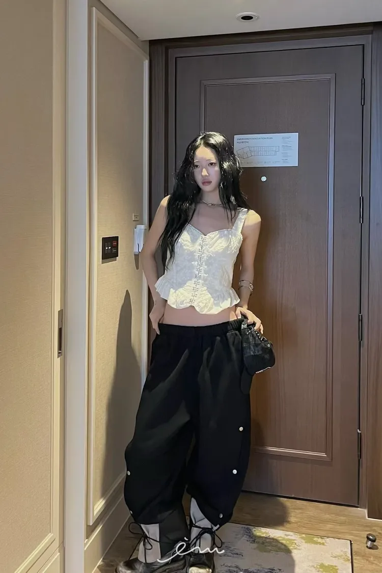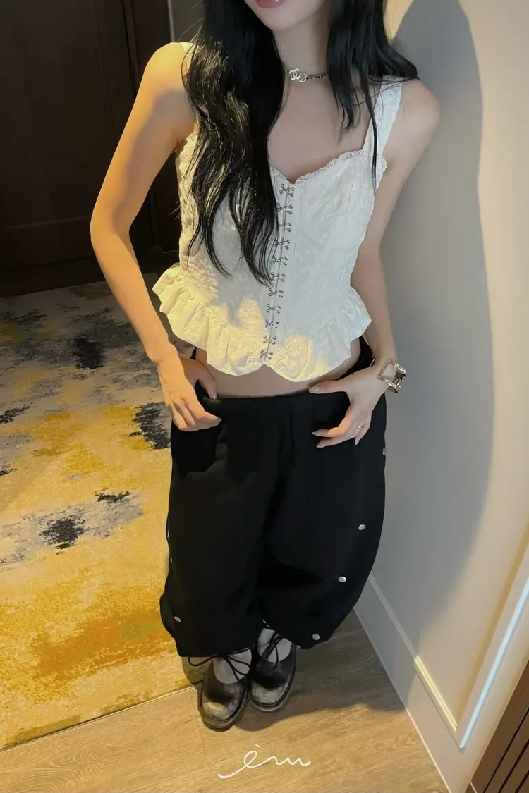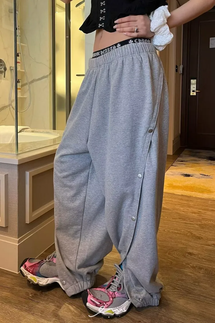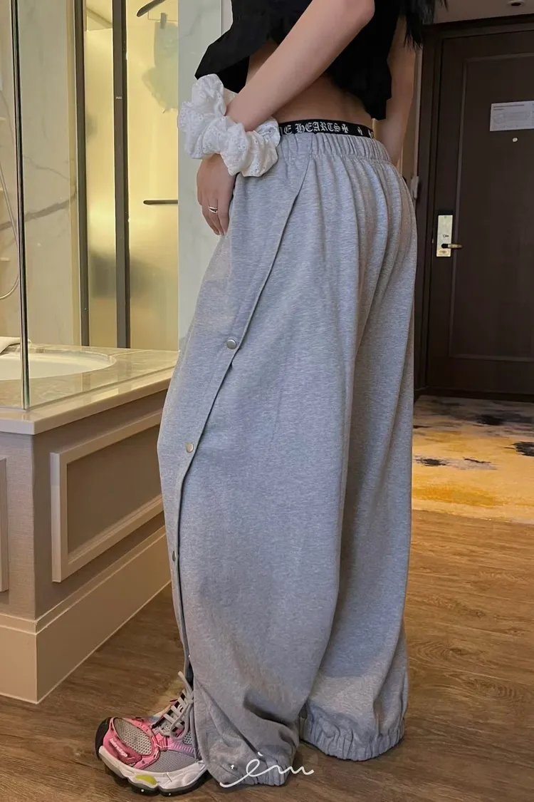 PU壓釦造型鬆緊長褲