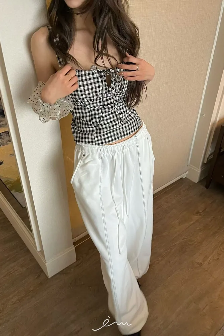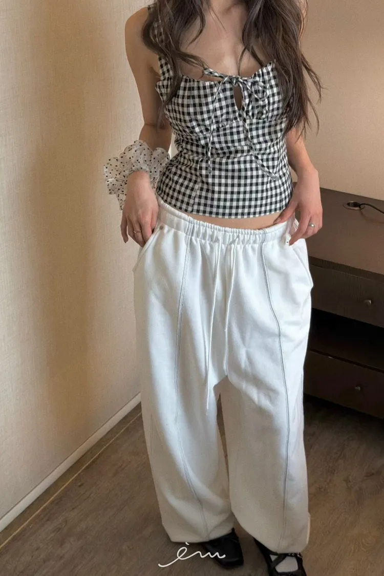 PU中車線抽繩縮腳褲