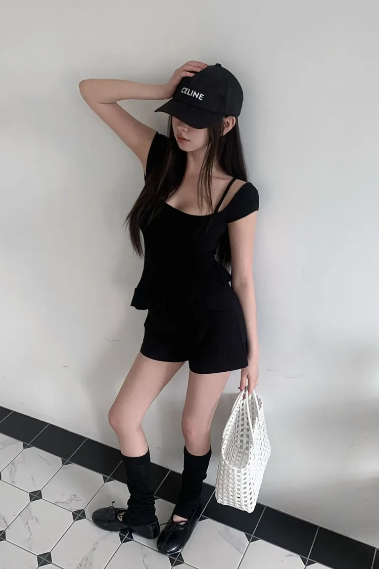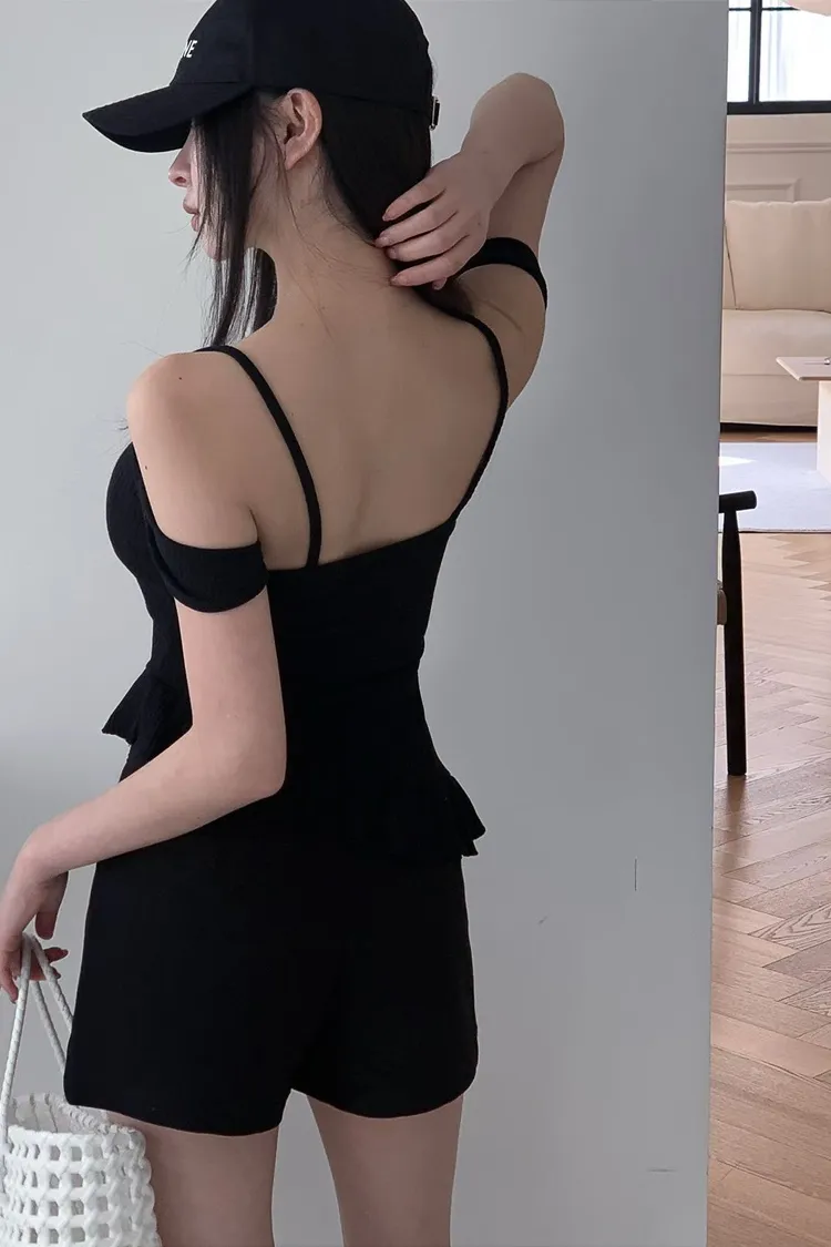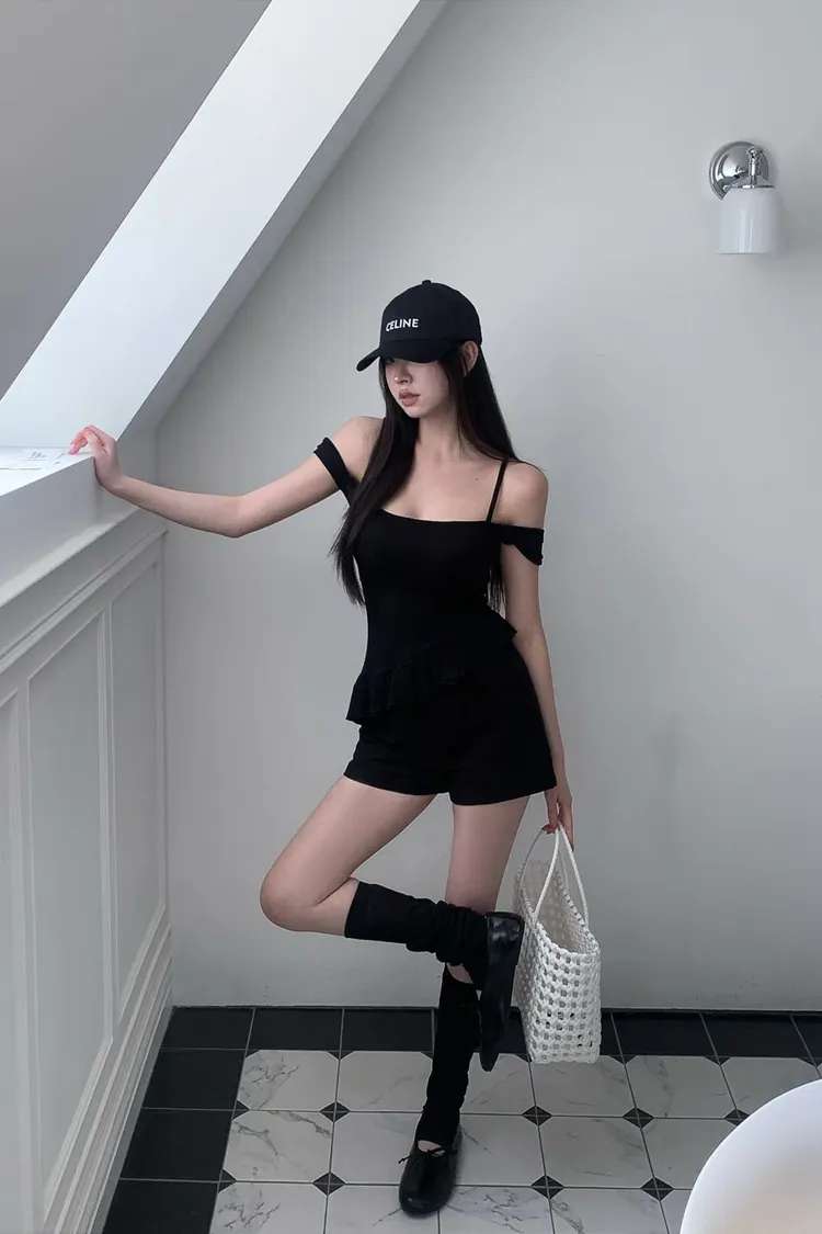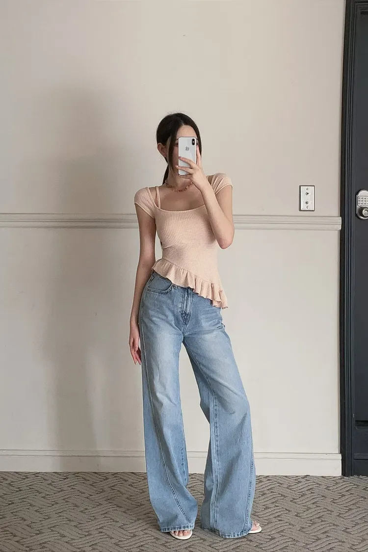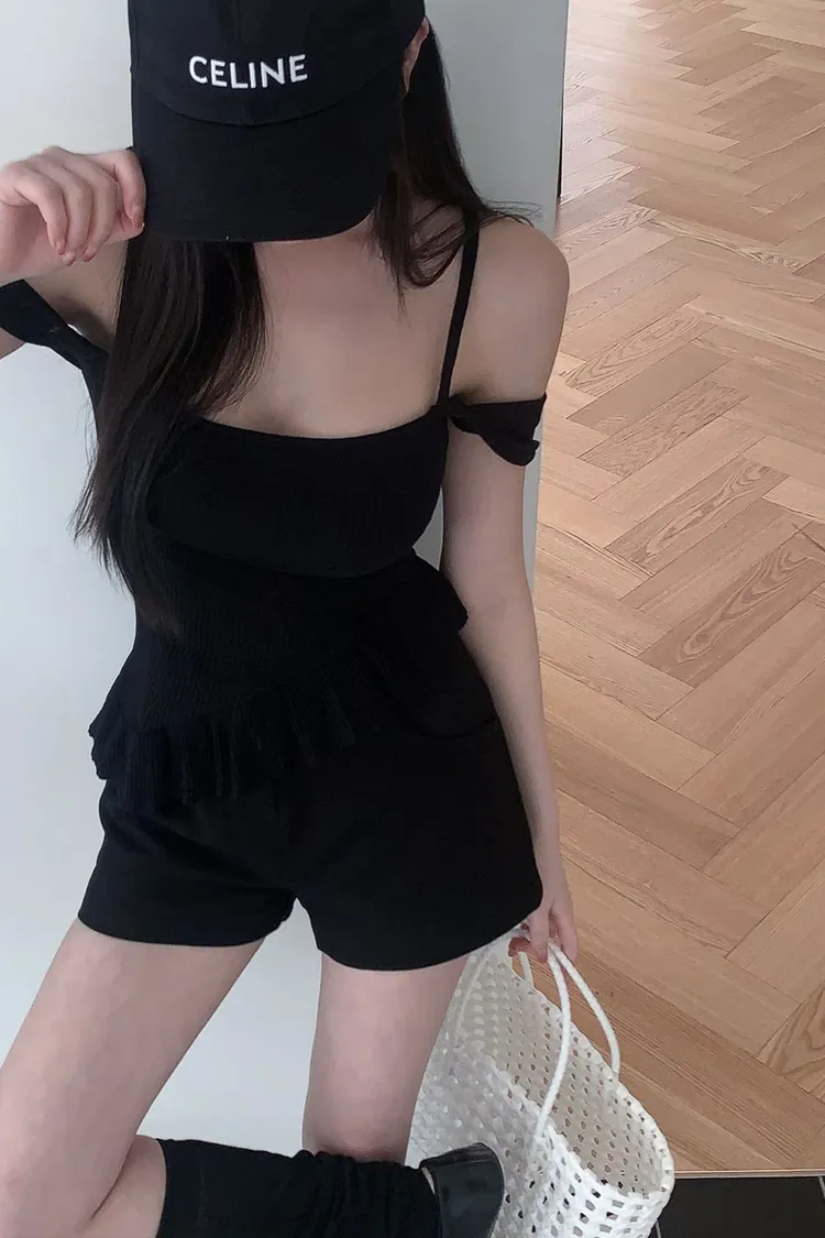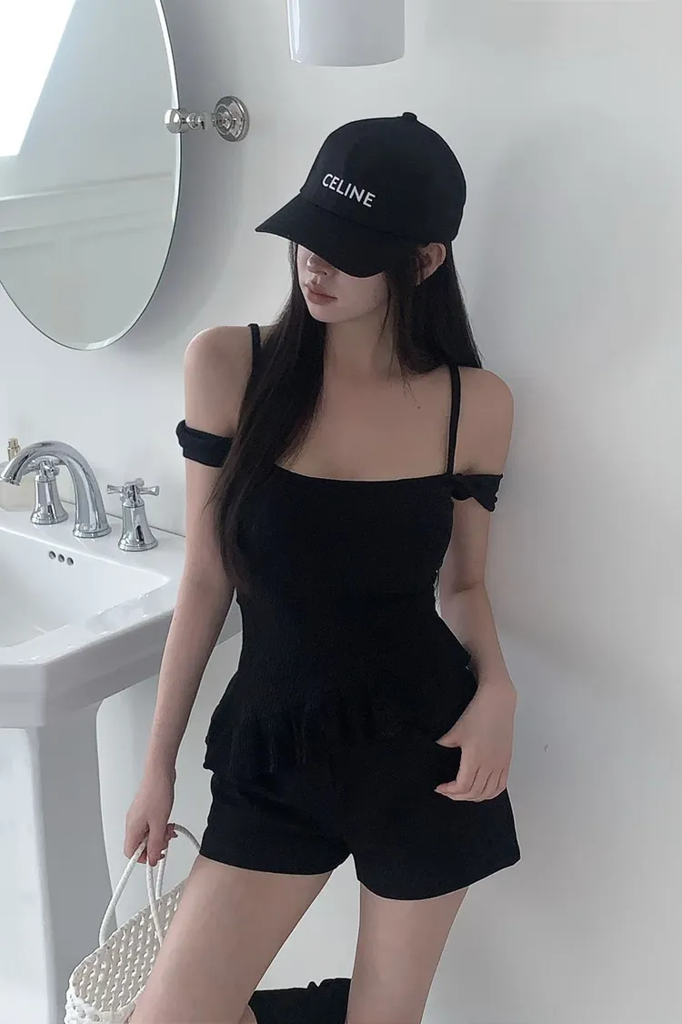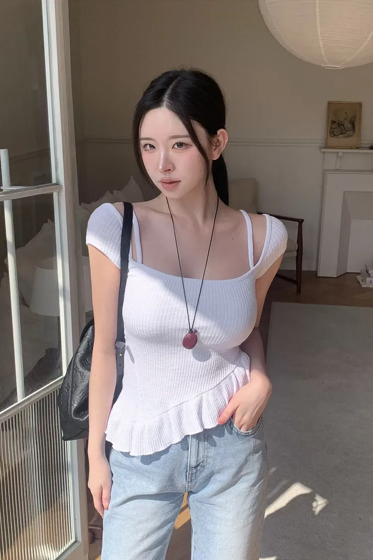 MON下荷葉肩帶短袖有BRA上衣(胸墊可拆)