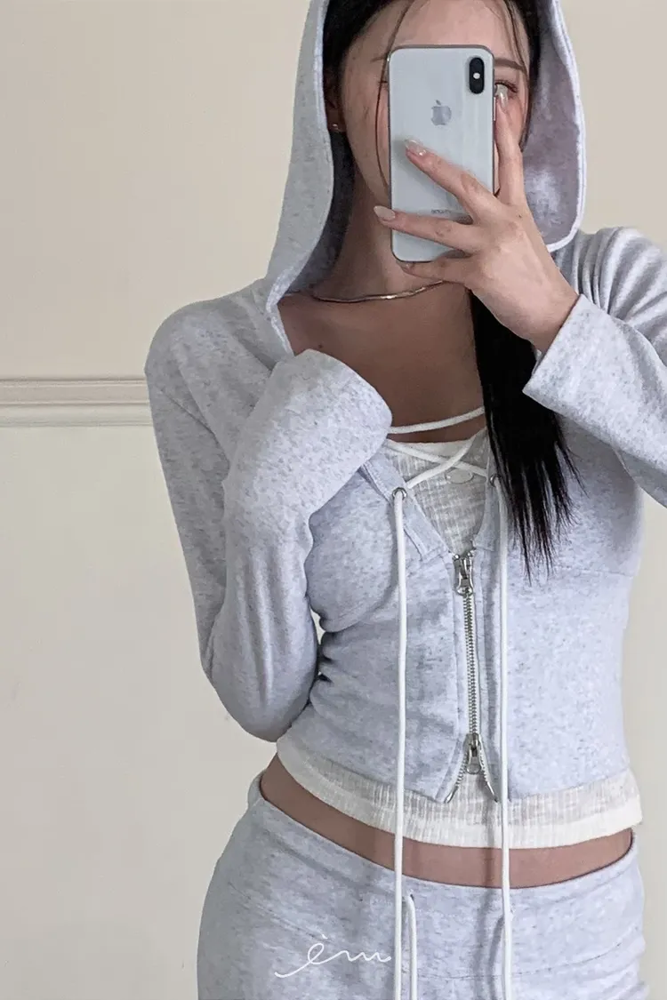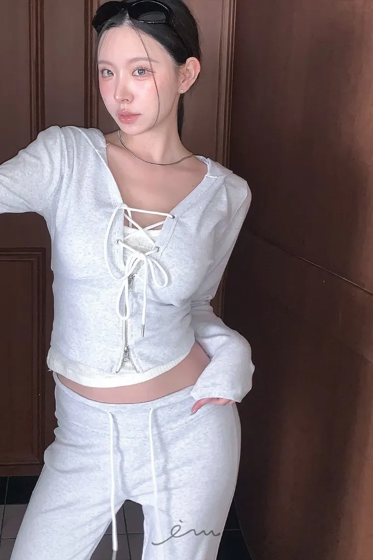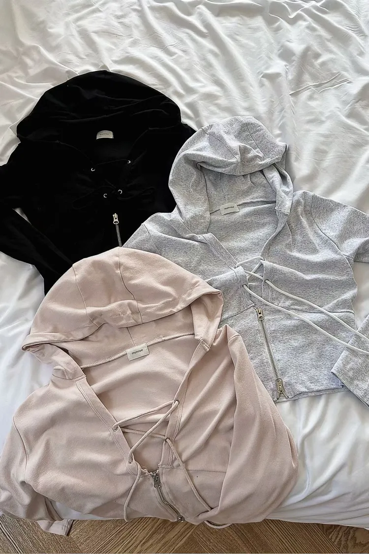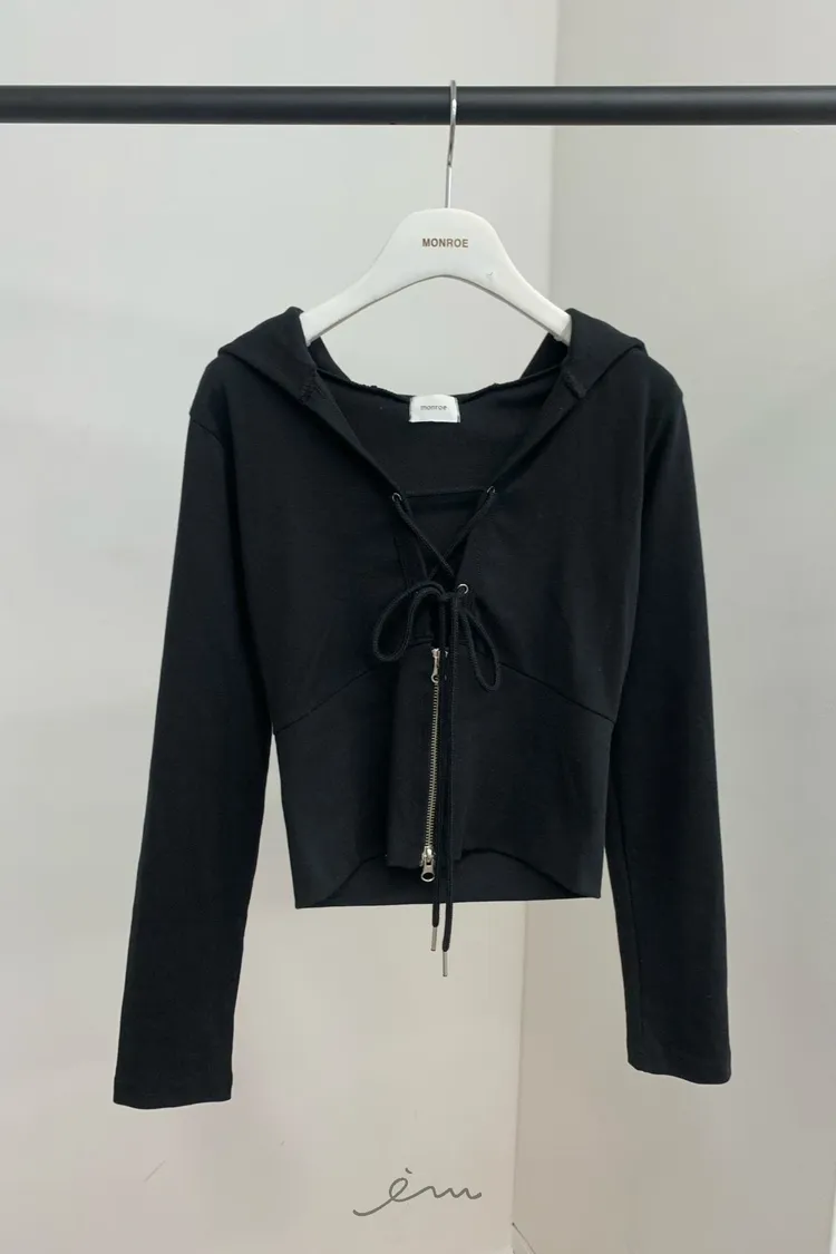 MON交叉綁帶拉鍊連帽衣