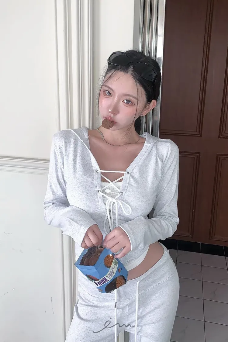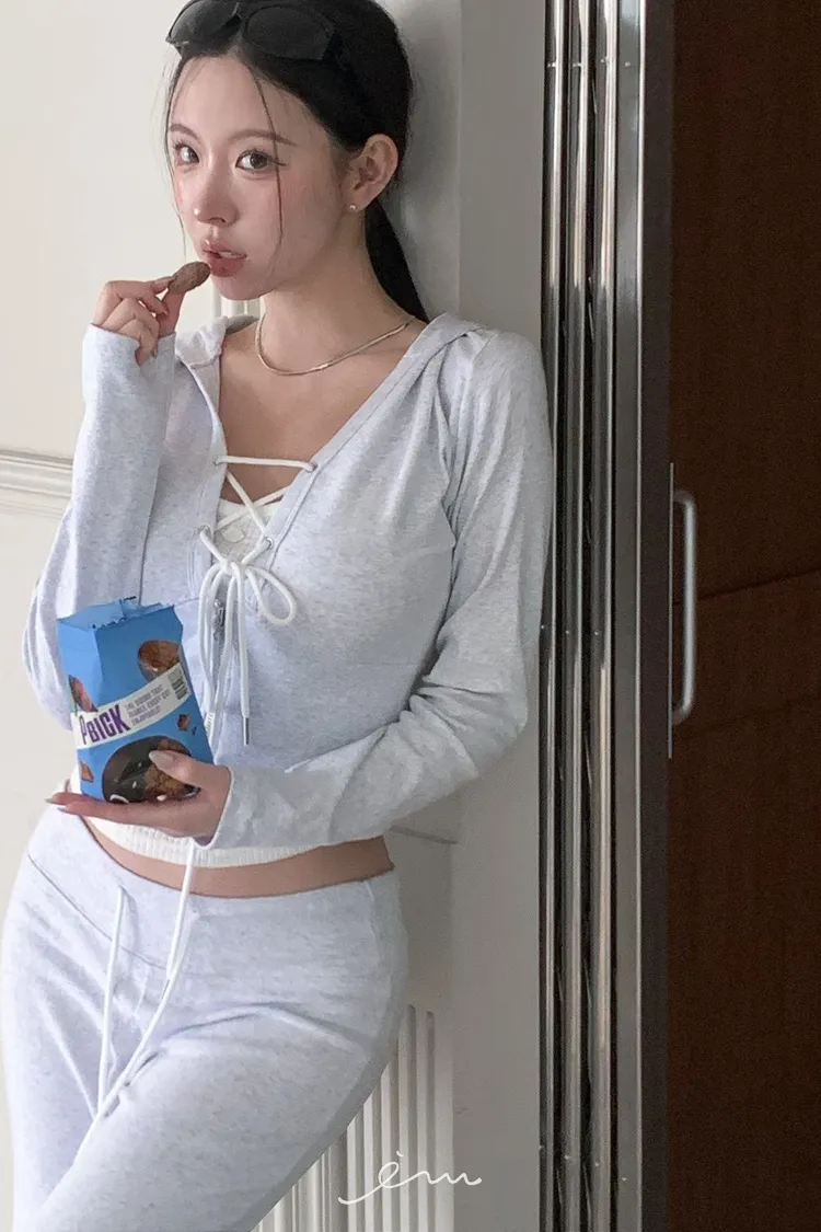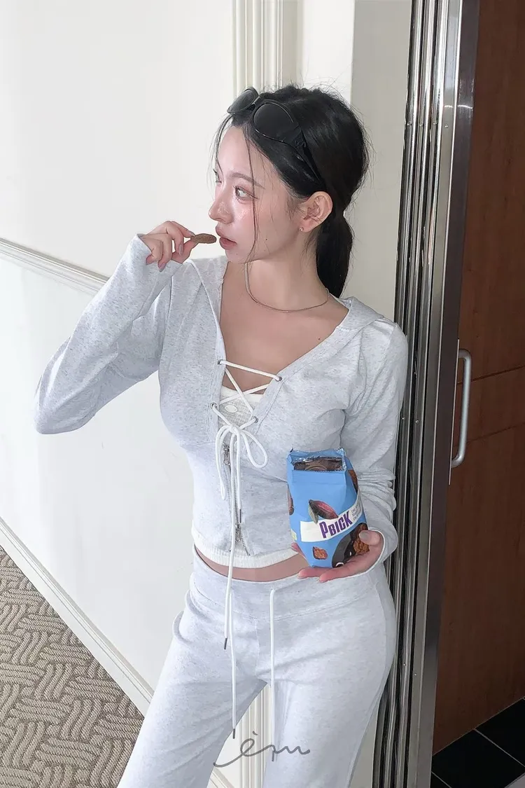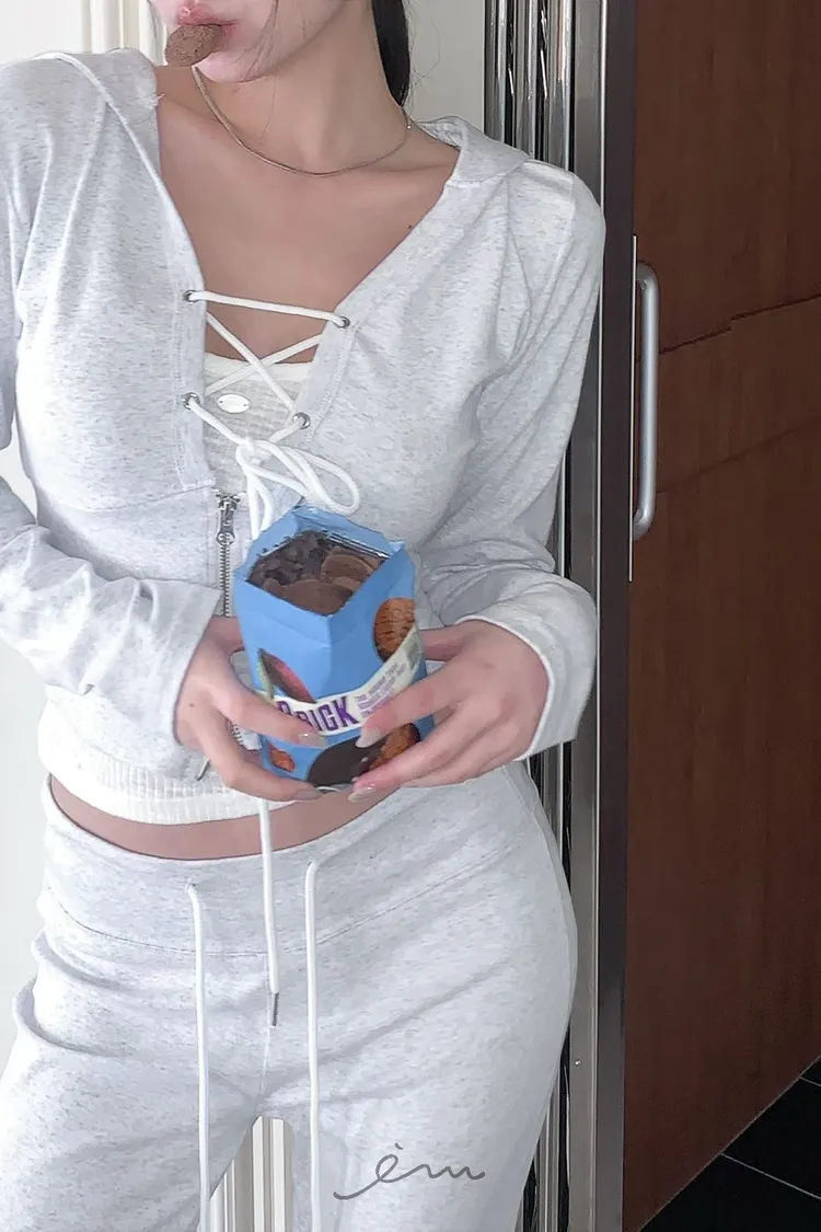 MON交叉綁帶拉鍊連帽衣