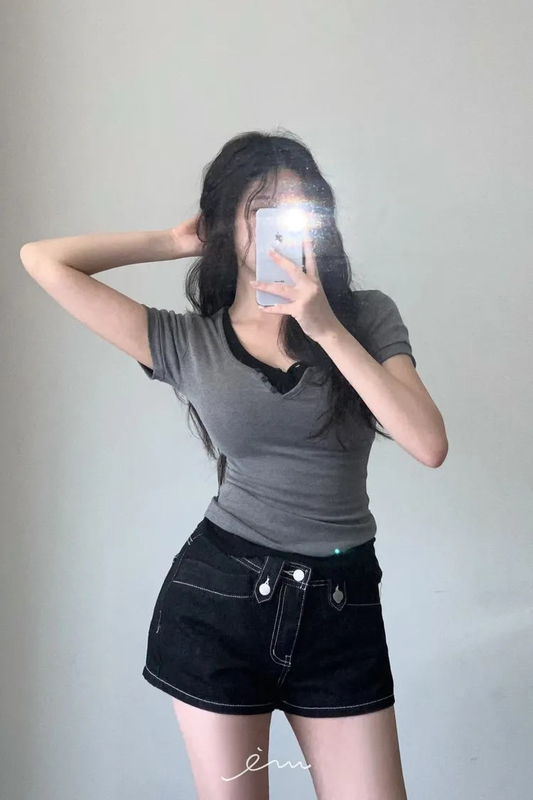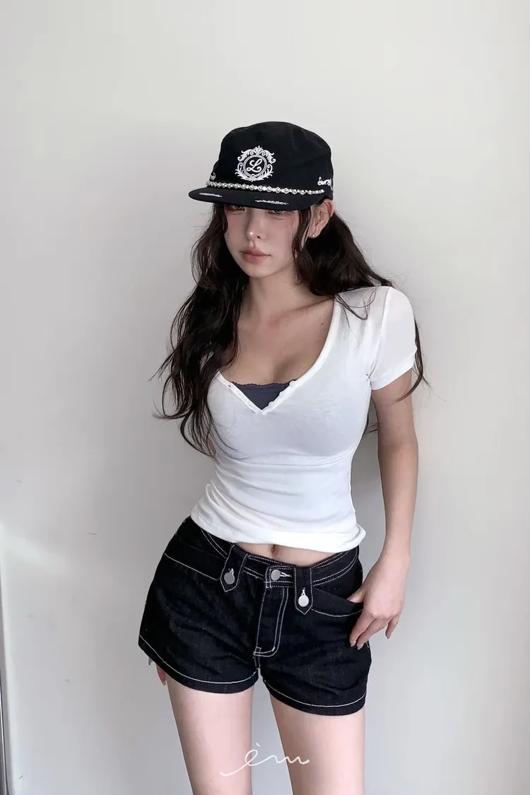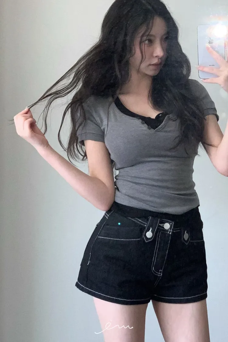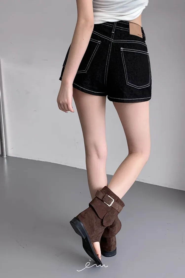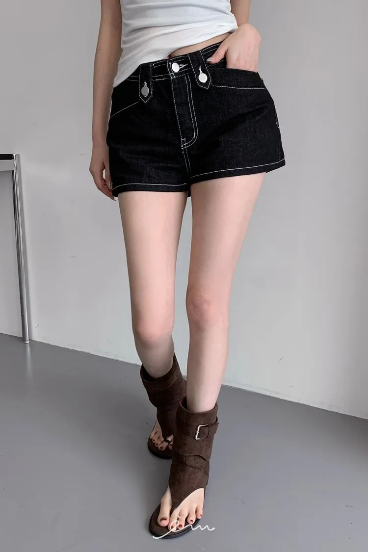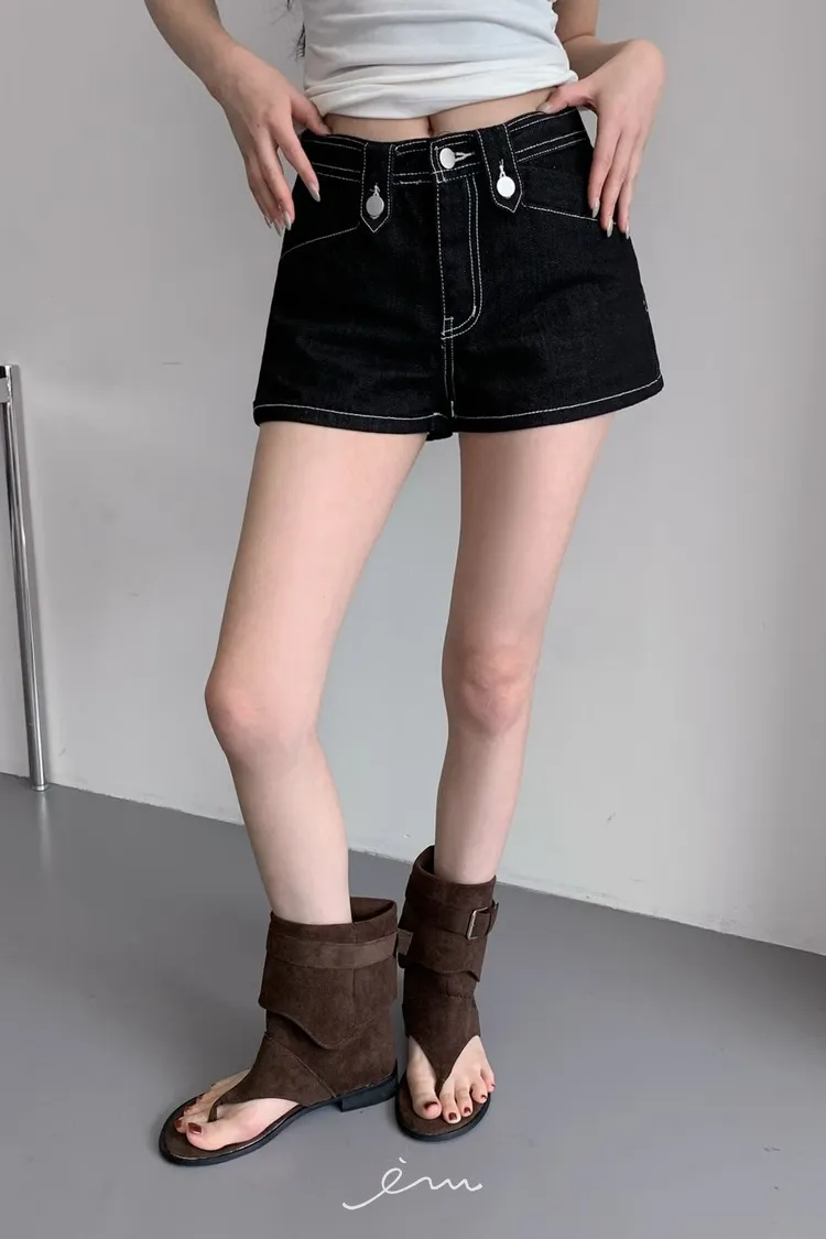 MON三釦造型車線短褲
