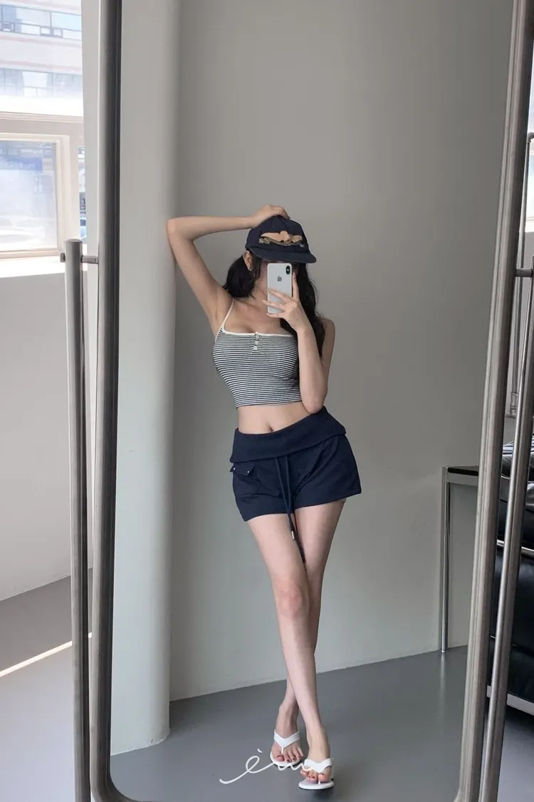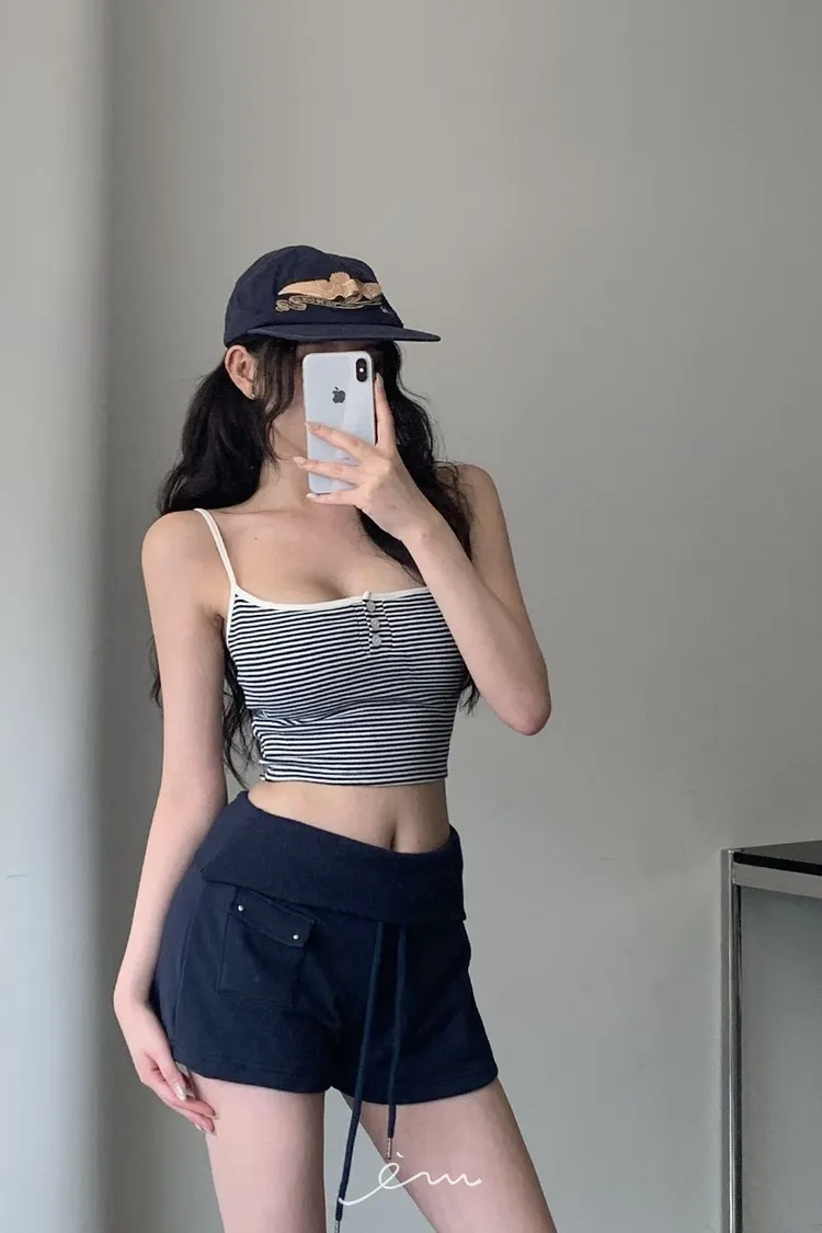 MON三釦條紋細肩bra背心