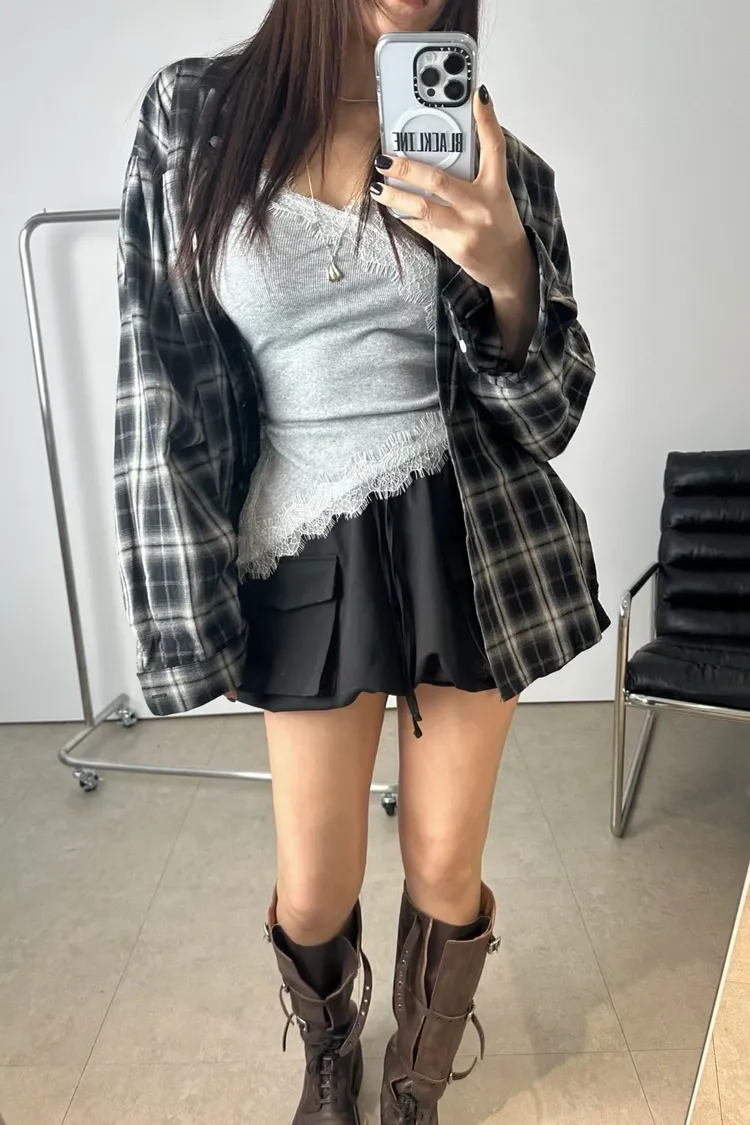 蓋式雙口袋抽繩雲朵褲裙