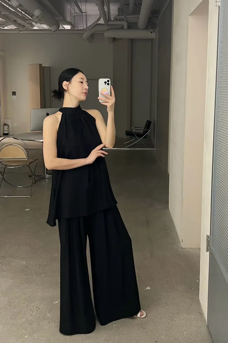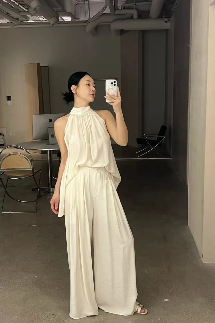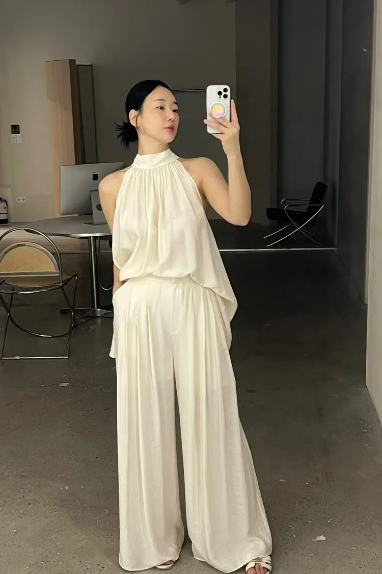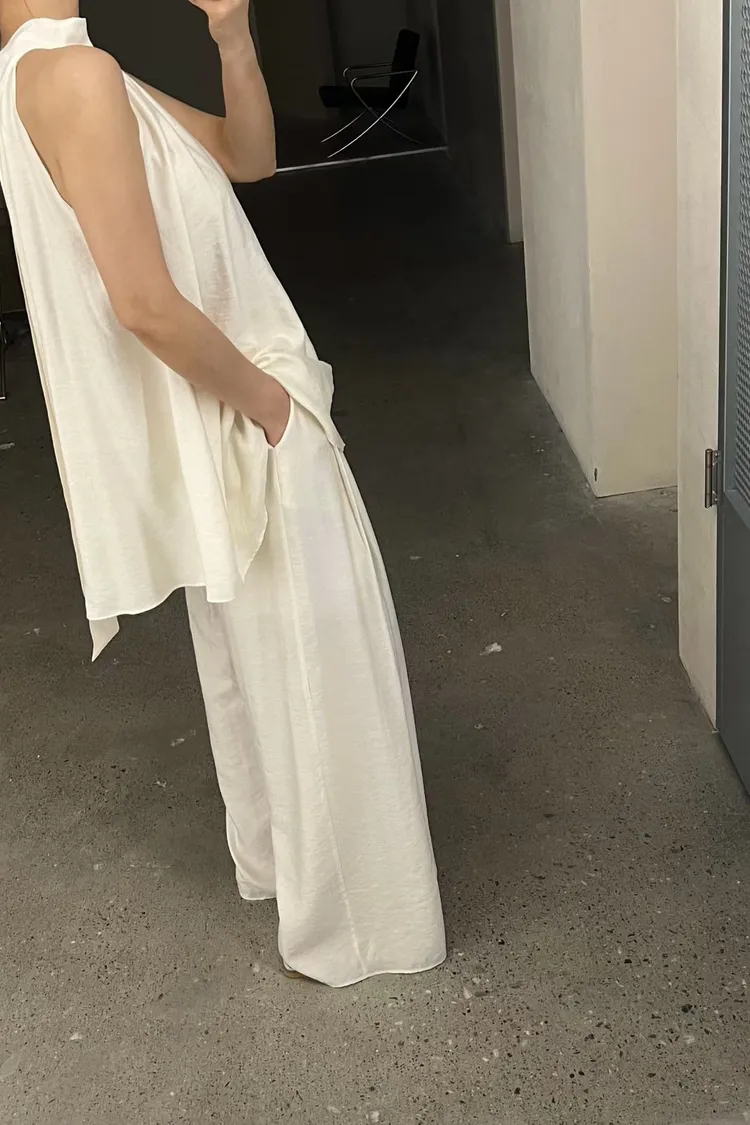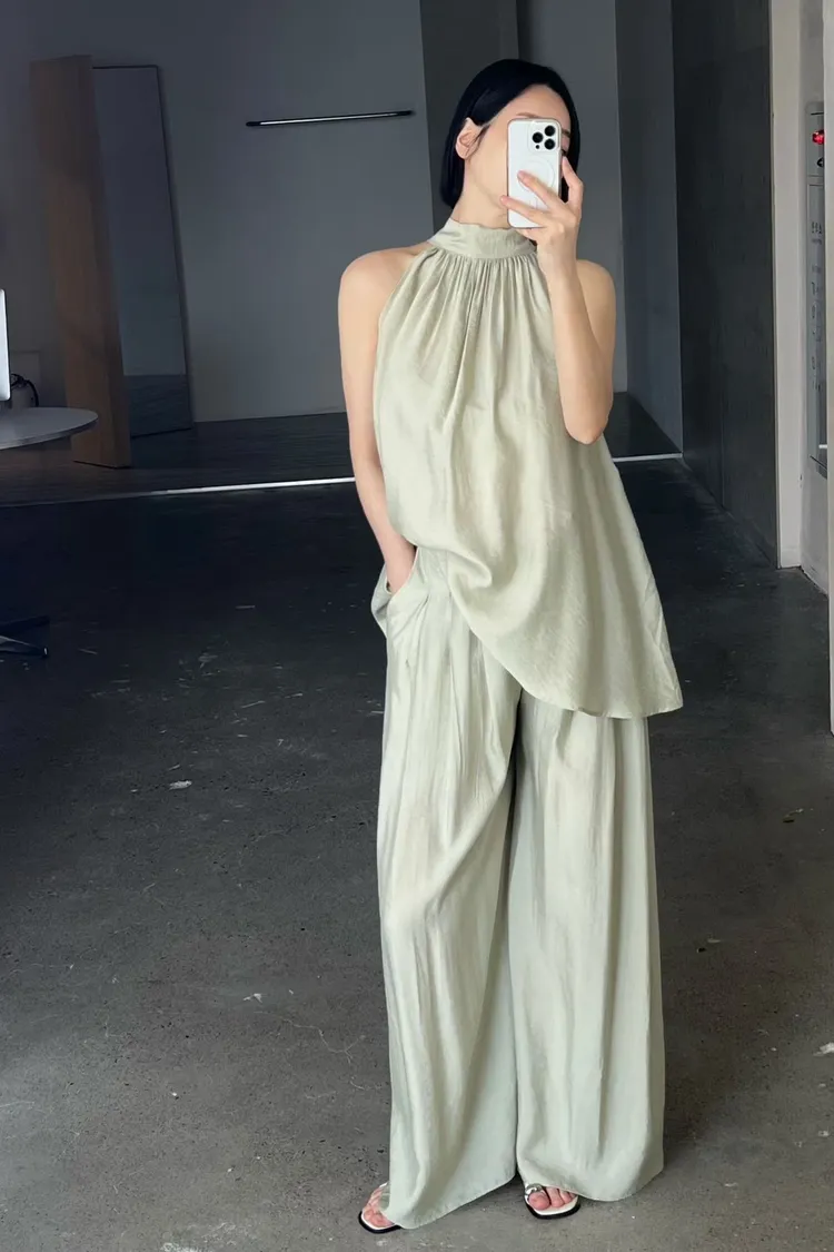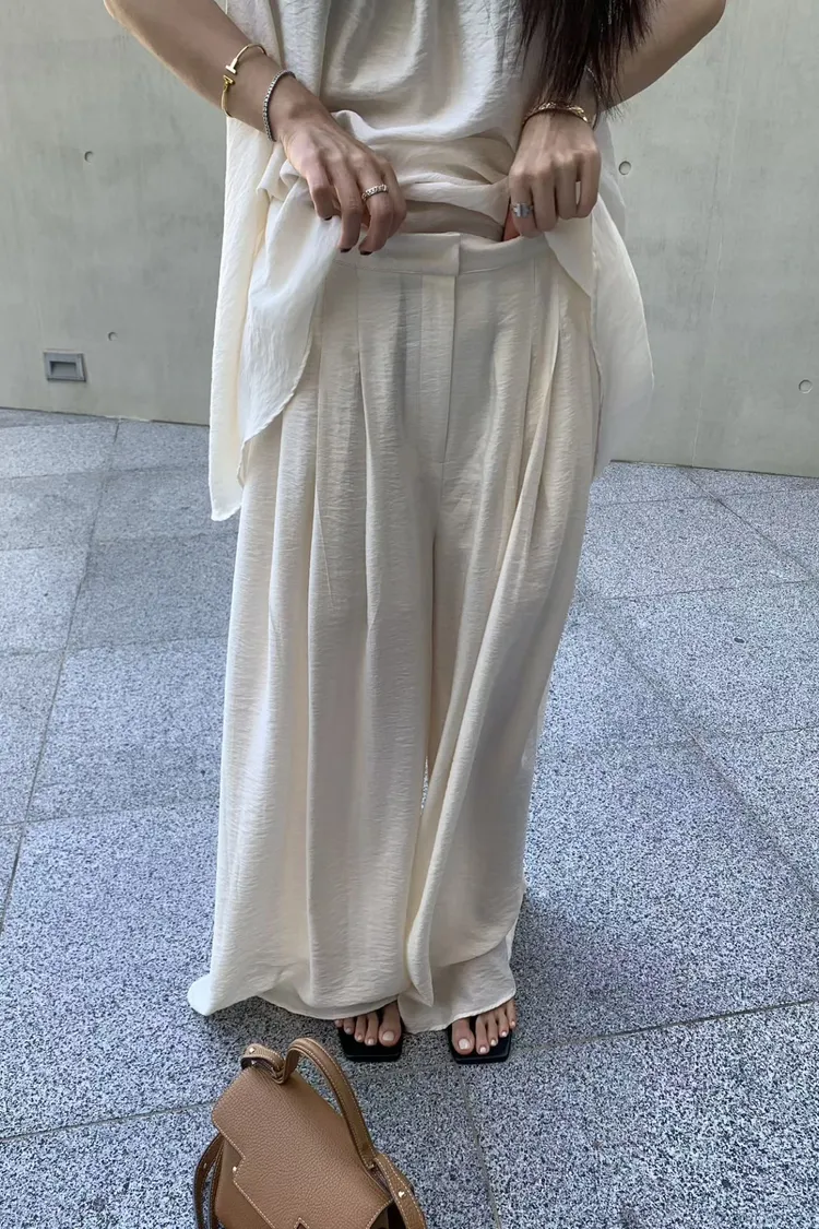 隱藏釦壓摺長褲