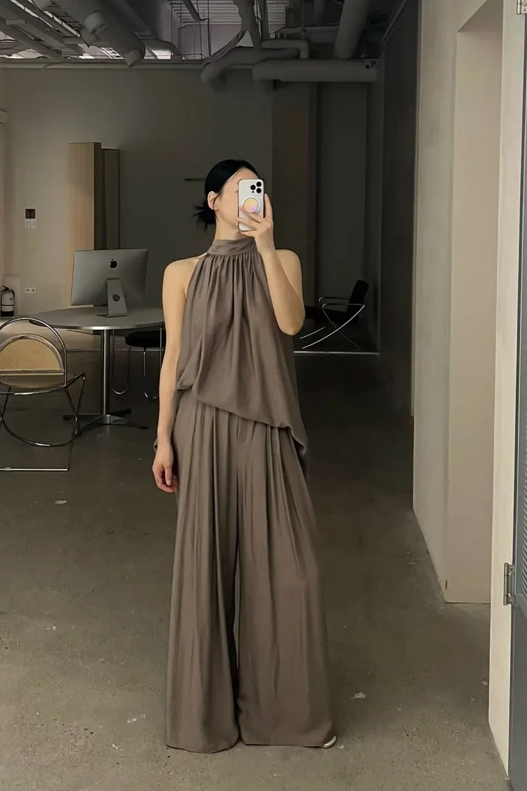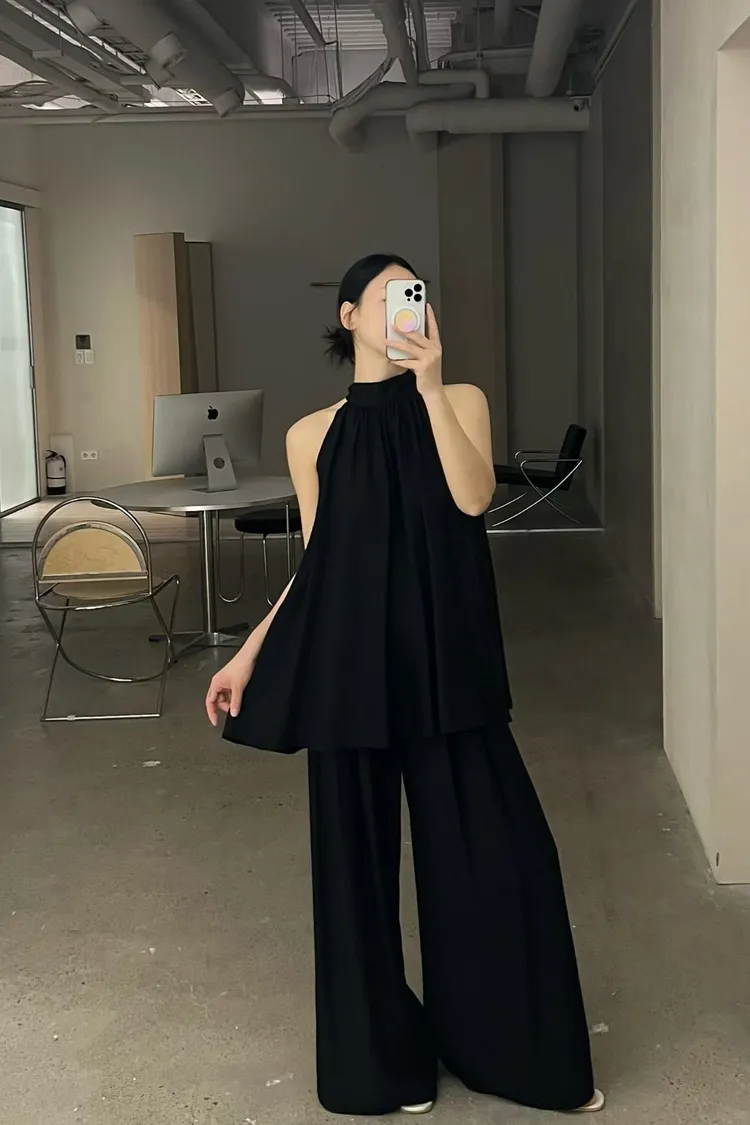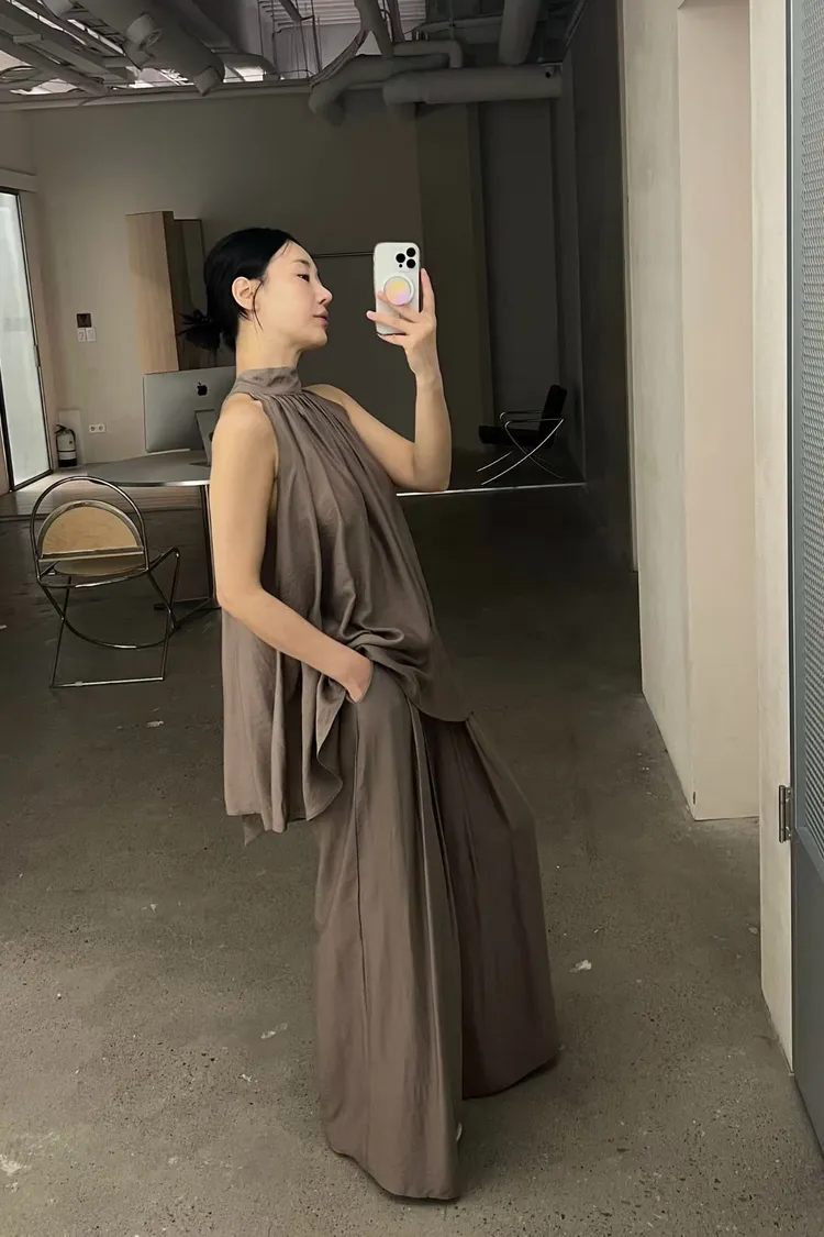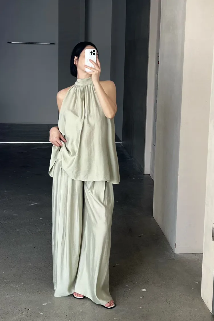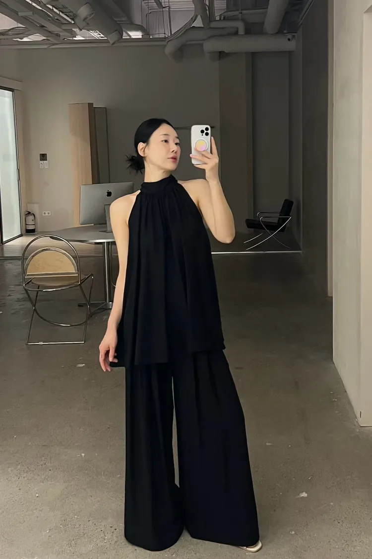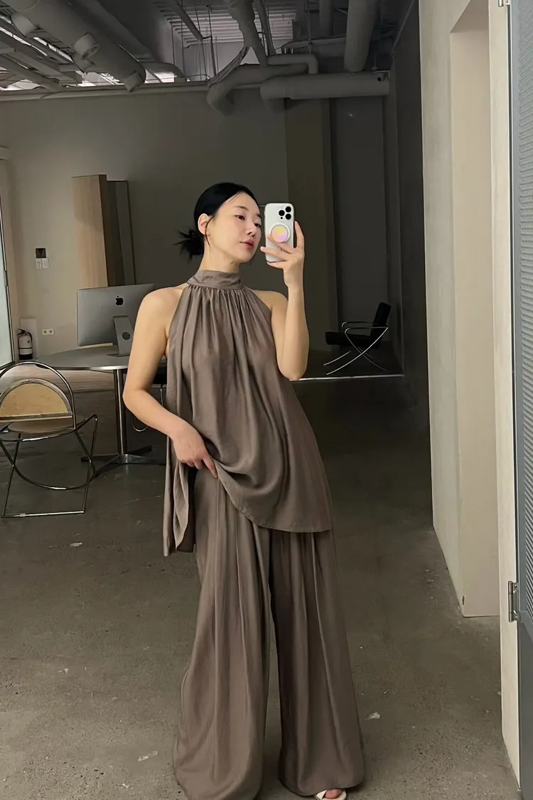 隱藏釦壓摺長褲