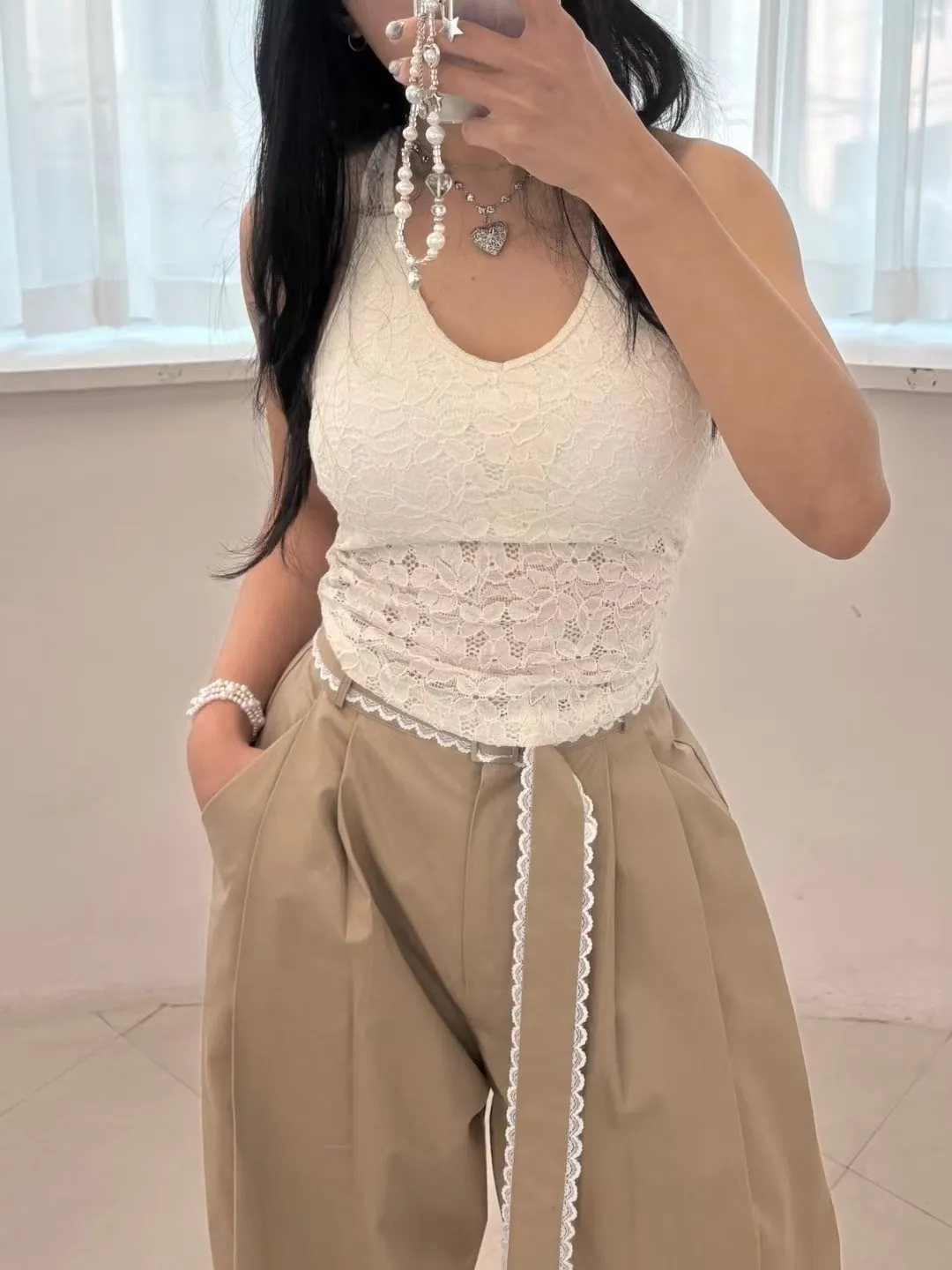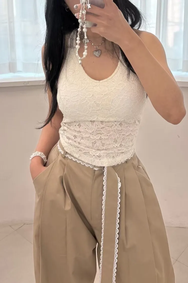 綁脖蕾絲罩杯背心(罩杯可拆)