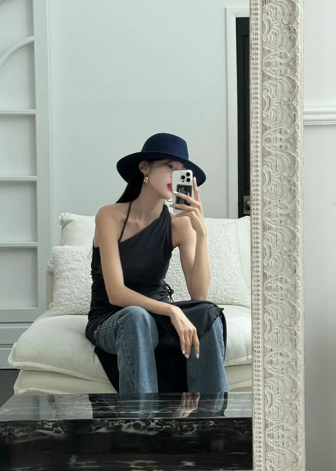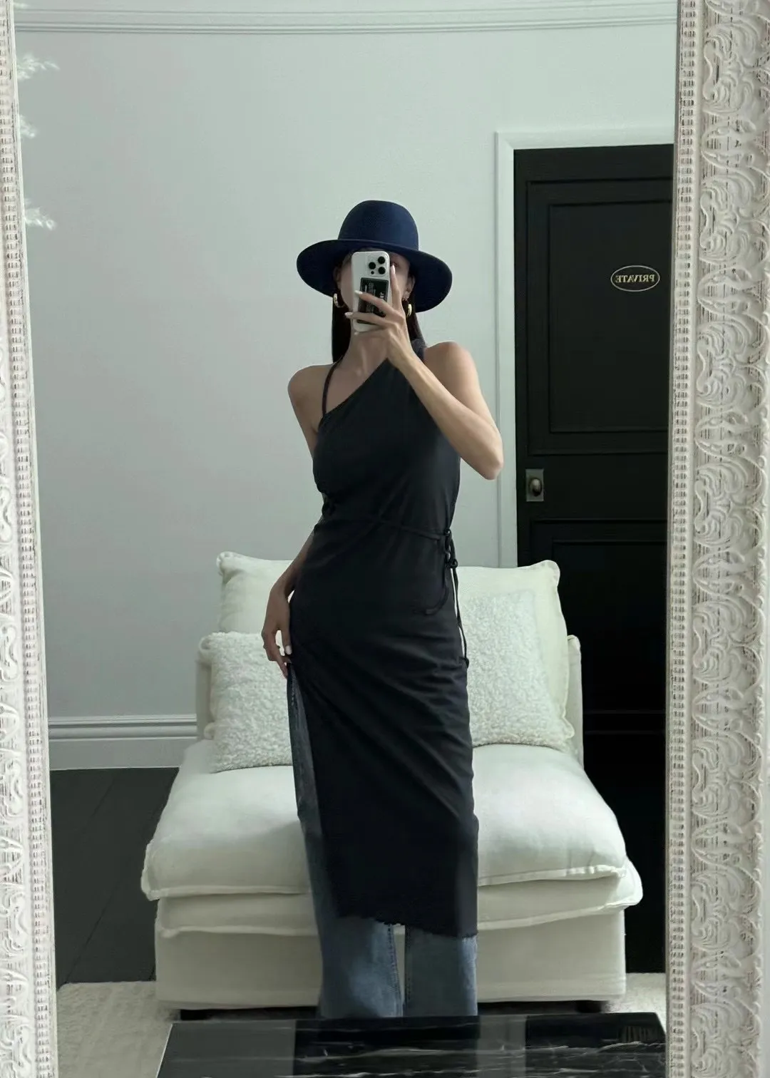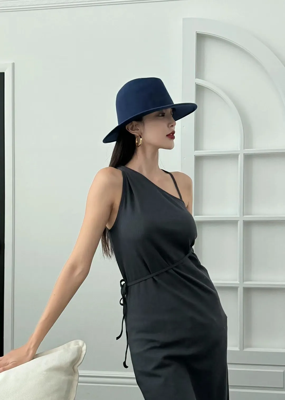 斜邊領單邊連身長洋