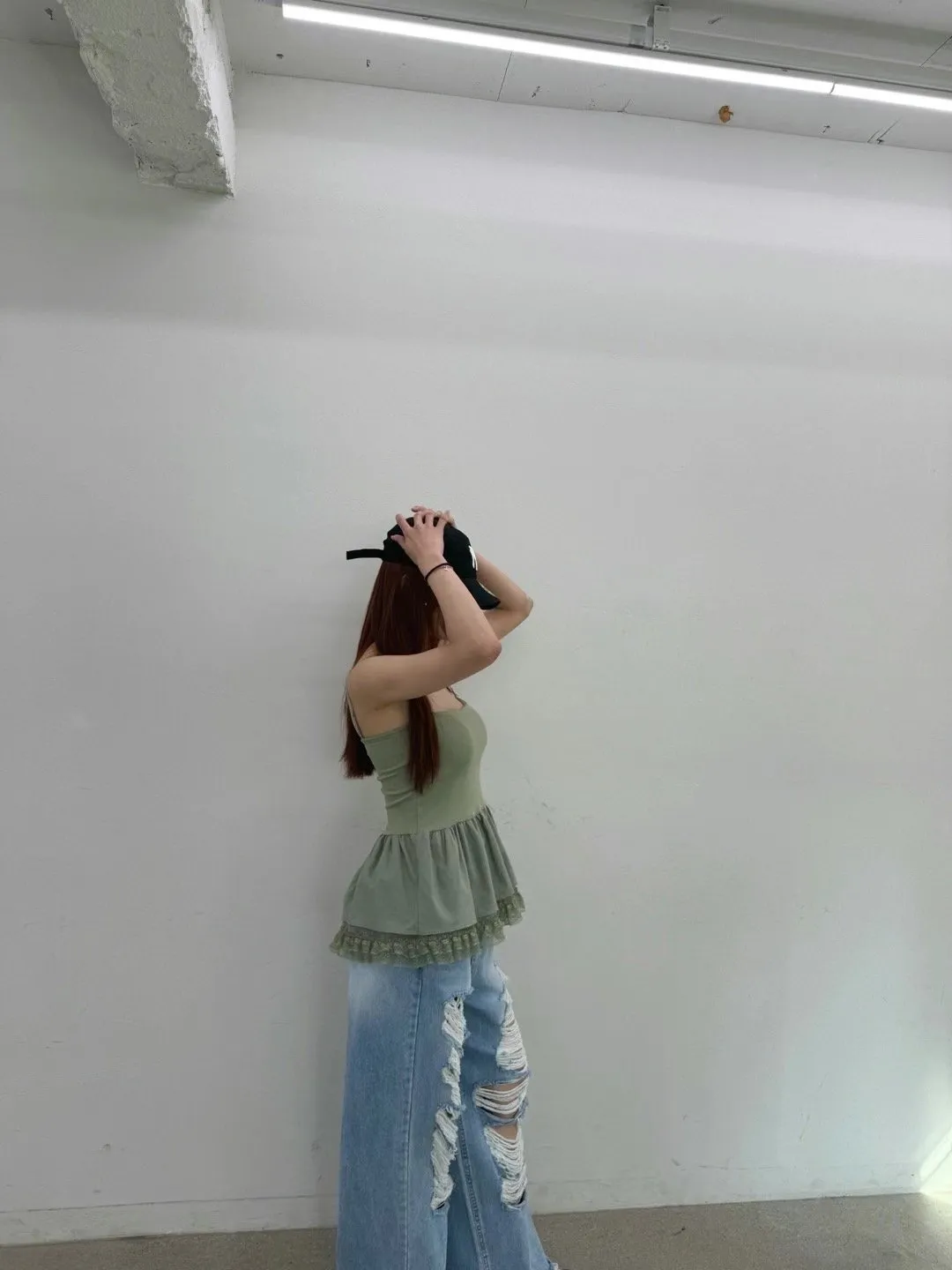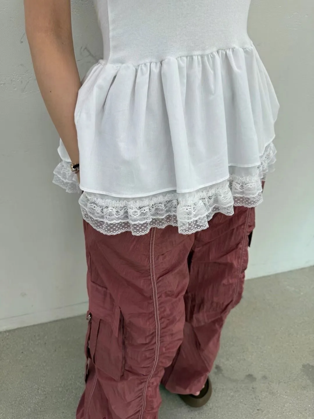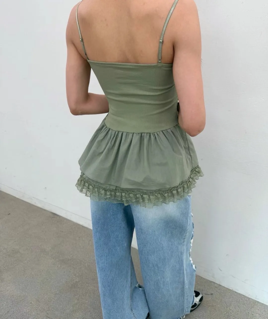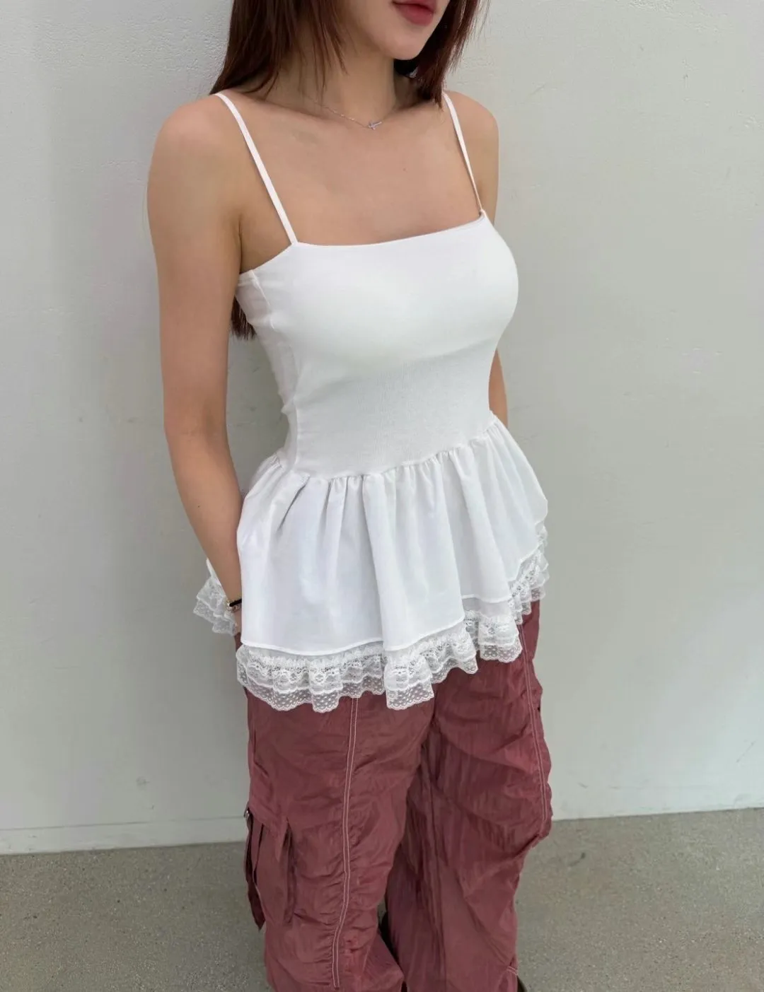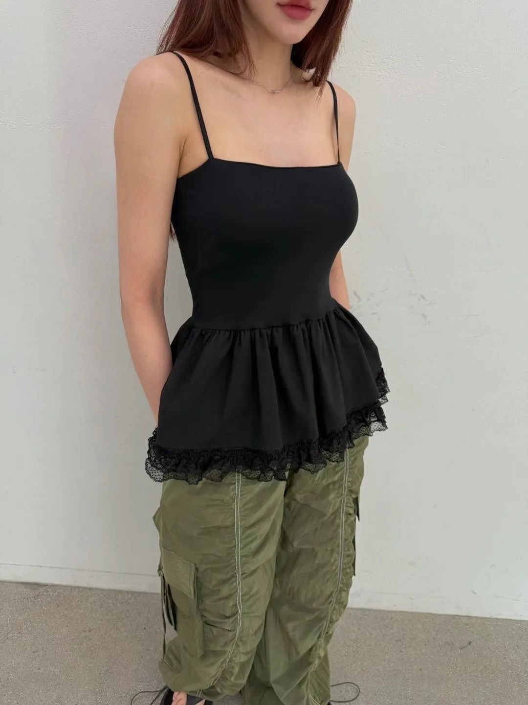 下裙擺拼蕾絲細肩背心