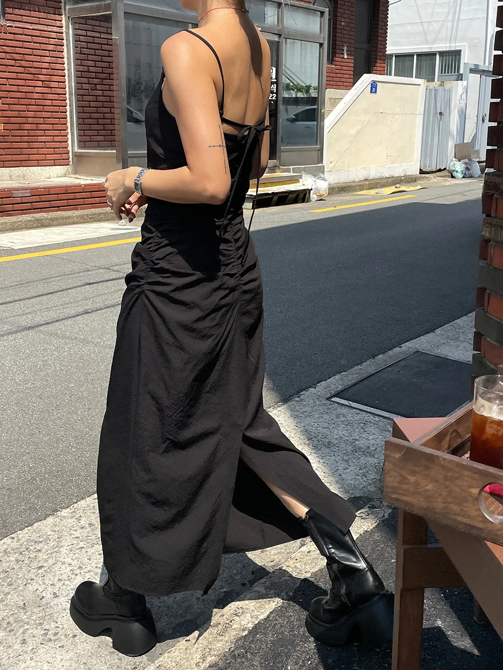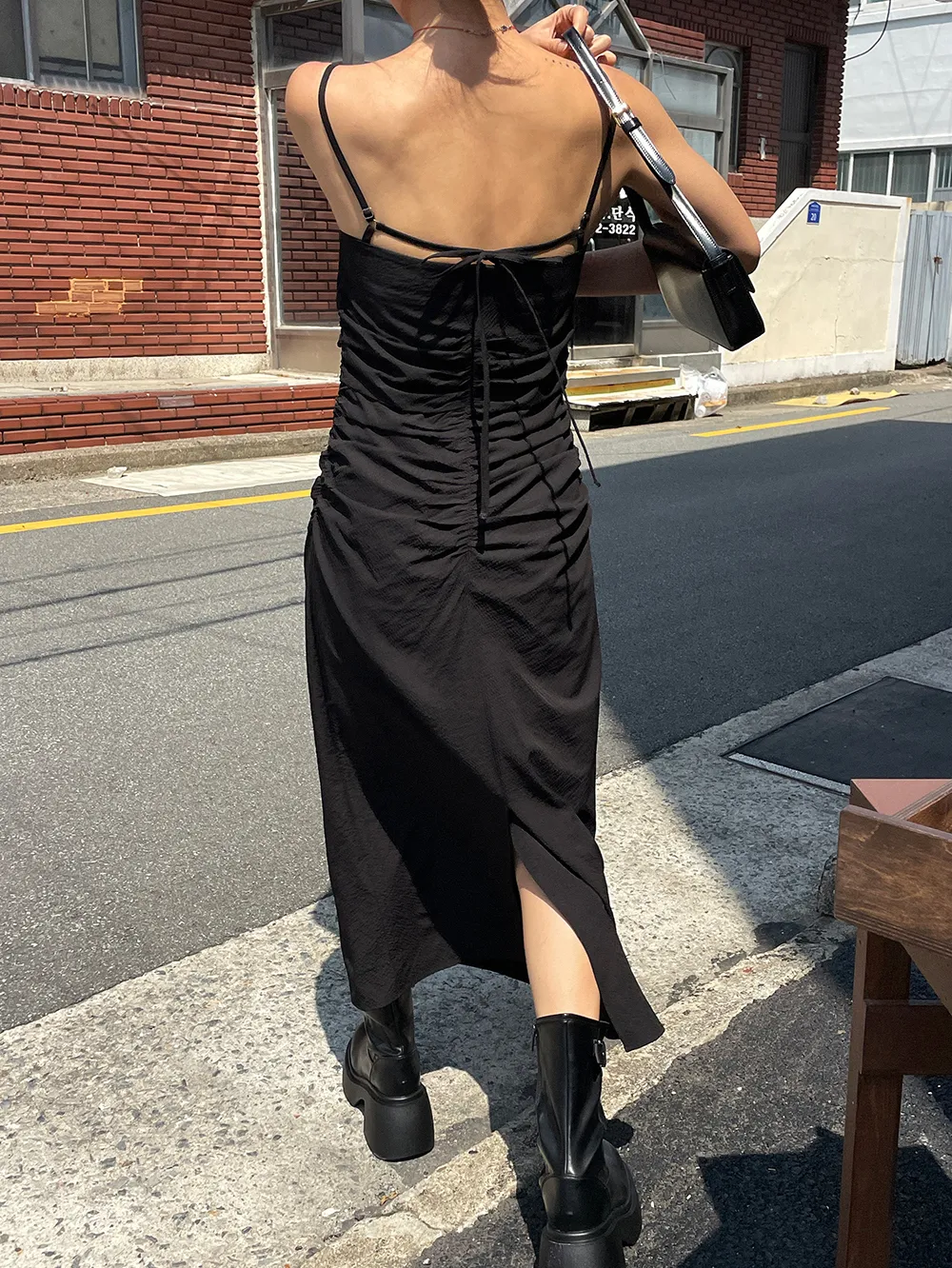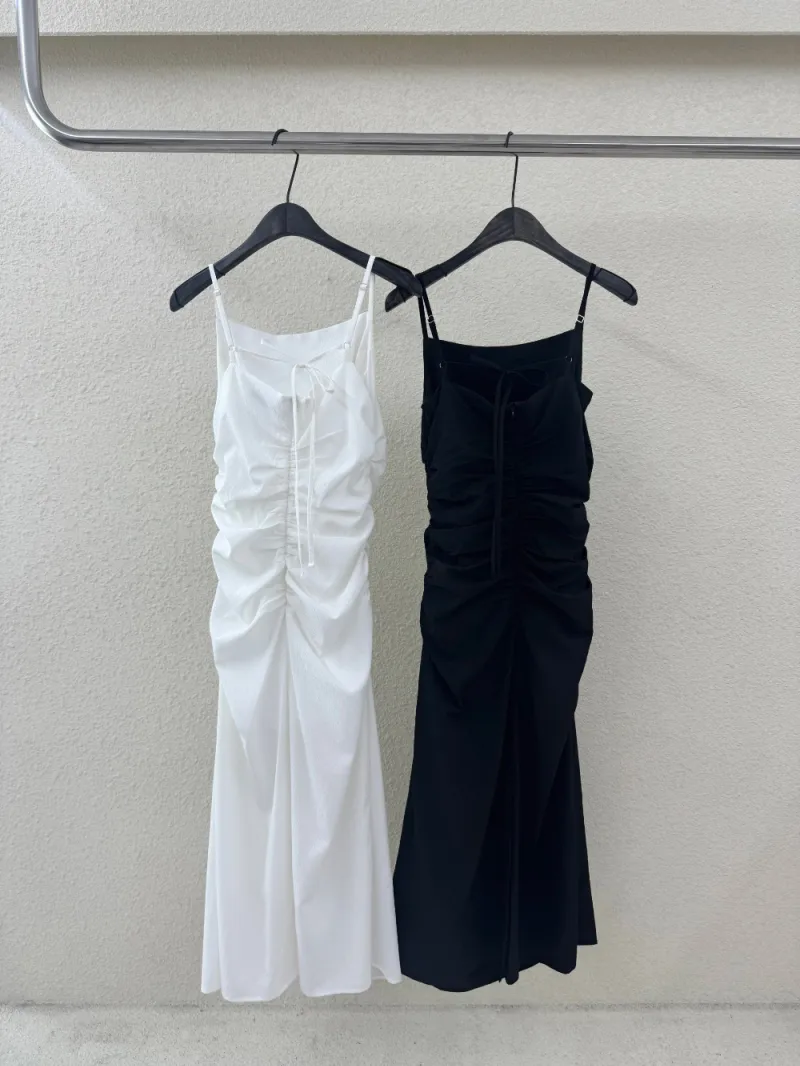 後綁帶抓皺細肩長洋(肉0清單)