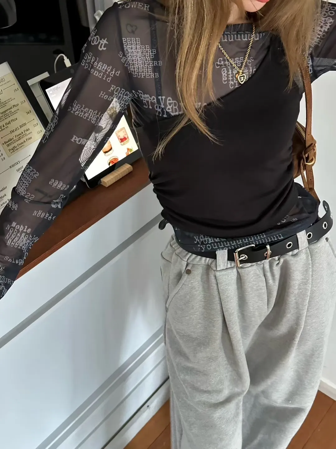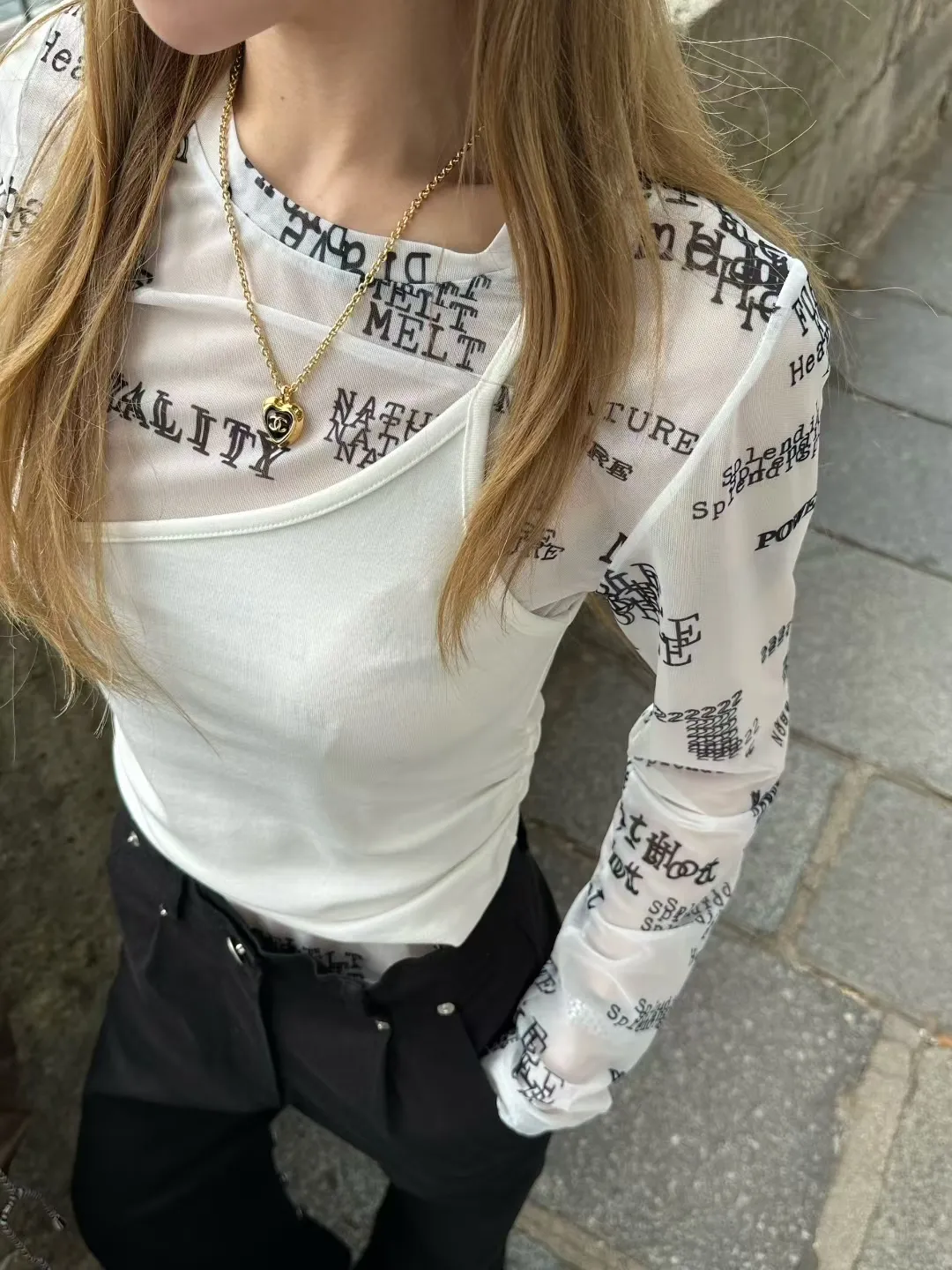 ZERO單肩帶真兩件英字上衣( sale