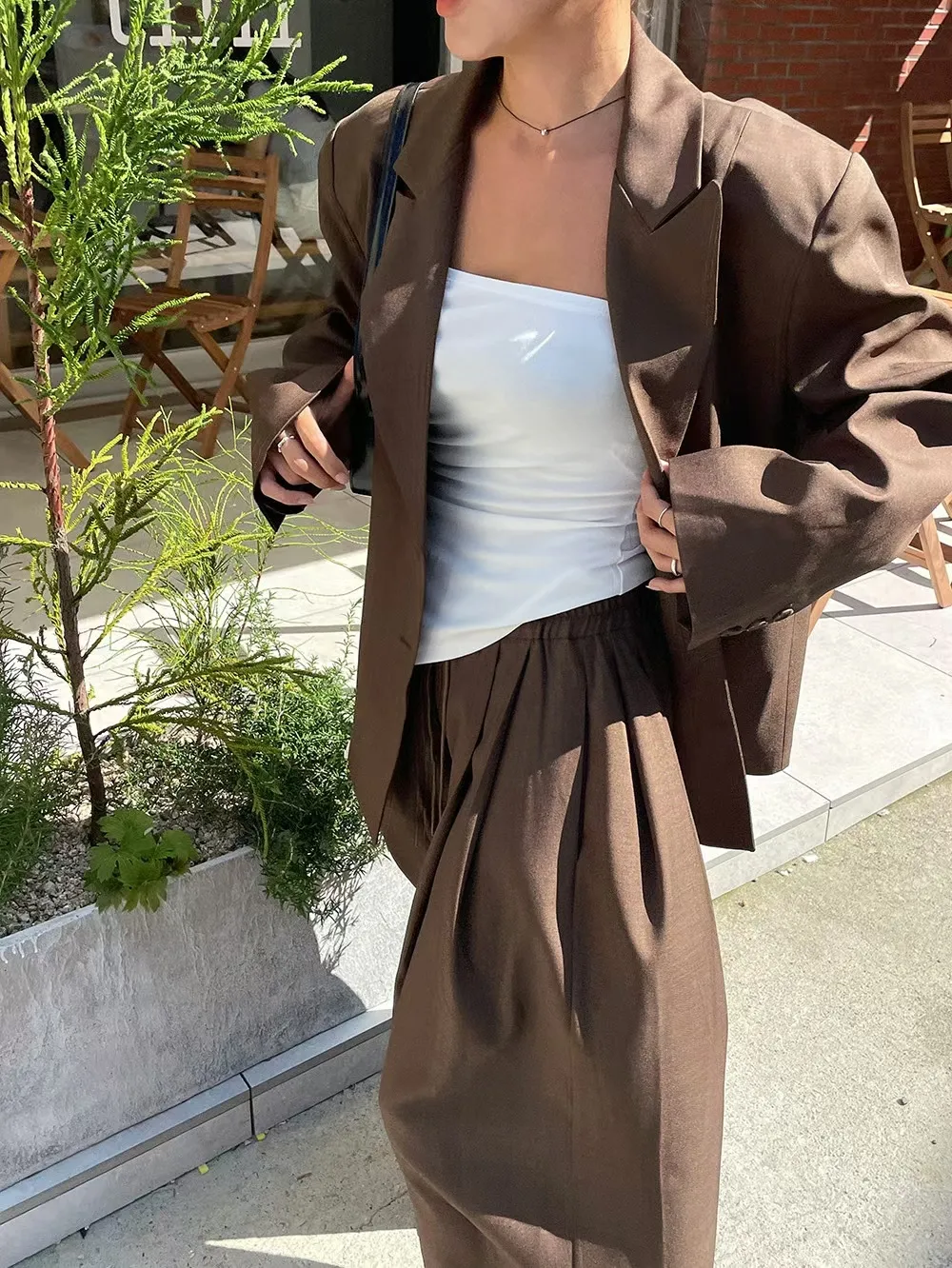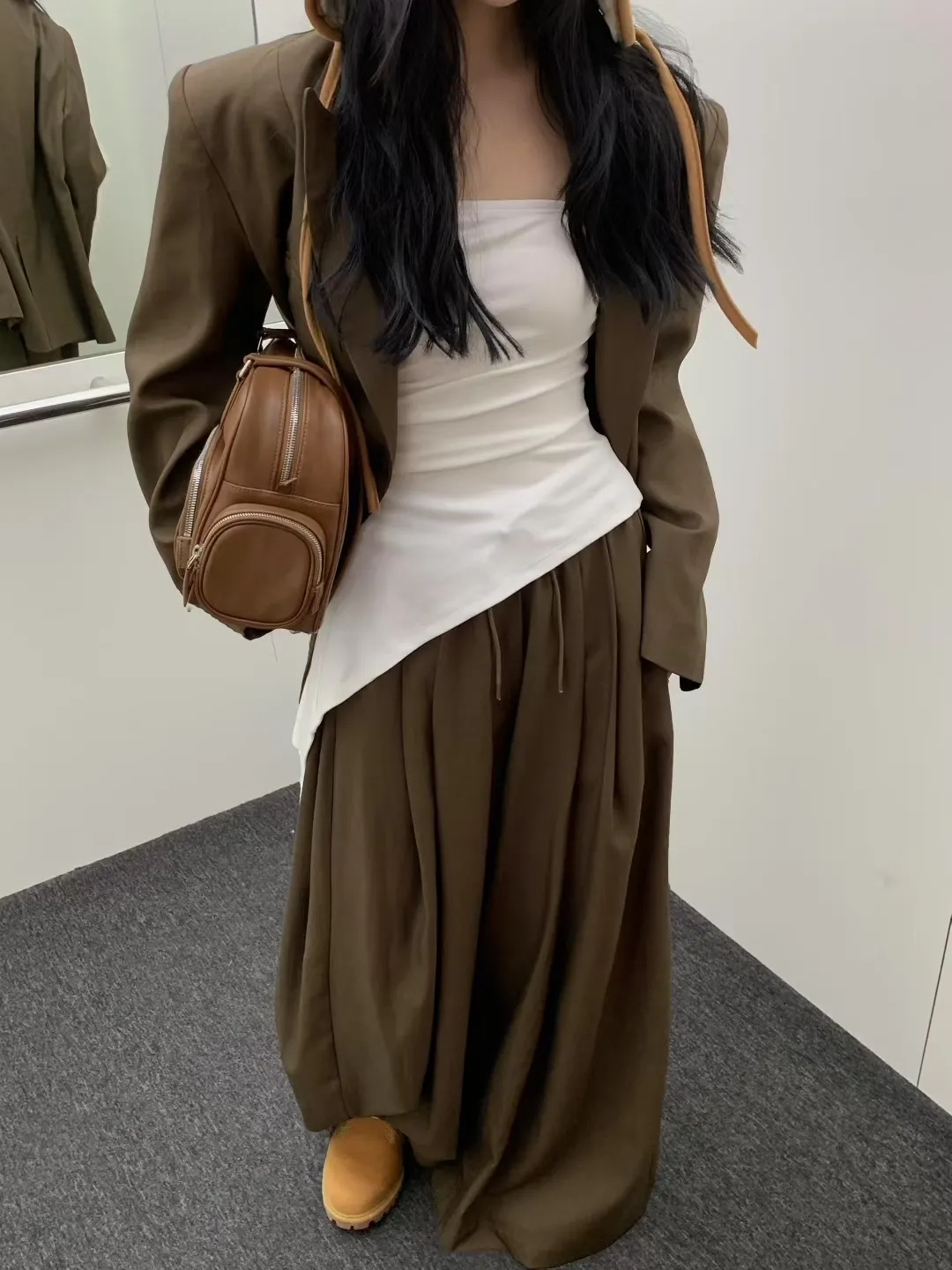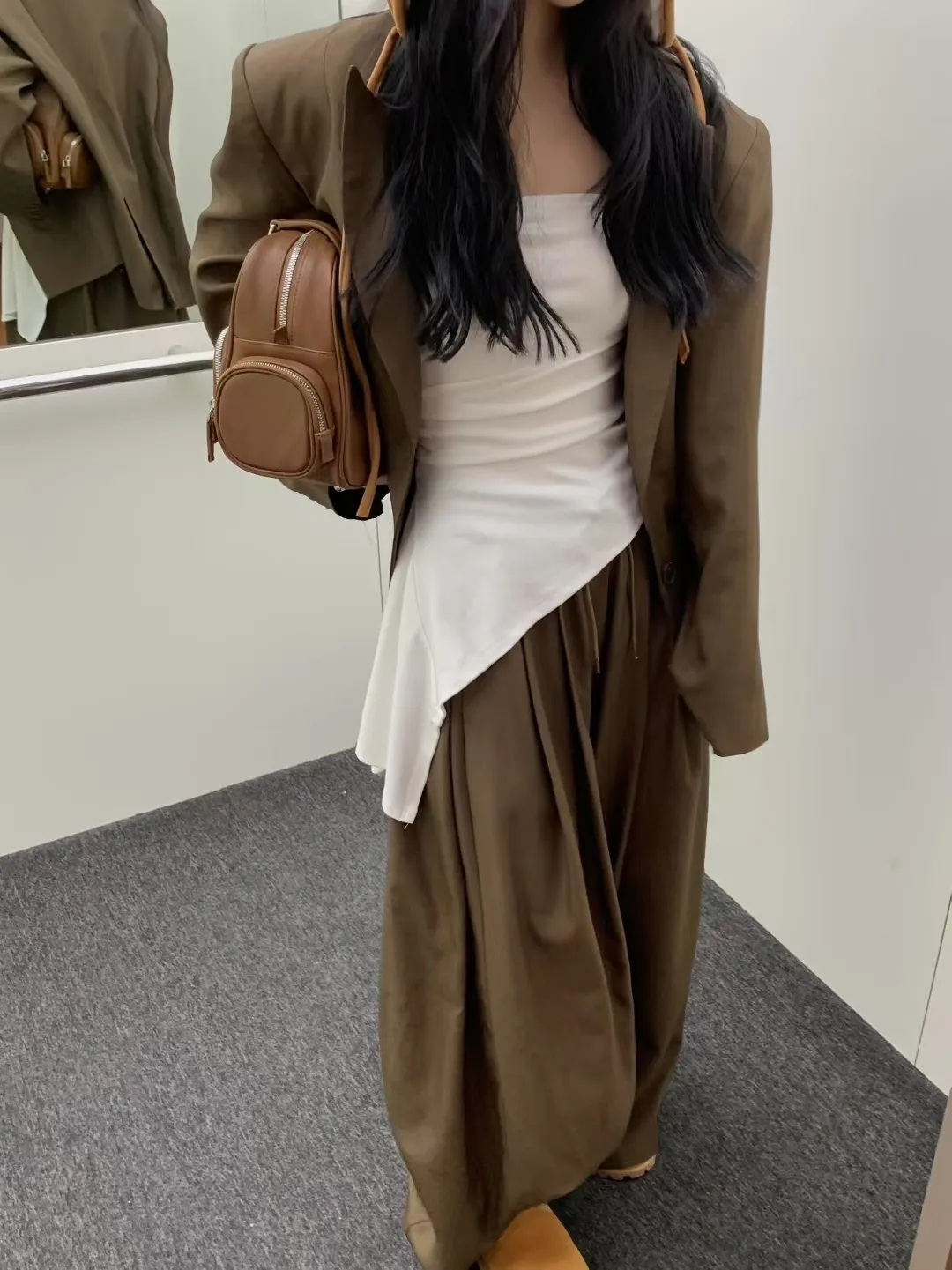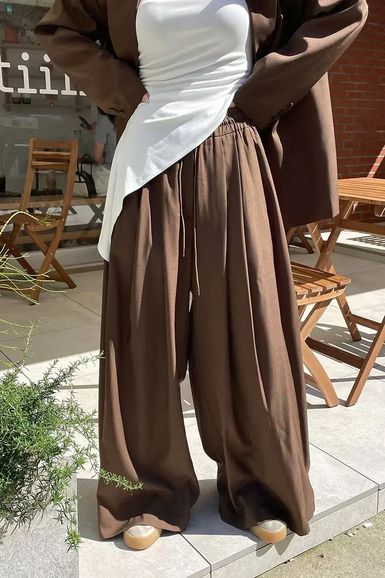 VK鬆緊腰寬版西裝寬長褲(sale)
